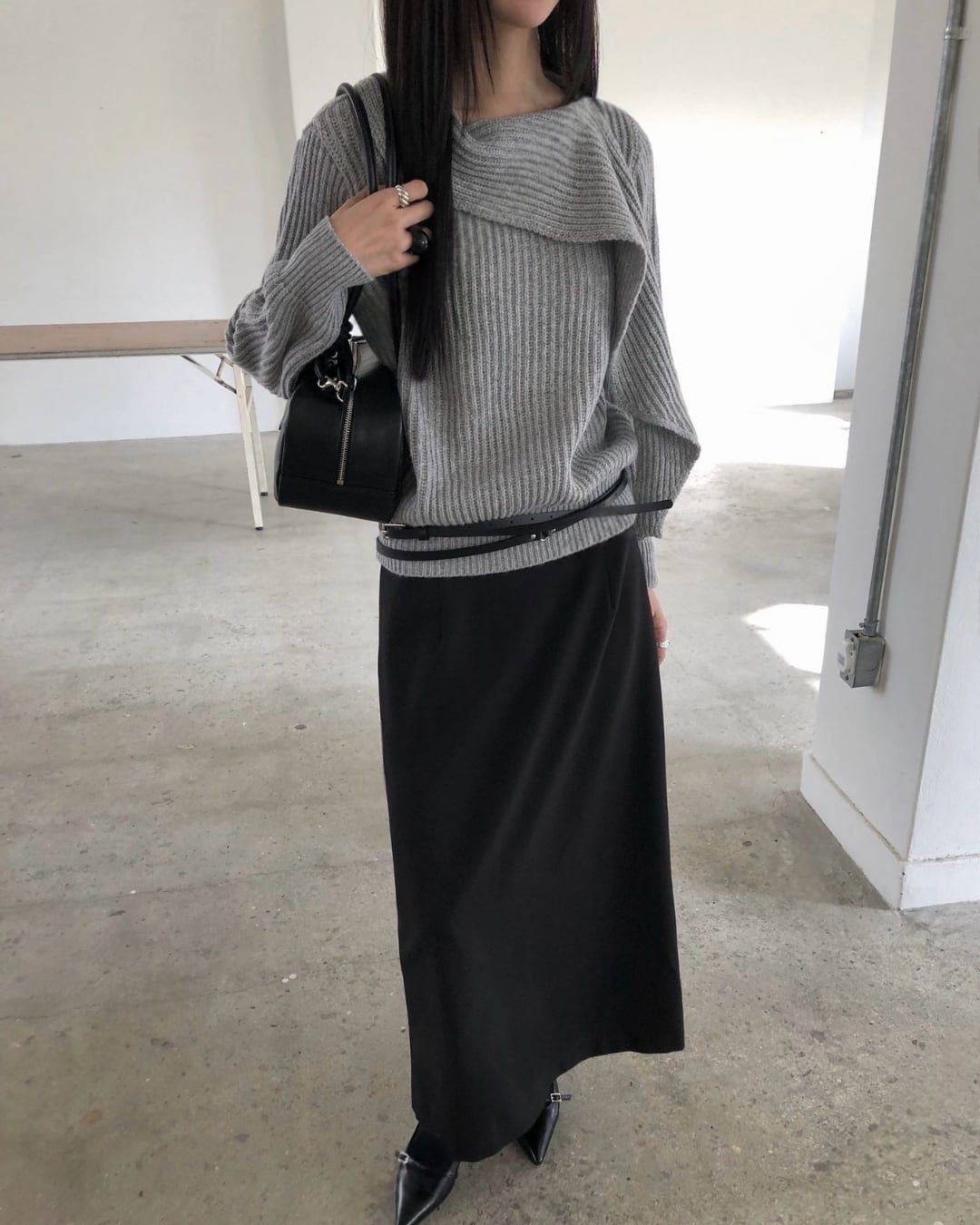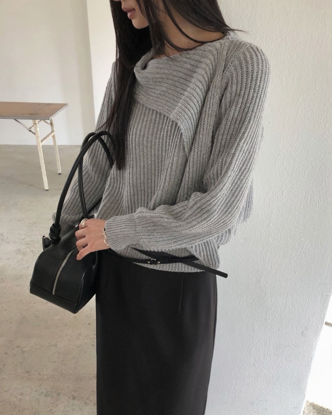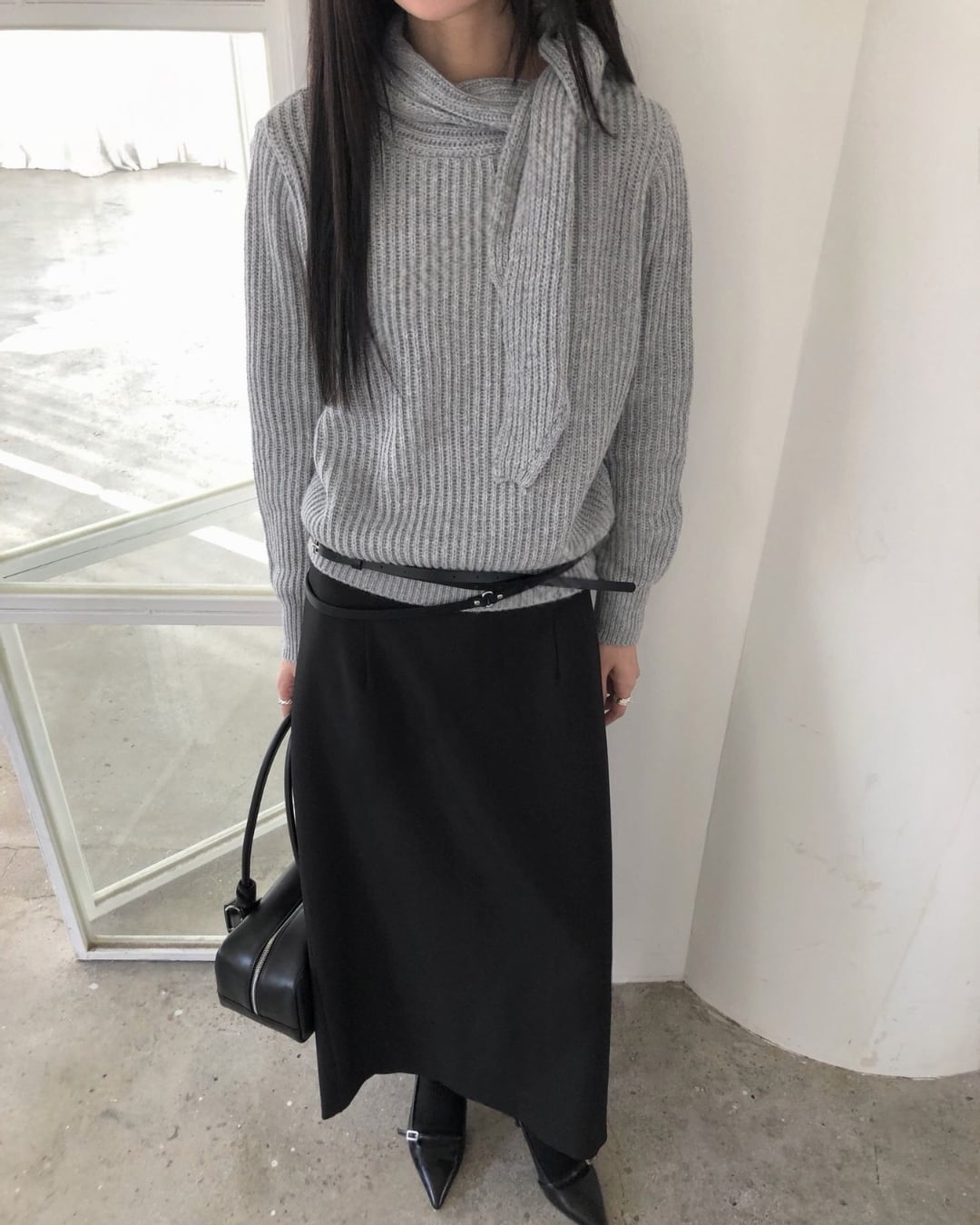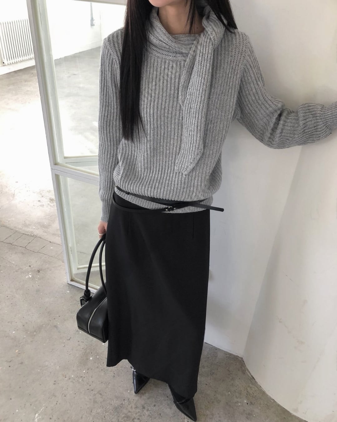 #マフラーニット #ドッキングニット #冬ニット #大人カジュアル #シンプルコーデ