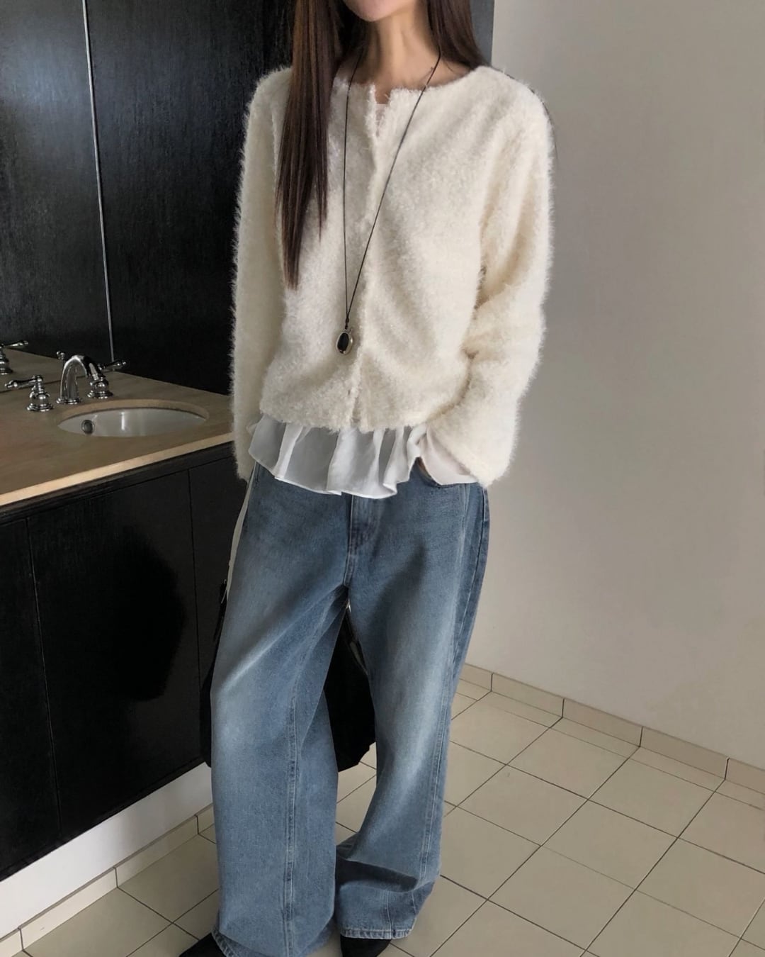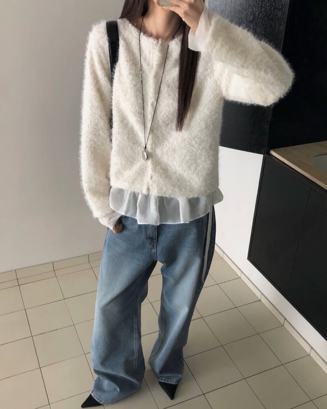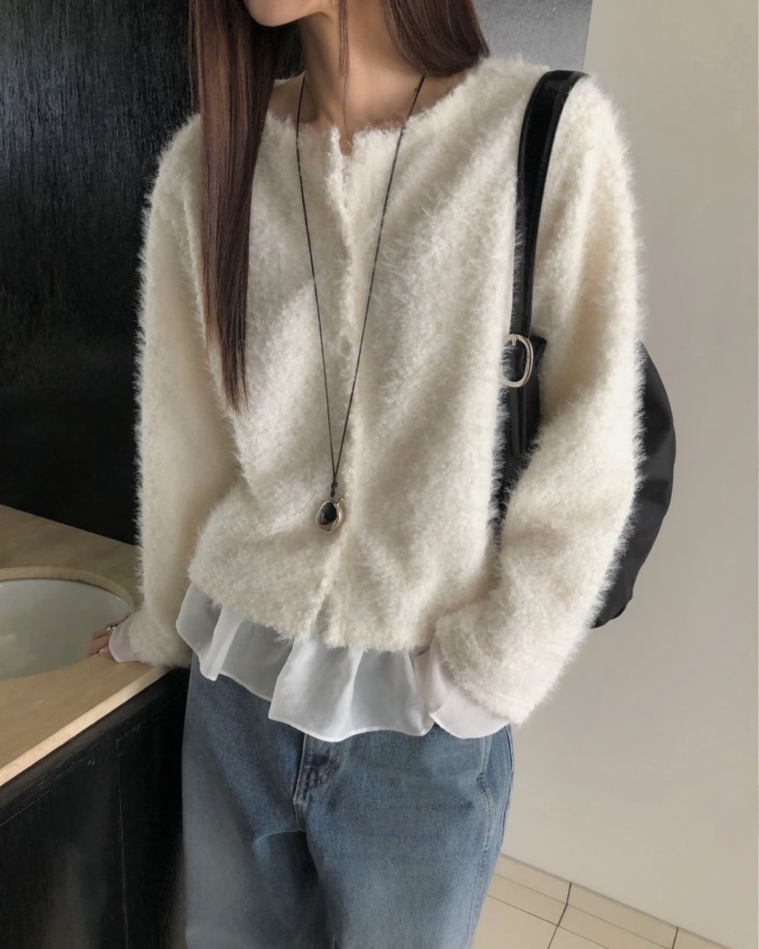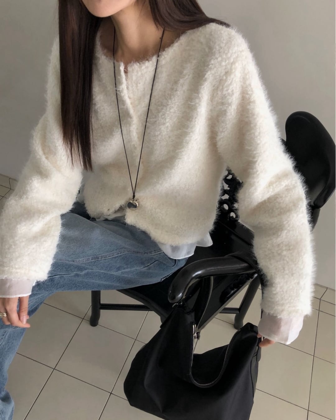 #ニット #レイヤード #起毛ニット #大人カジュアル #シンプルコーデ