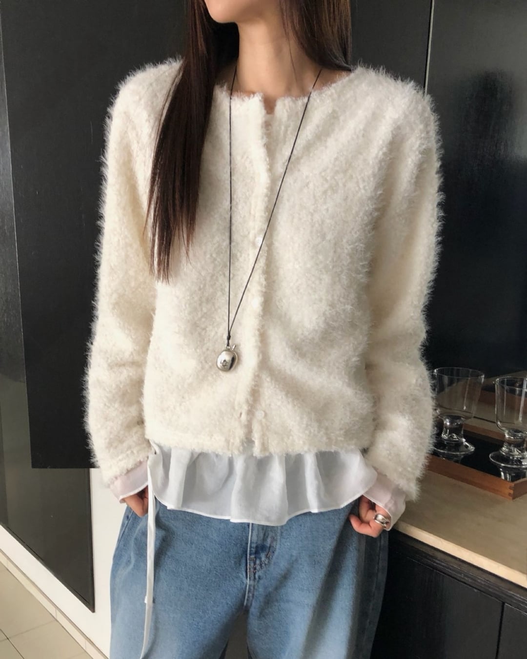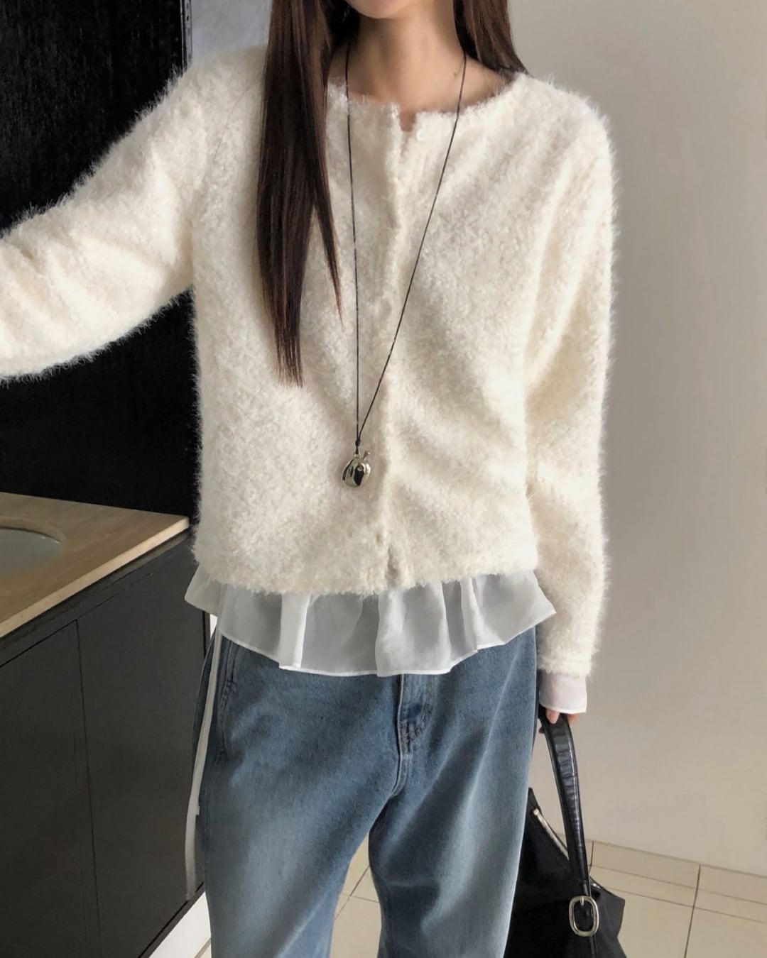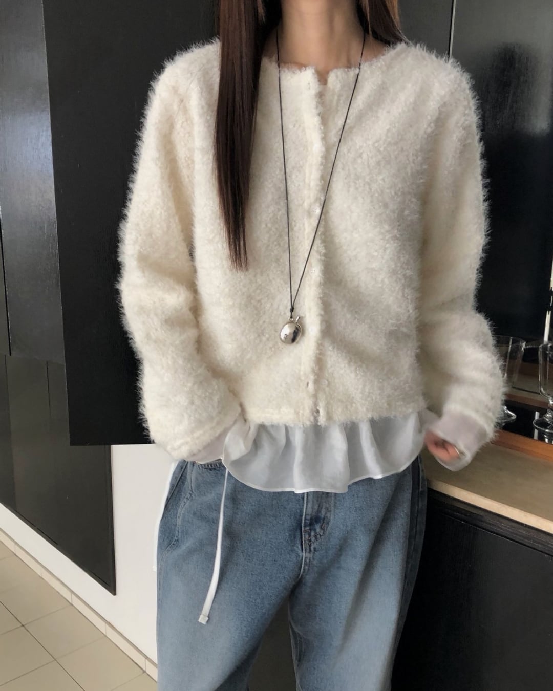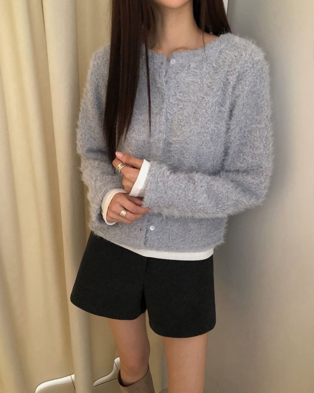 #ニット #レイヤード #起毛ニット #大人カジュアル #シンプルコーデ