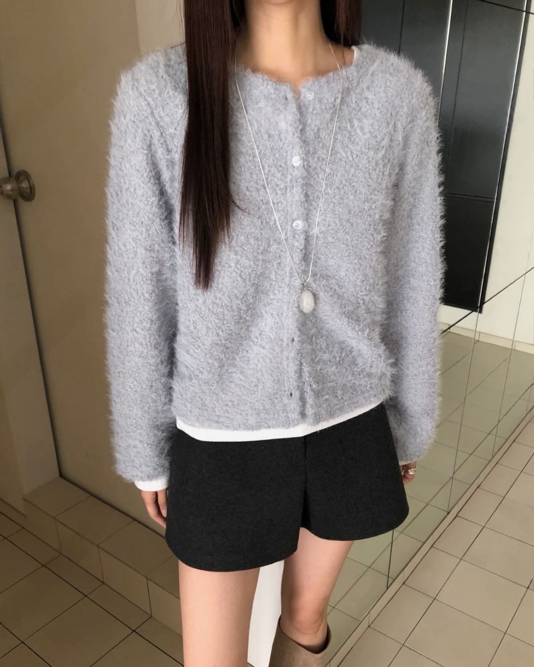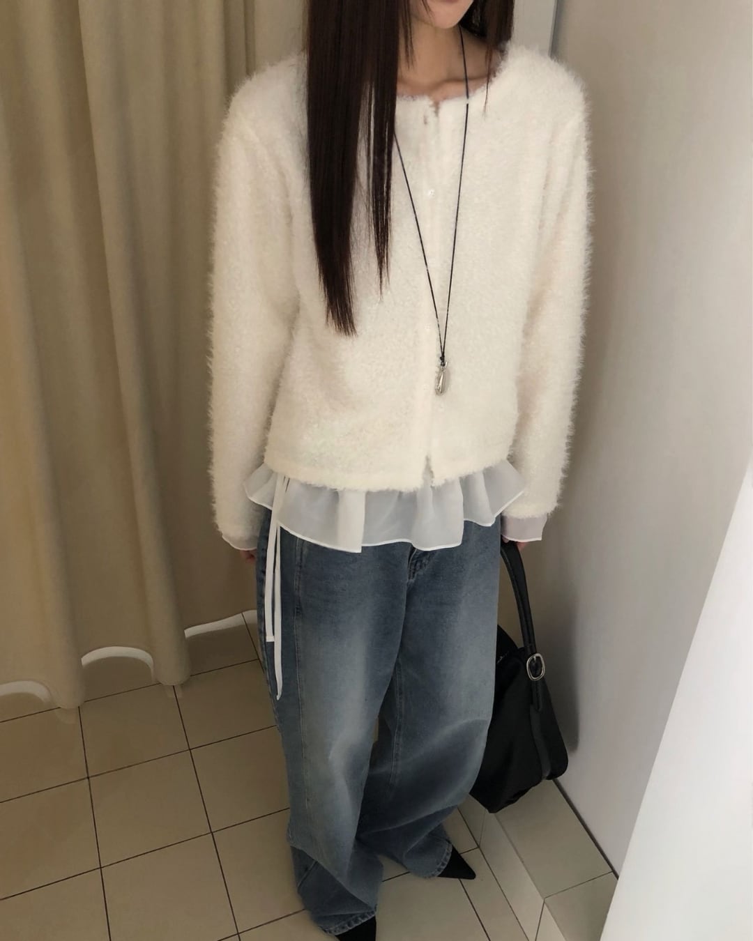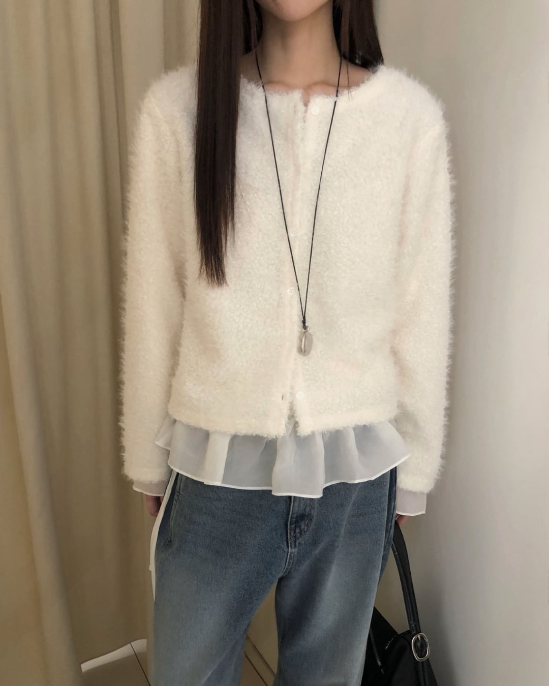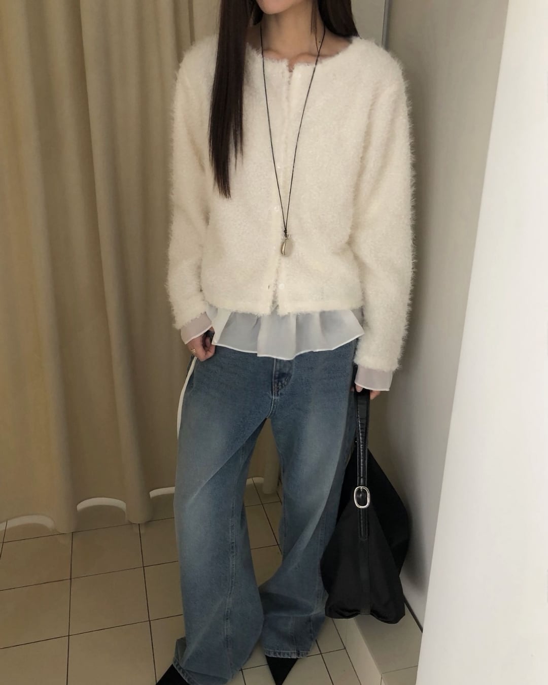 #ニット #レイヤード #起毛ニット #大人カジュアル #シンプルコーデ