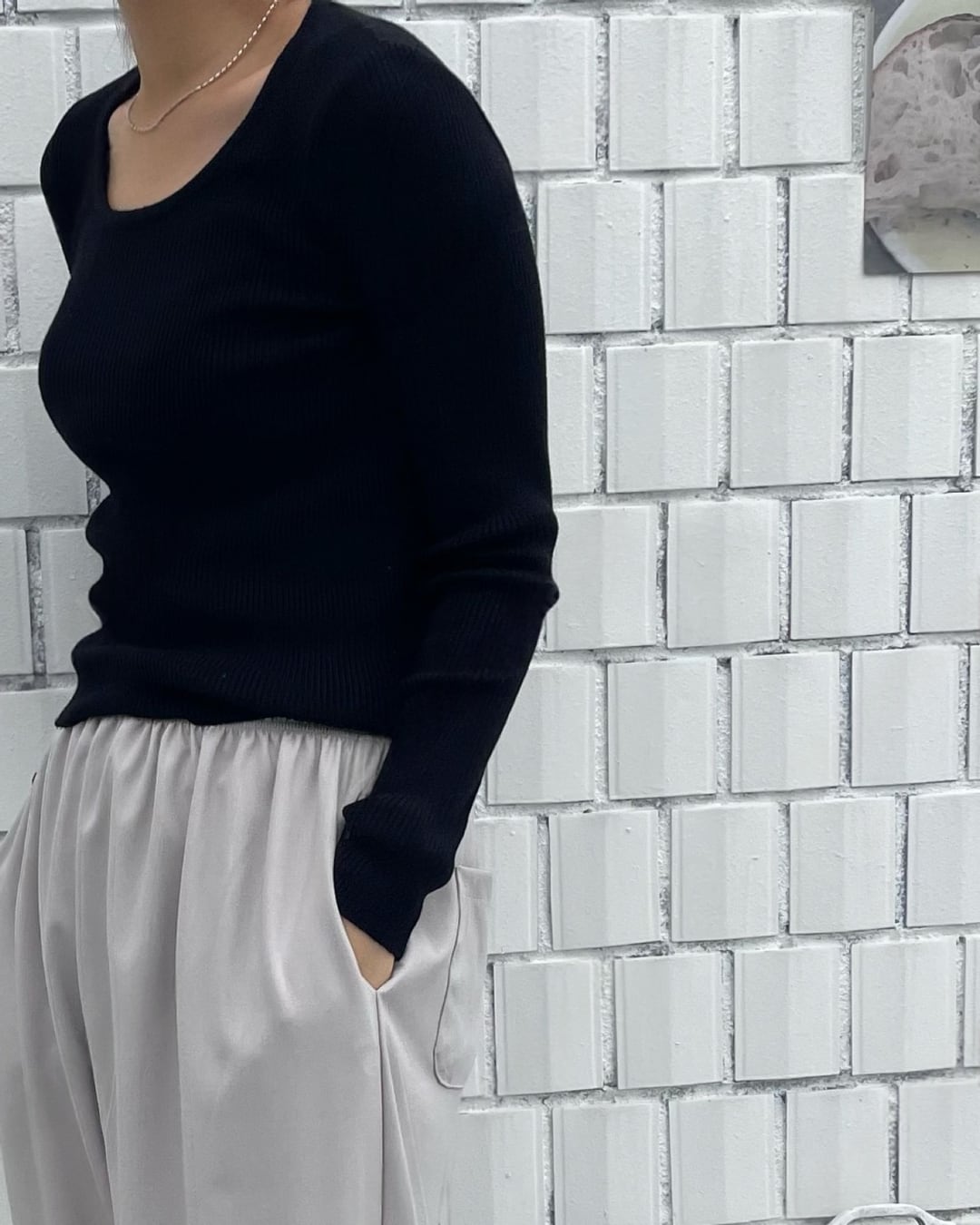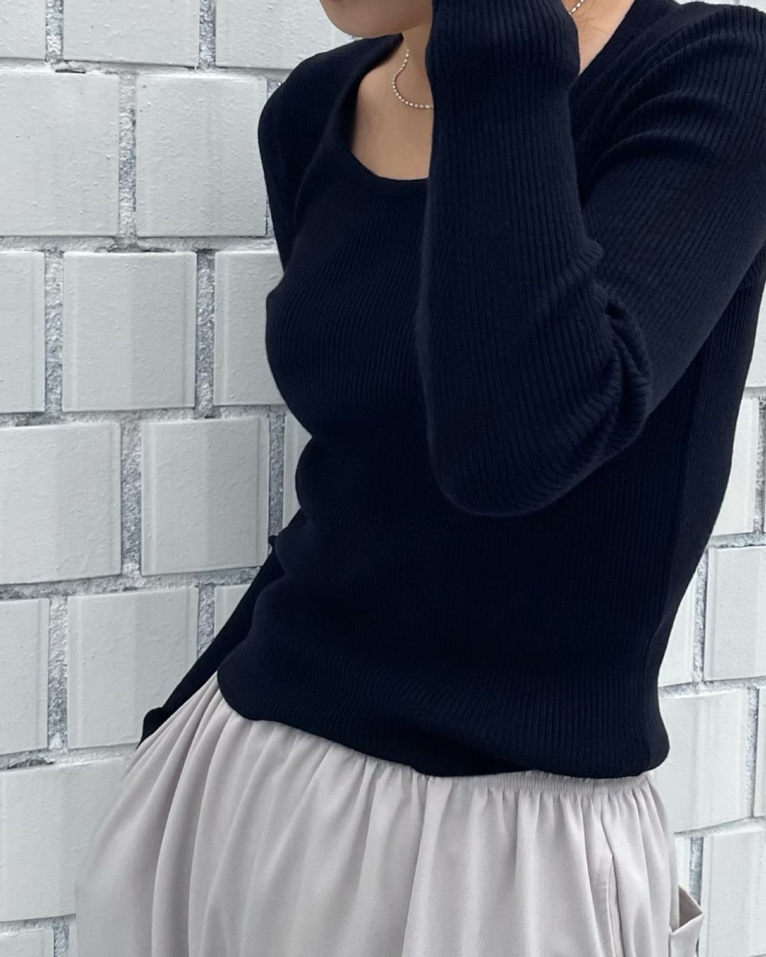 #リブニット #Uネック #長袖トップス #きれいめコーデ #シンプルニット