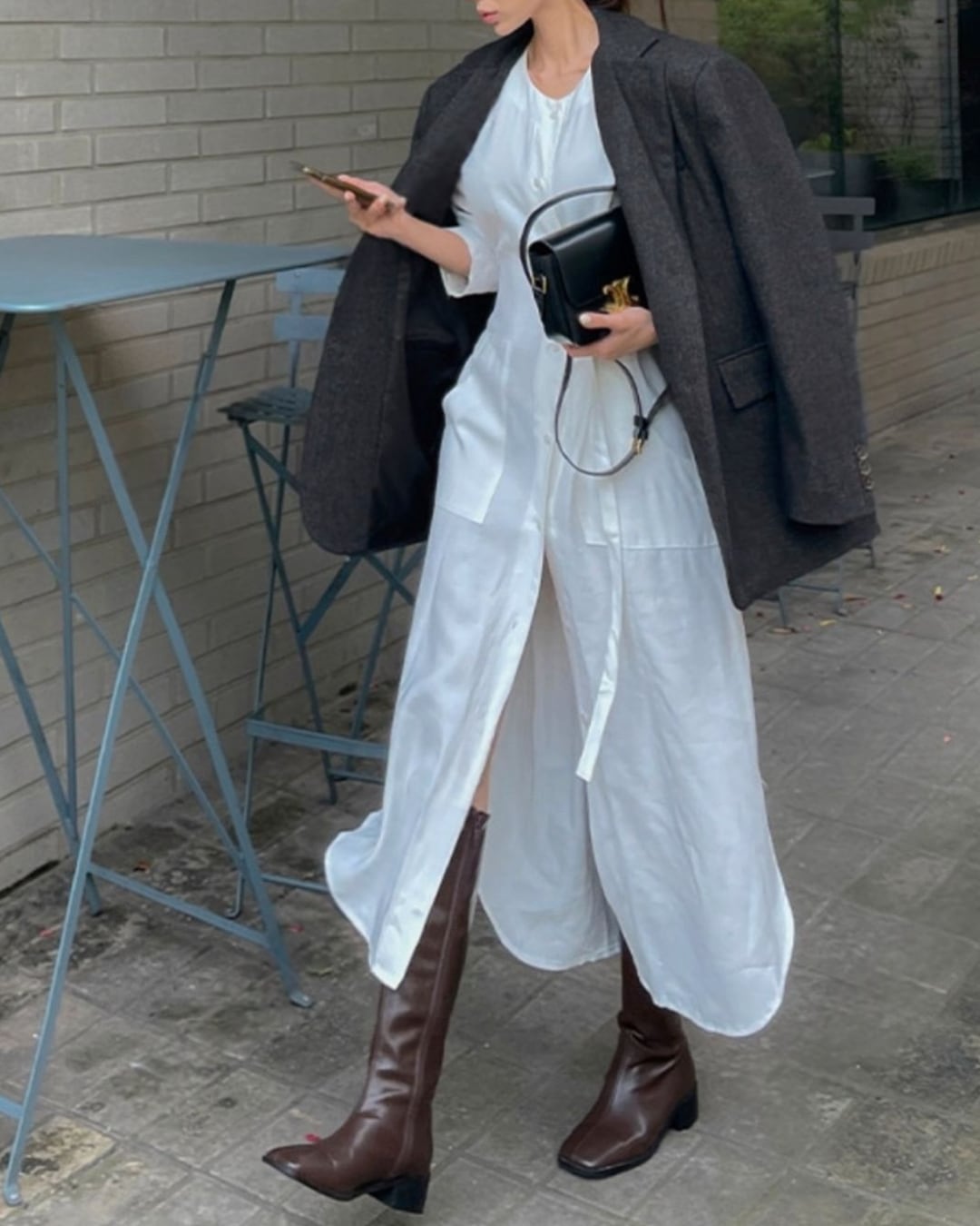 #シャツワンピース #ロングワンピース #大人きれいめ #羽織りコーデ #ウエストマーク