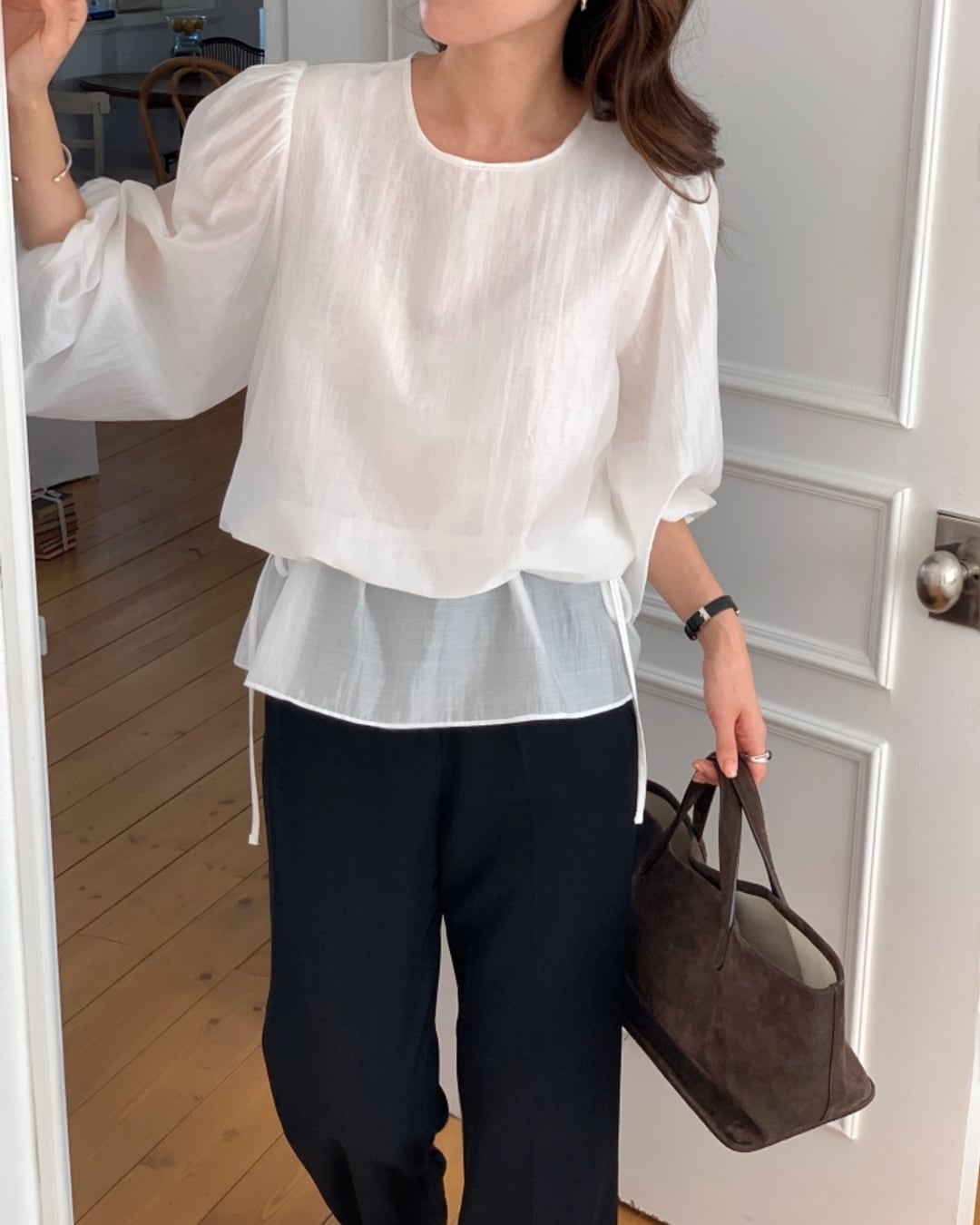 #ブラウス #ボリューム袖 #レイヤードデザイン #大人きれいめ #上品コーデ