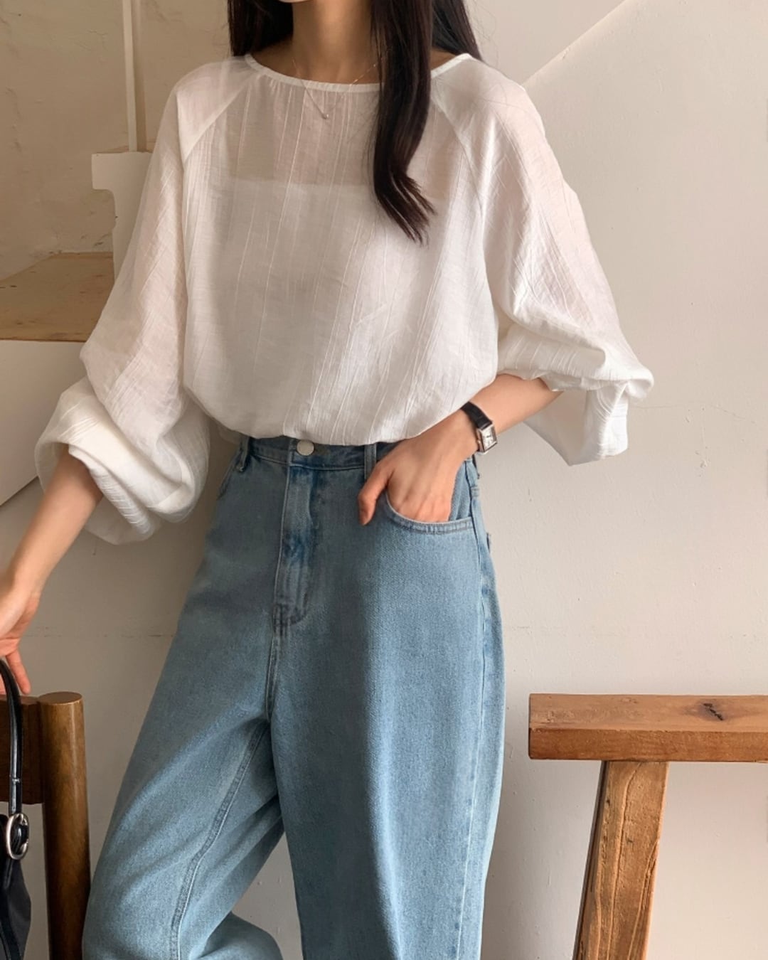#シアーブラウス #ツーウェイ #バックスリット #大人カジュアル #抜け感コーデ