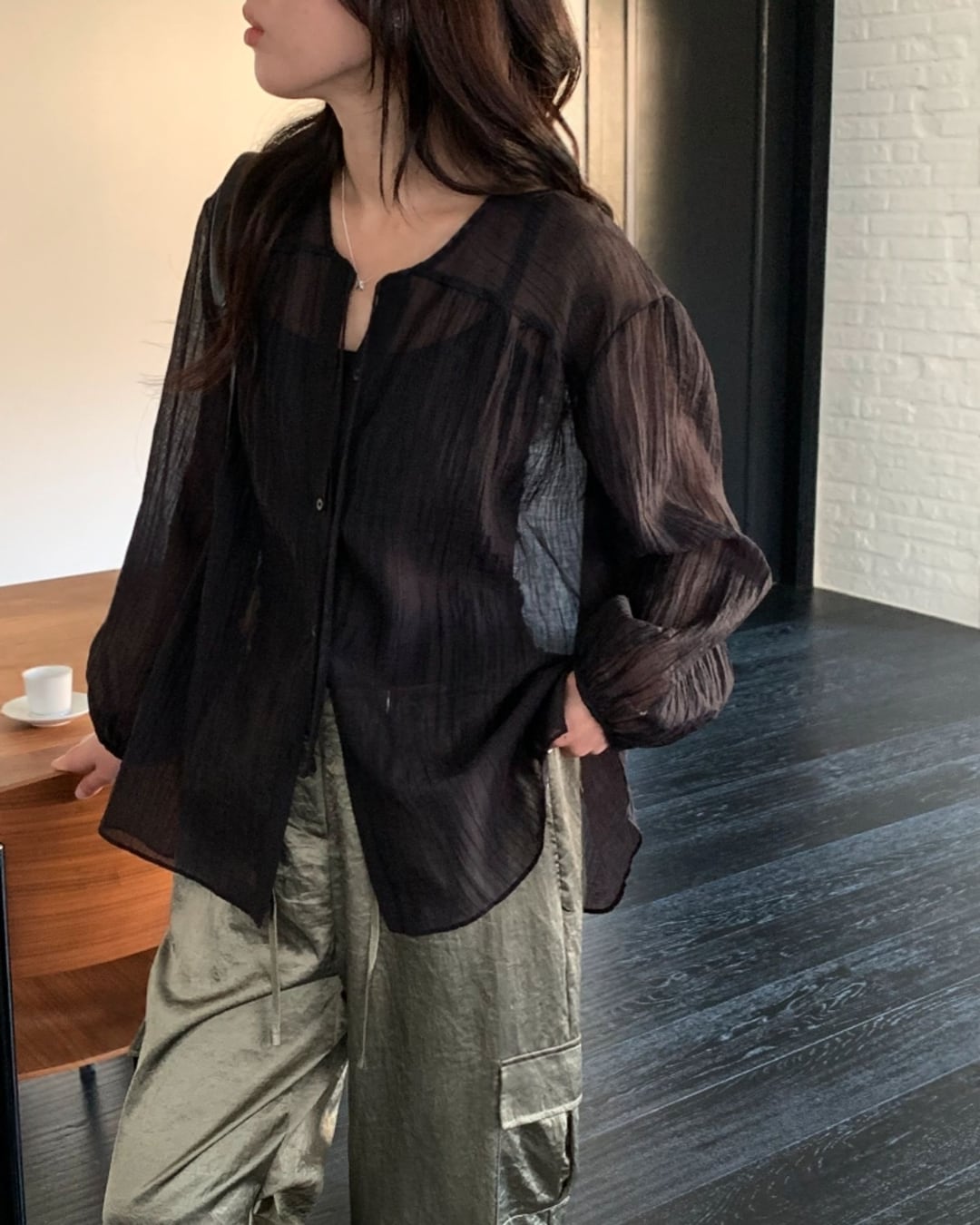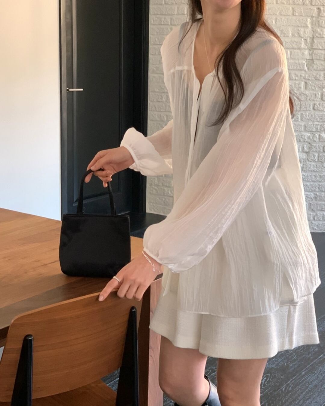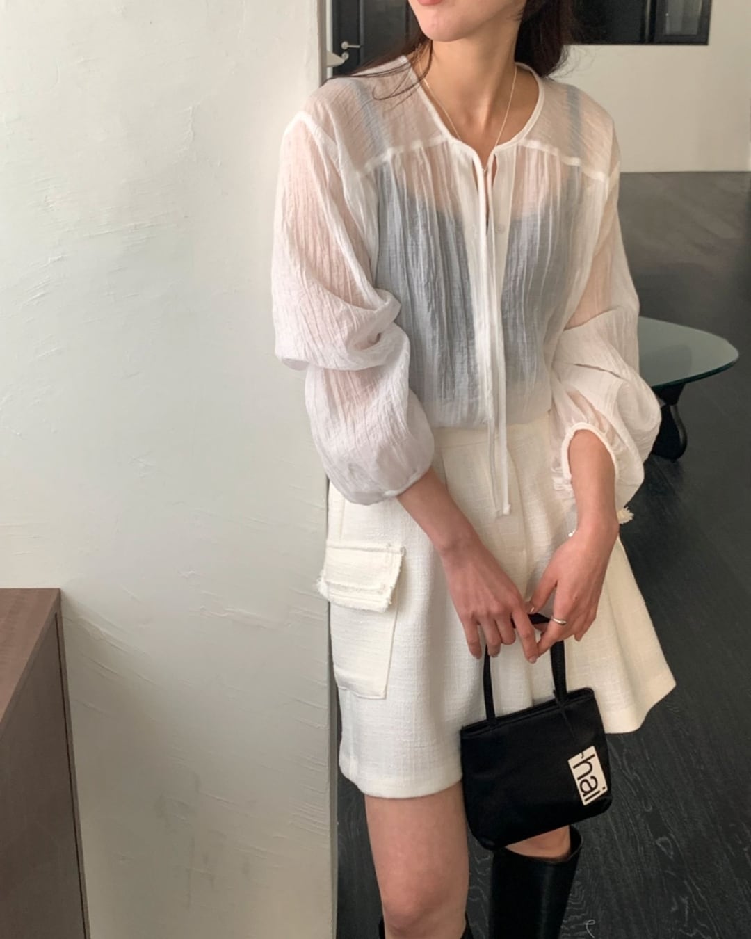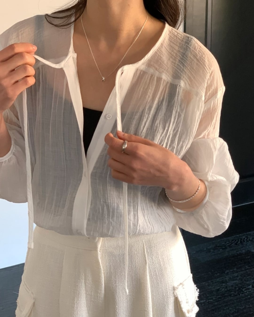 #リボンタイ #シアーブラウス #ボクシーシルエット #大人フェミニン #きれいめカジュアル