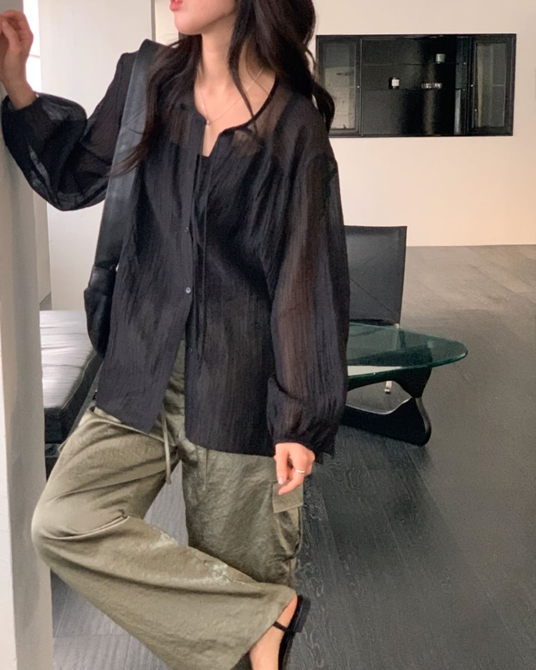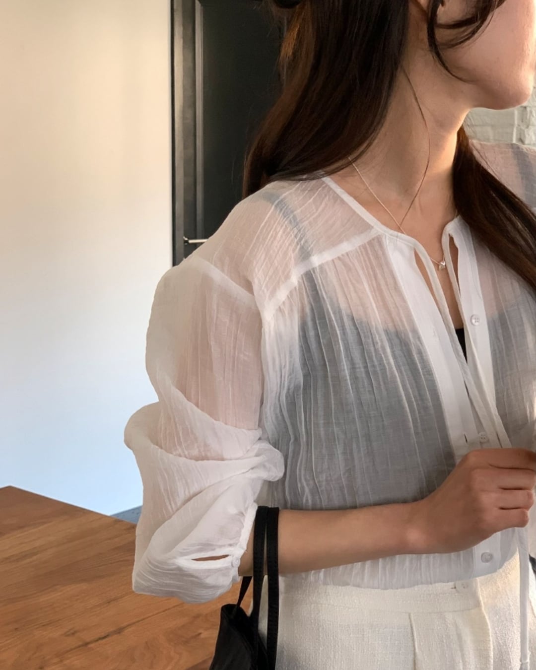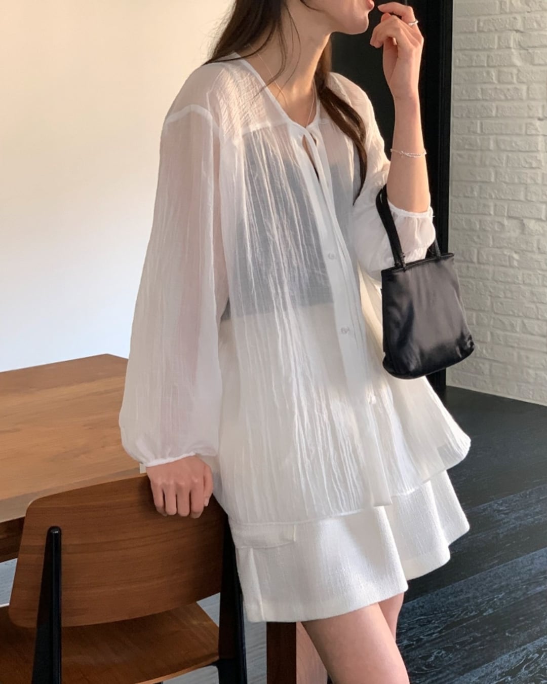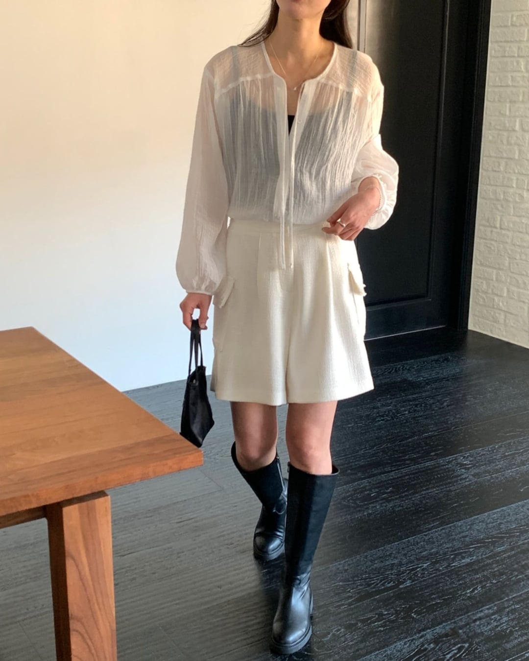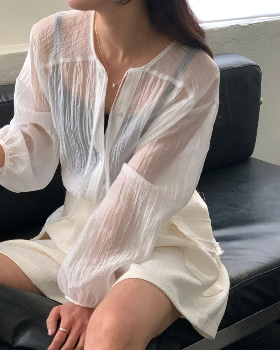 #リボンタイ #シアーブラウス #ボクシーシルエット #大人フェミニン #きれいめカジュアル
