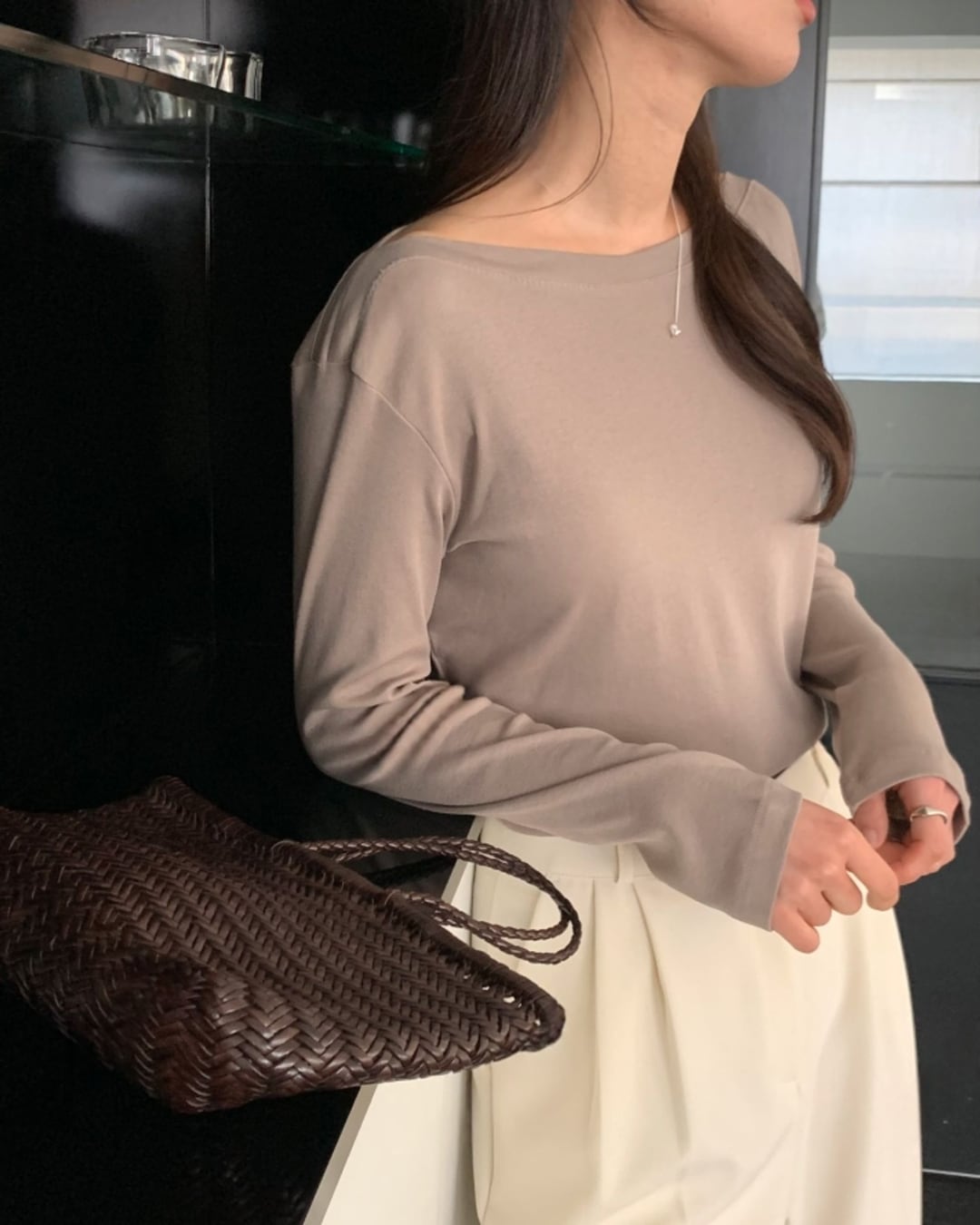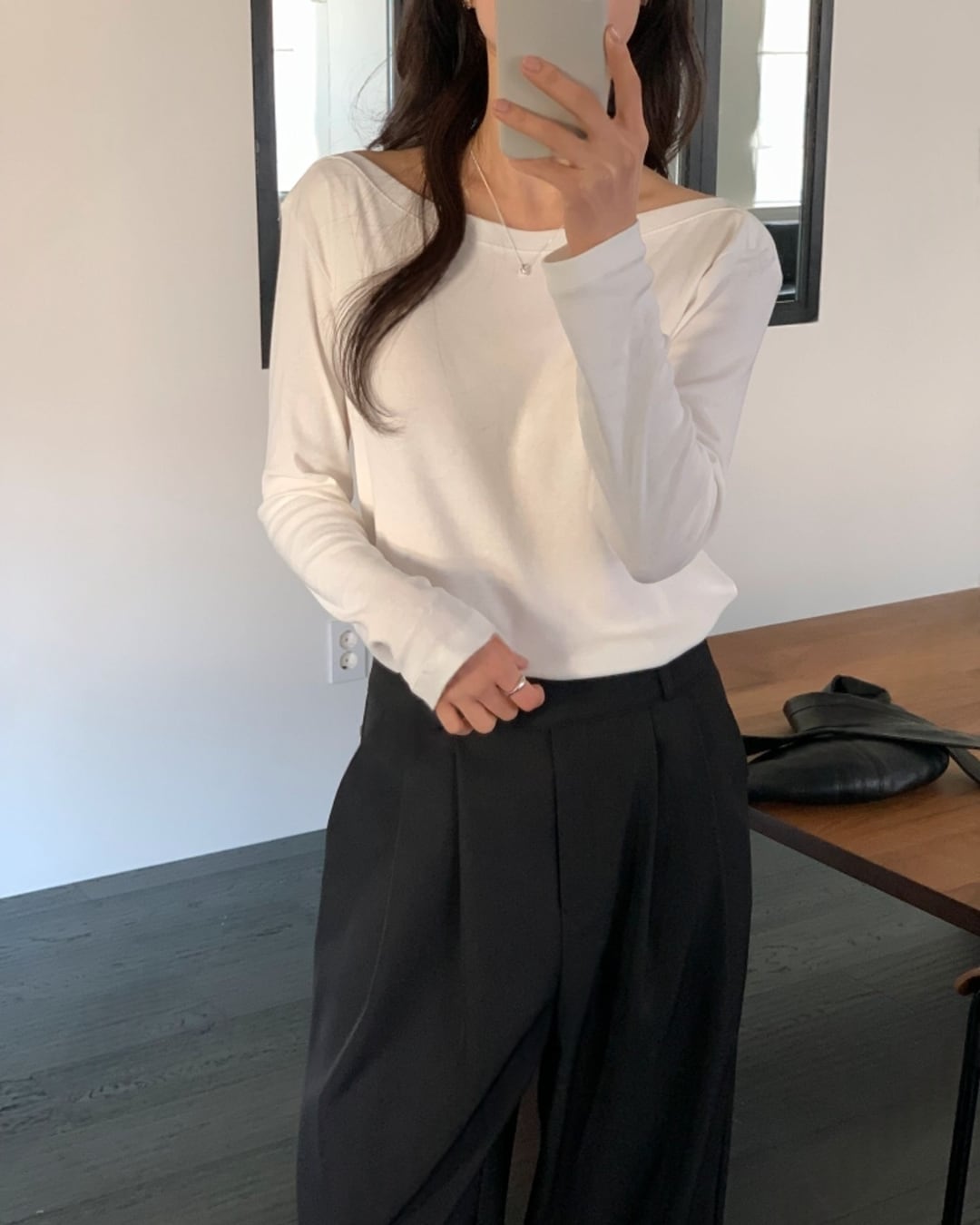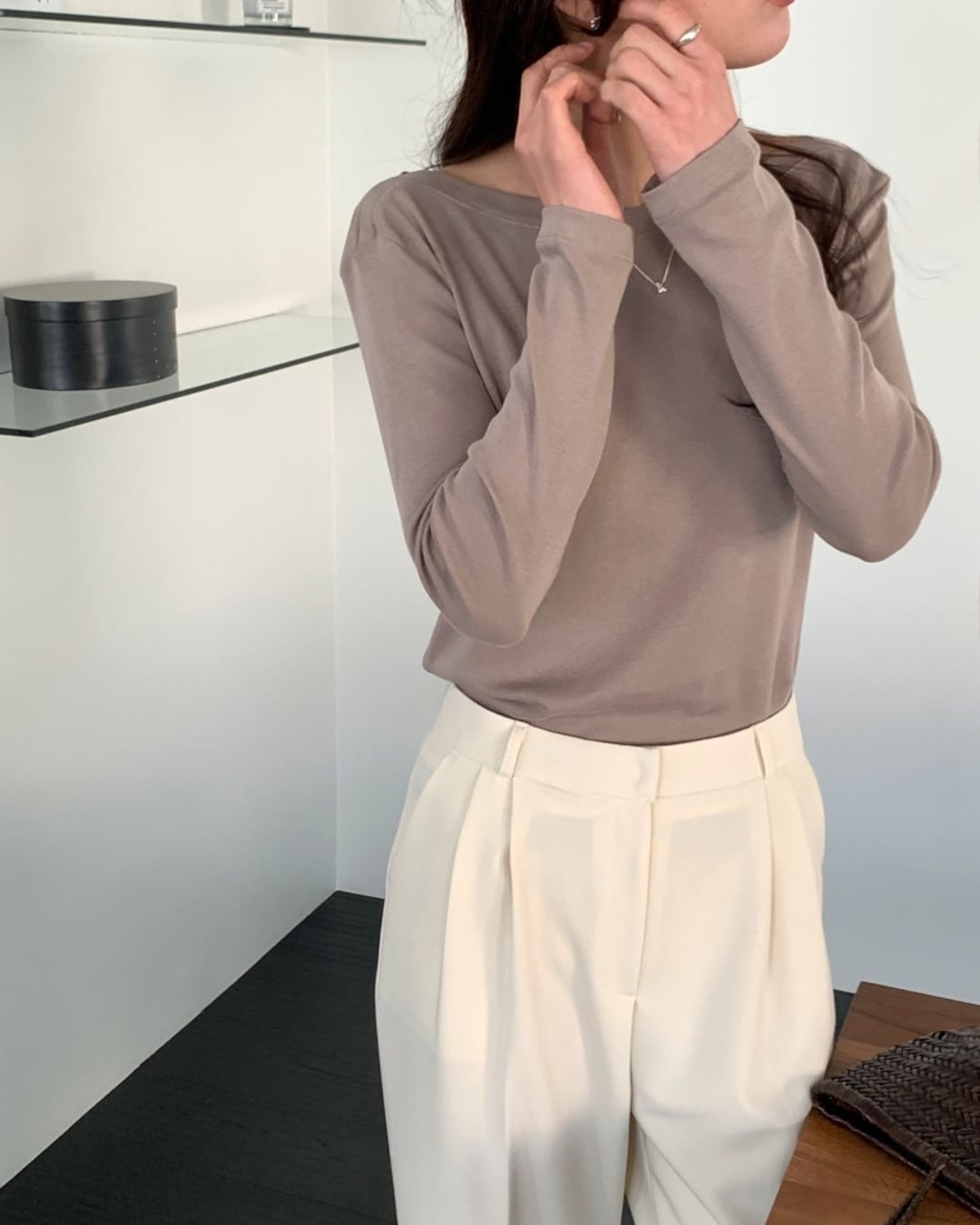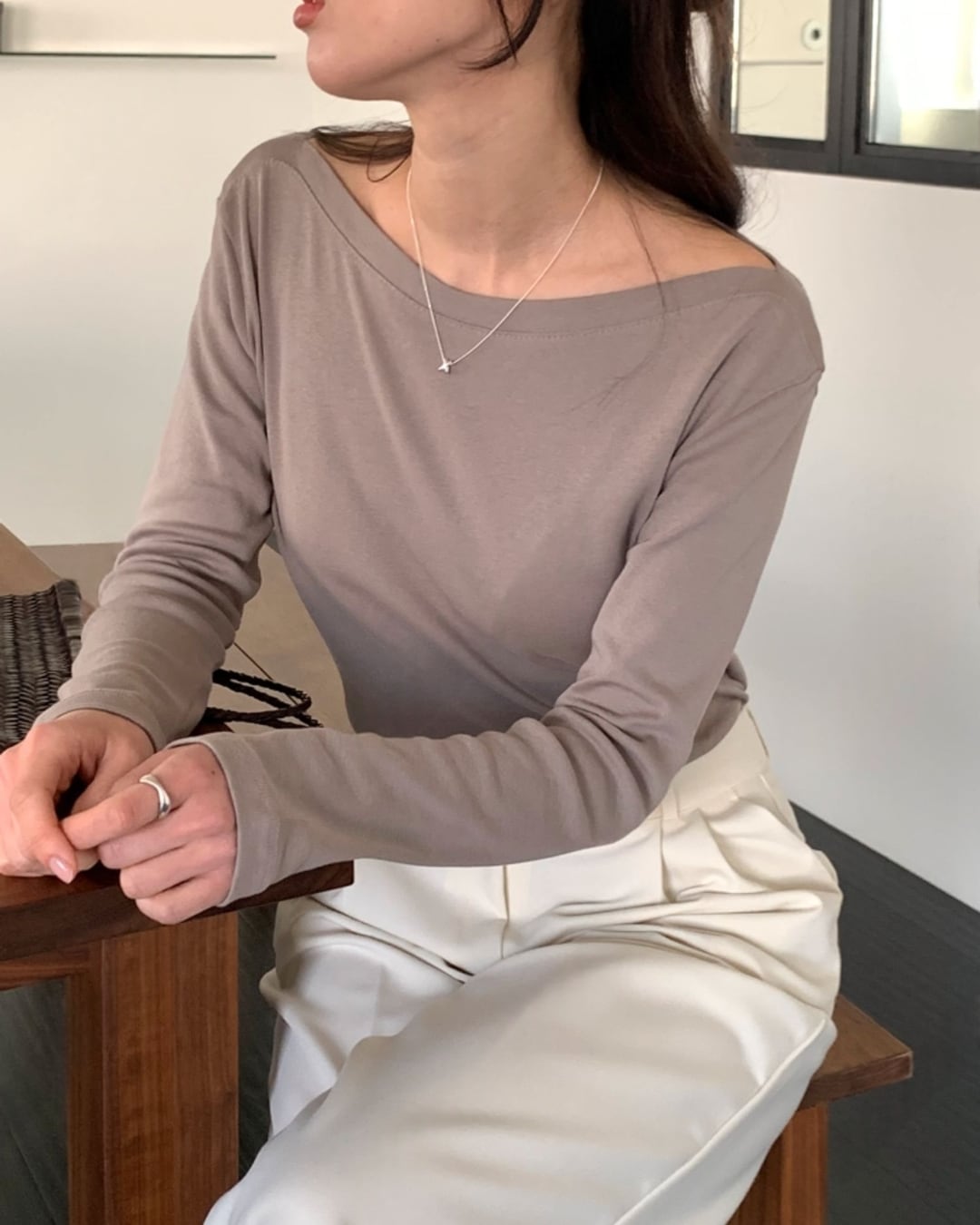 #ボートネック #コットンTシャツ #長袖トップス #ベーシックアイテム #大人カジュアル