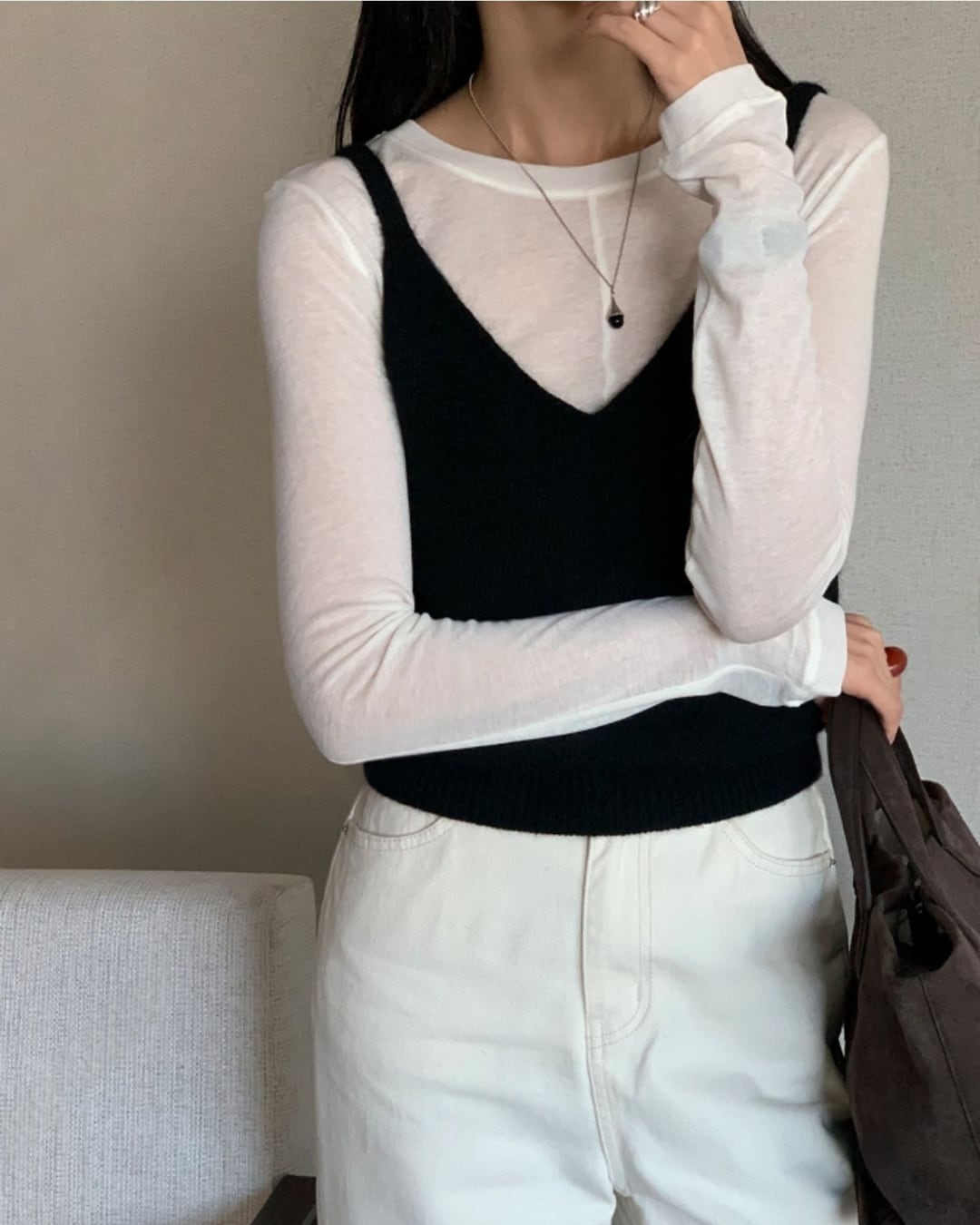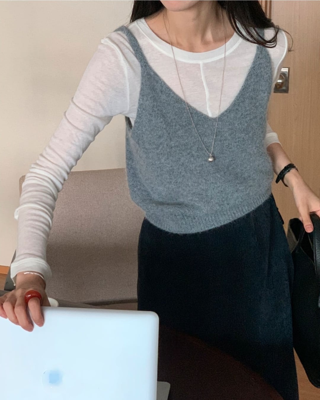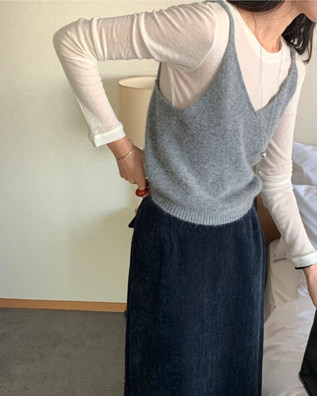#ニットビスチェ #アンゴラニット #ウール素材 #レイヤードコーデ #ツーウェイデザイン