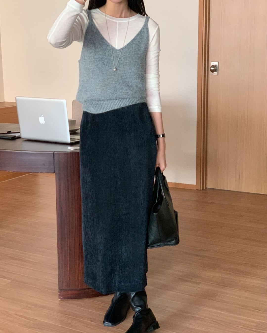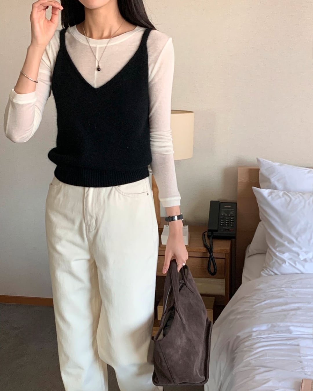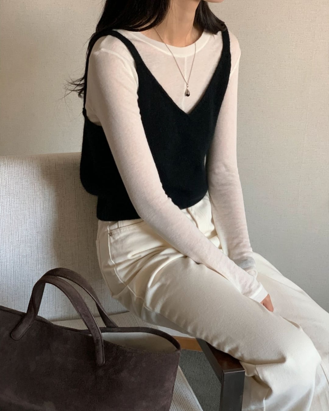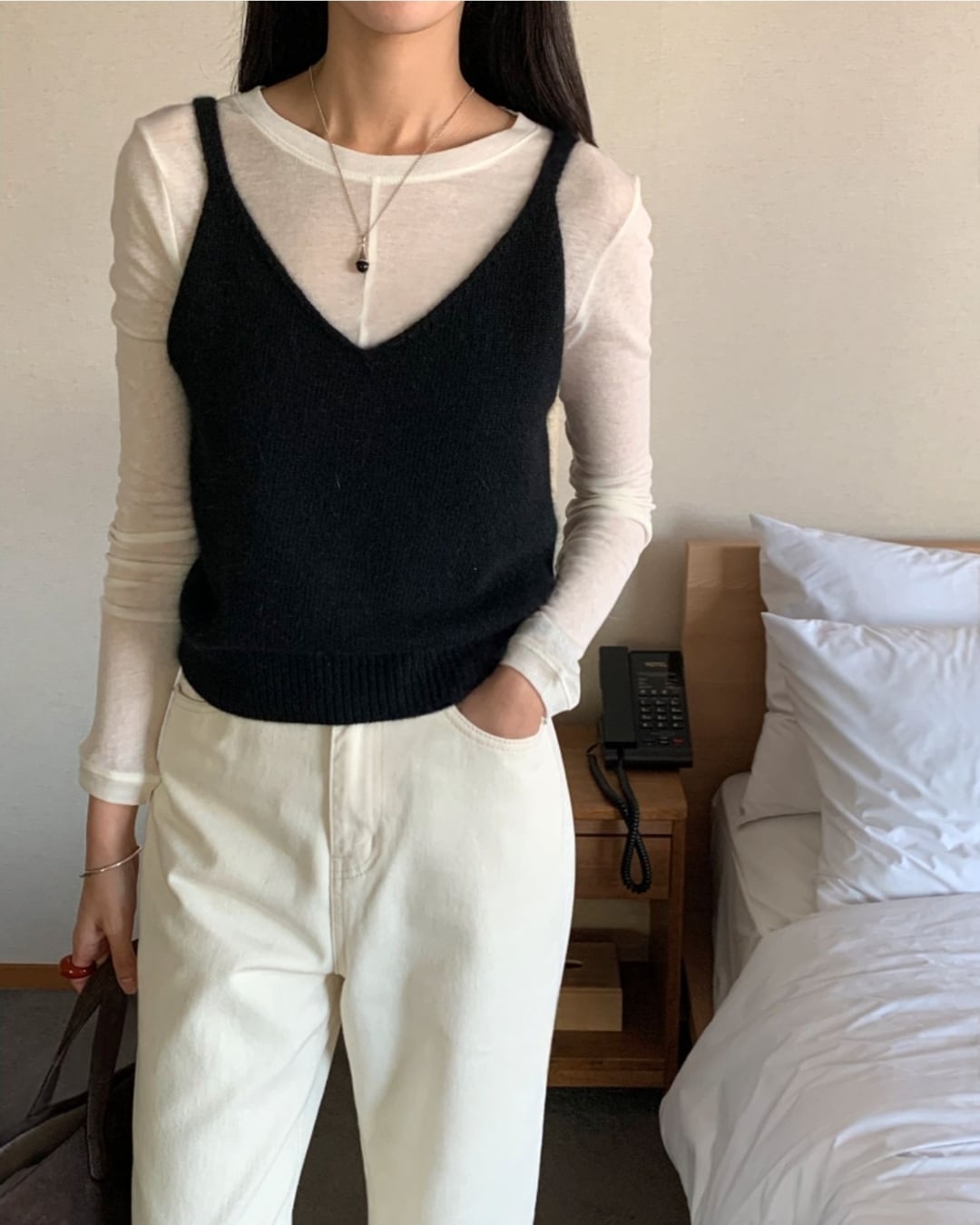 #ニットビスチェ #アンゴラニット #ウール素材 #レイヤードコーデ #ツーウェイデザイン
