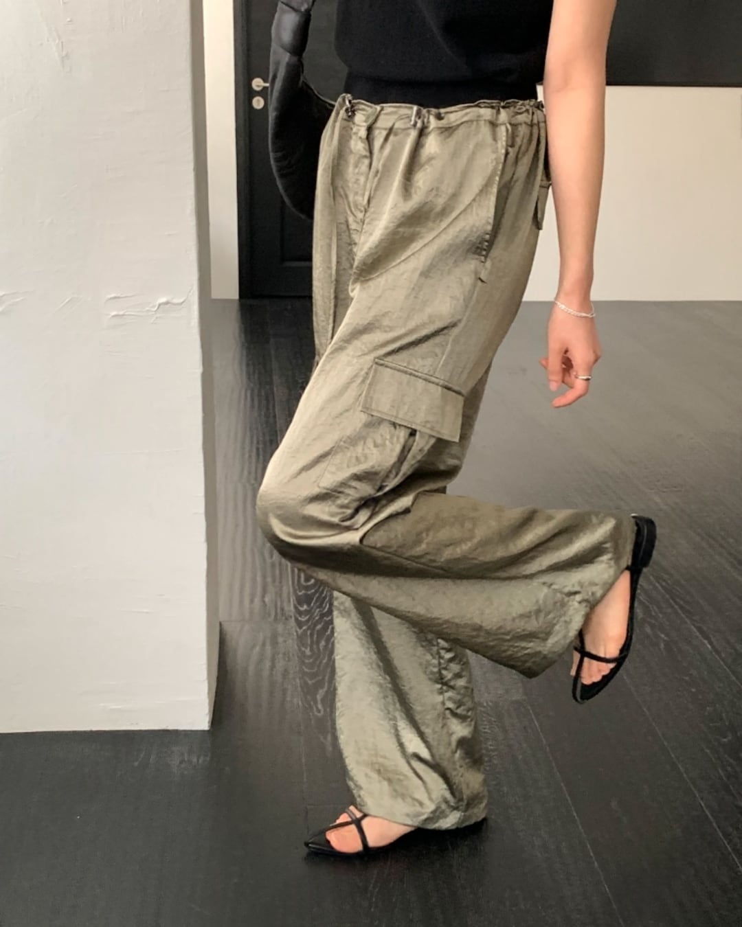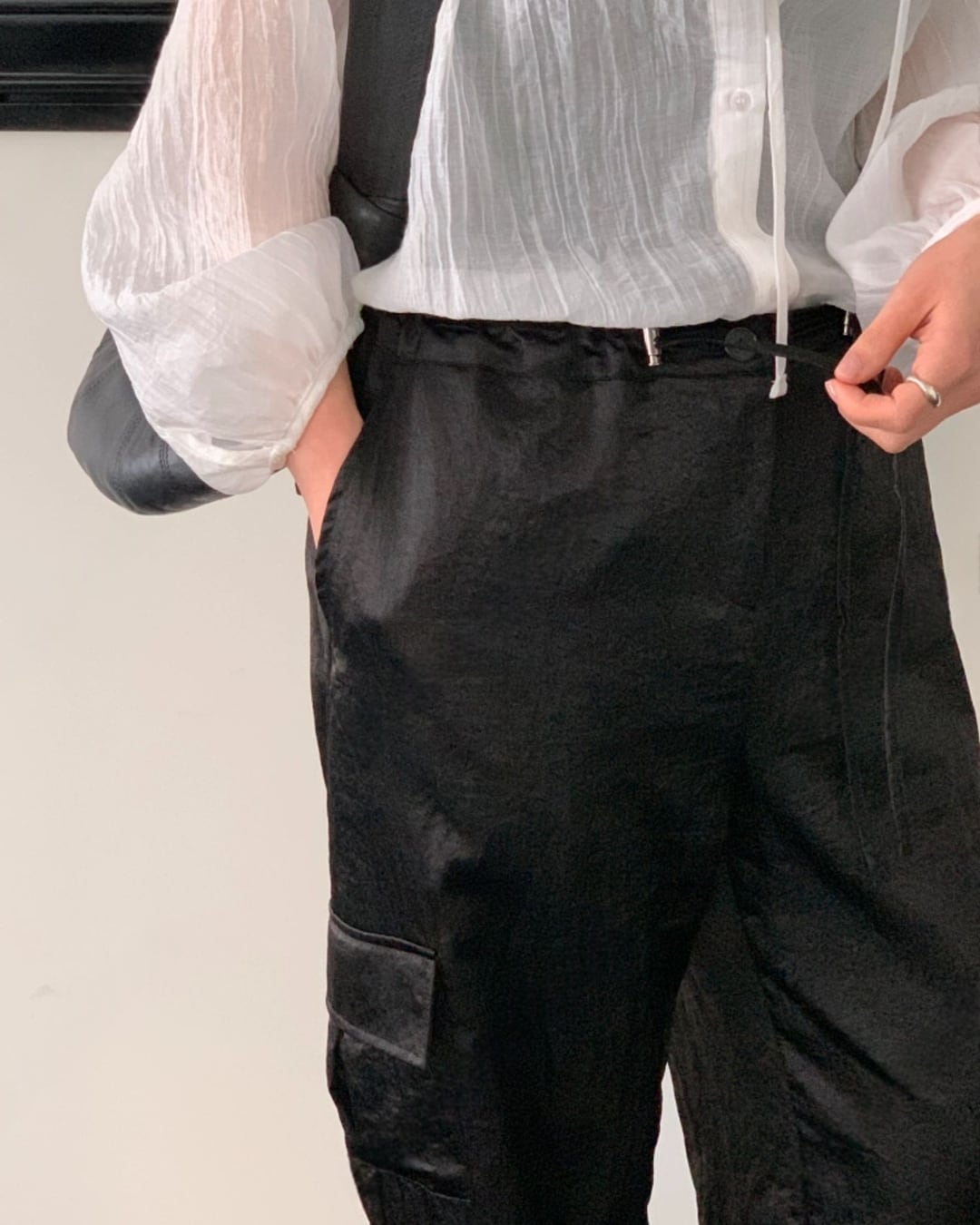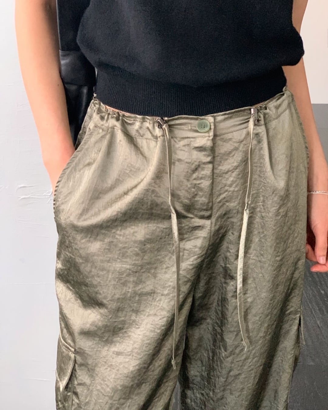 #カーゴパンツ #サテンパンツ #ウエストゴム #大人カジュアル #きれいめカジュアル
