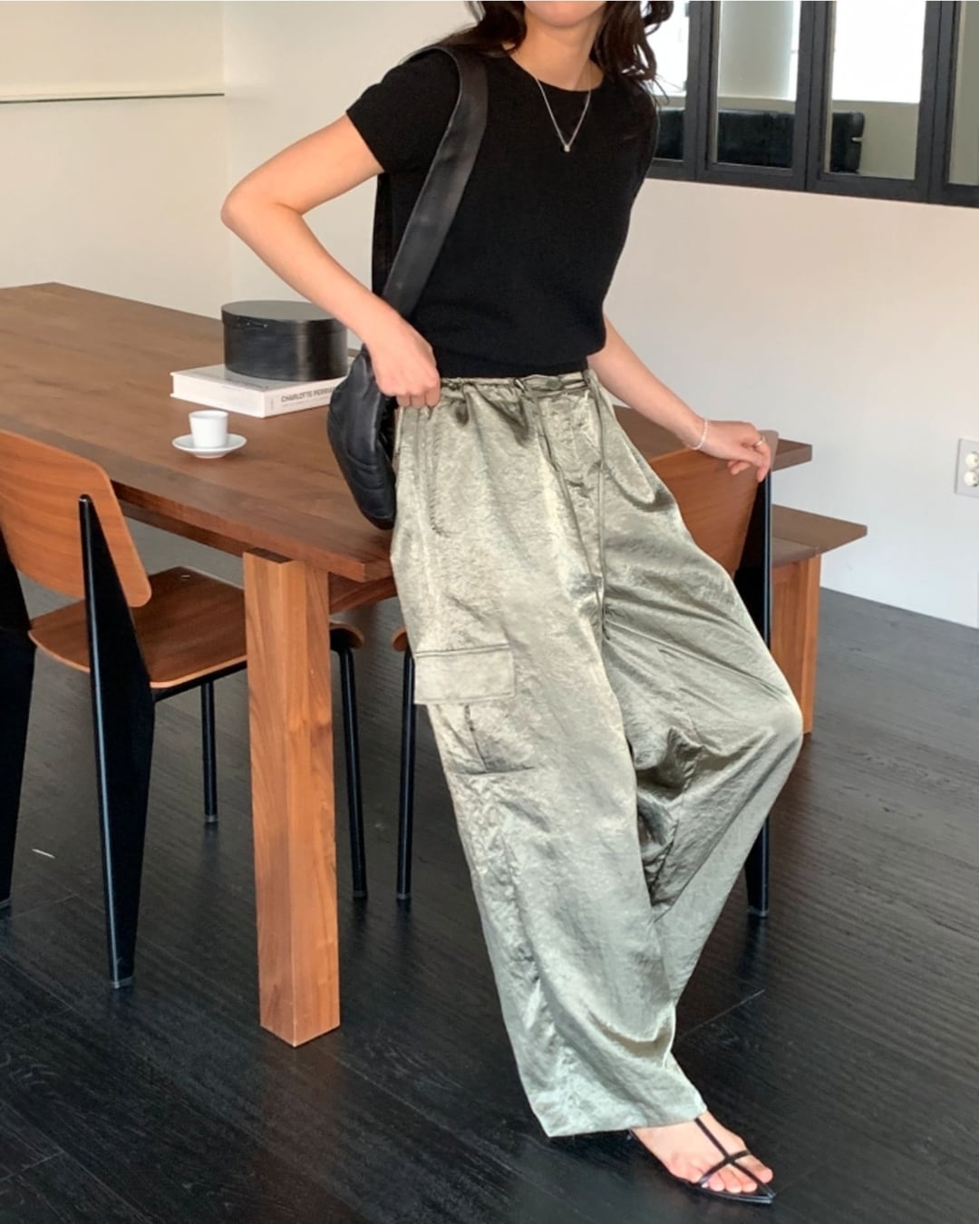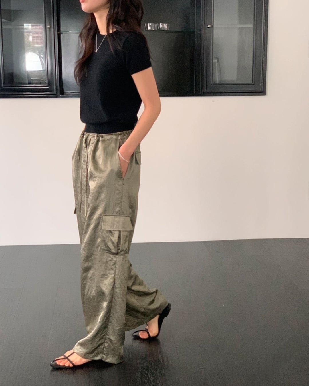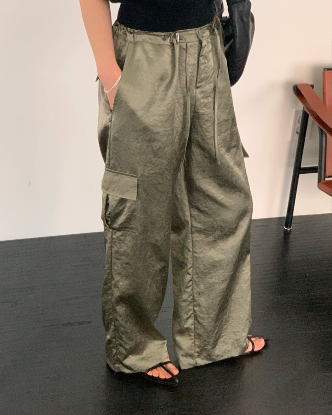 #カーゴパンツ #サテンパンツ #ウエストゴム #大人カジュアル #きれいめカジュアル