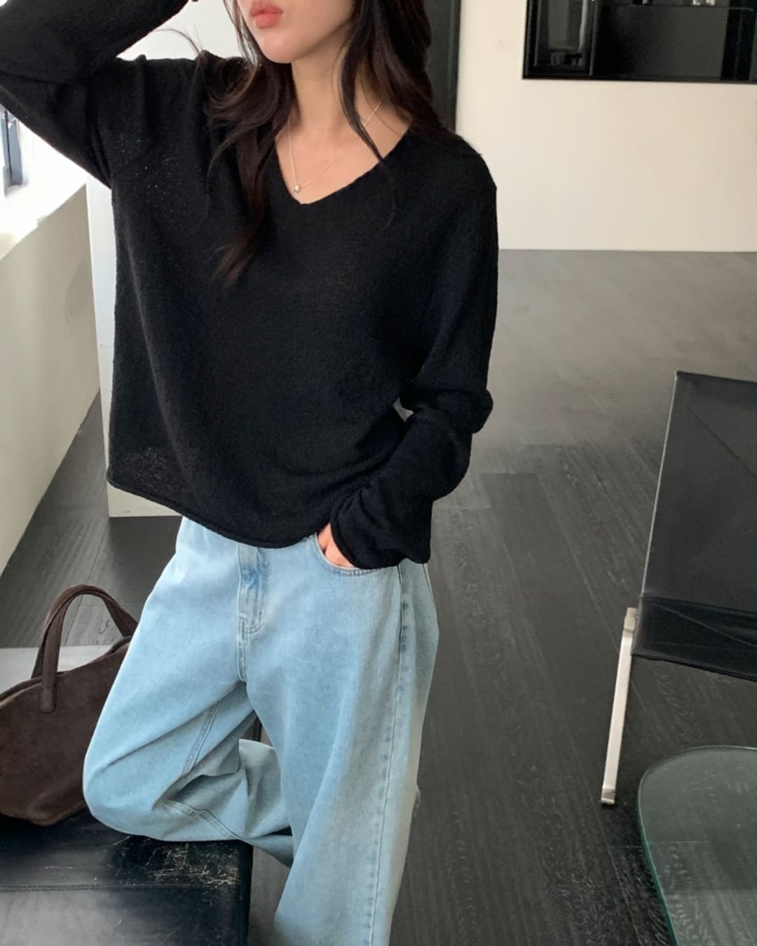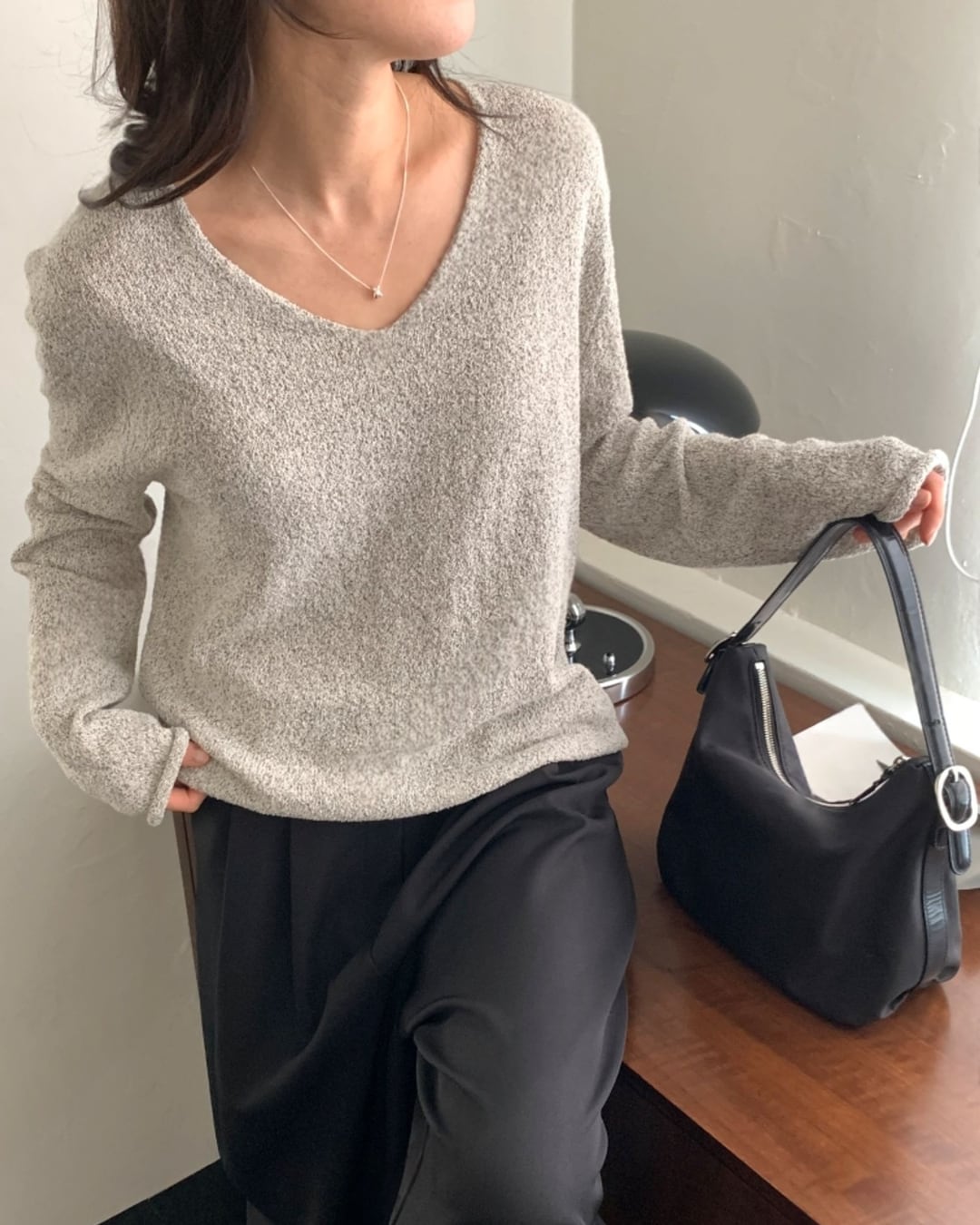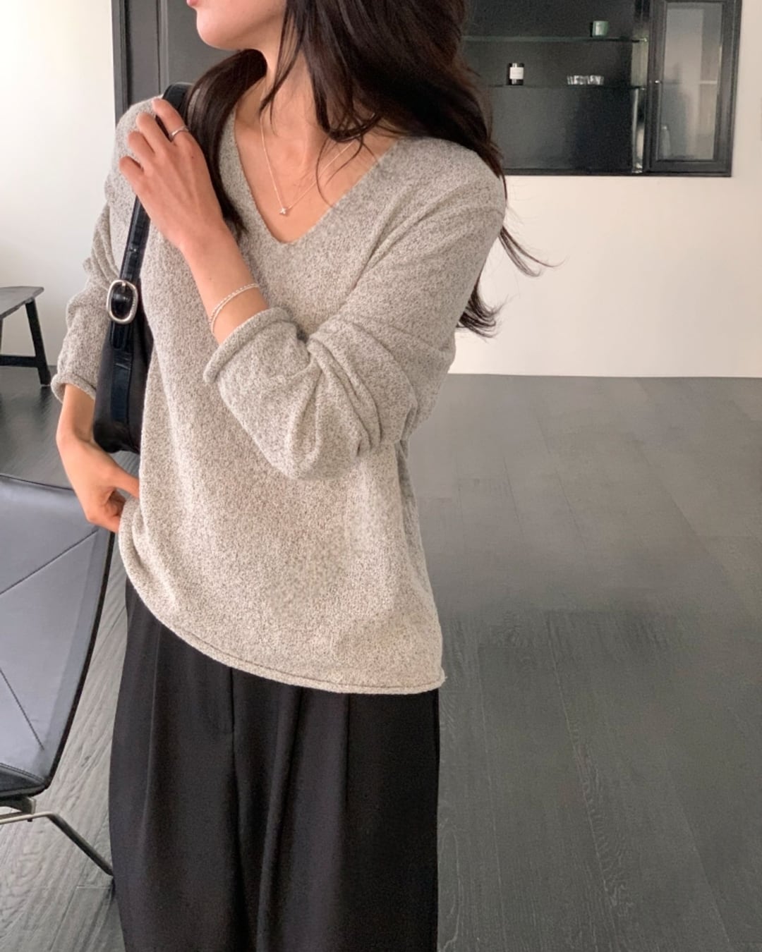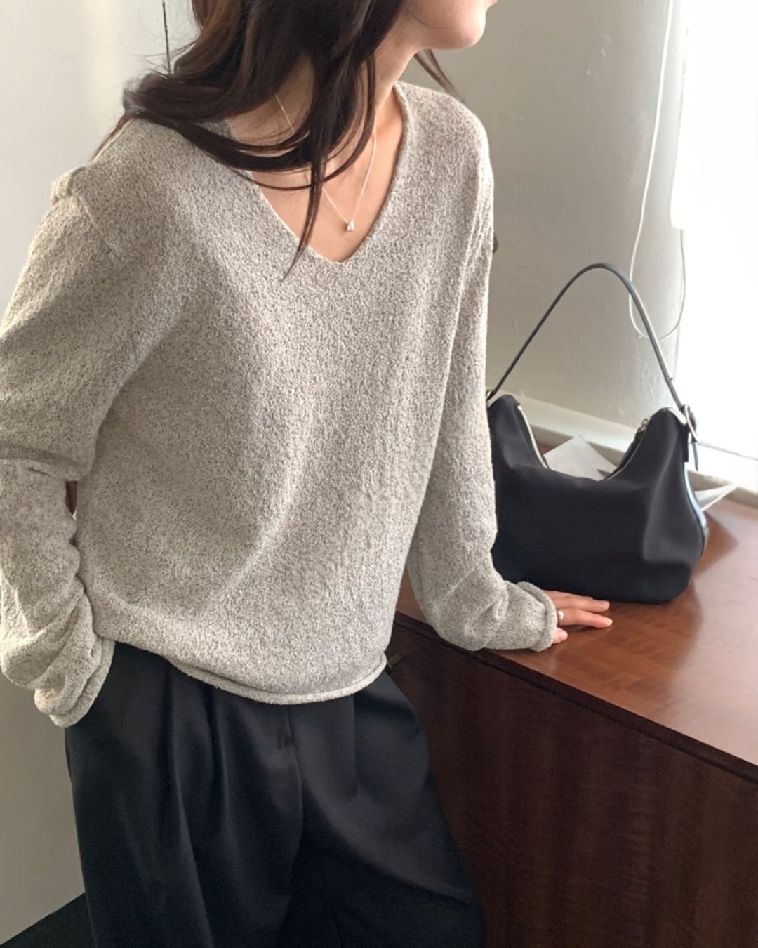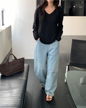#Vネックニット #スラブニット #ボクシーシルエット #大人カジュアル #ベーシックコーデ