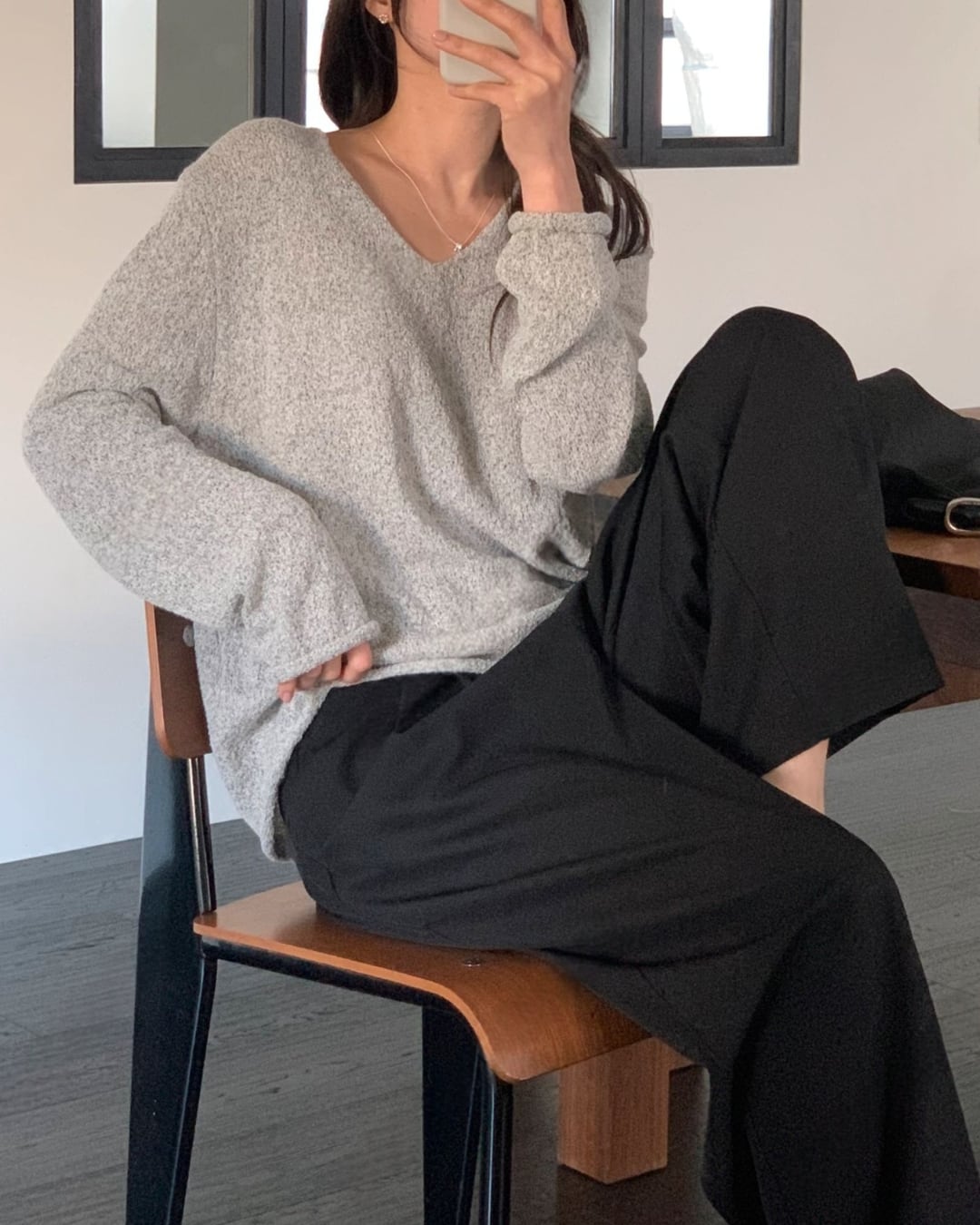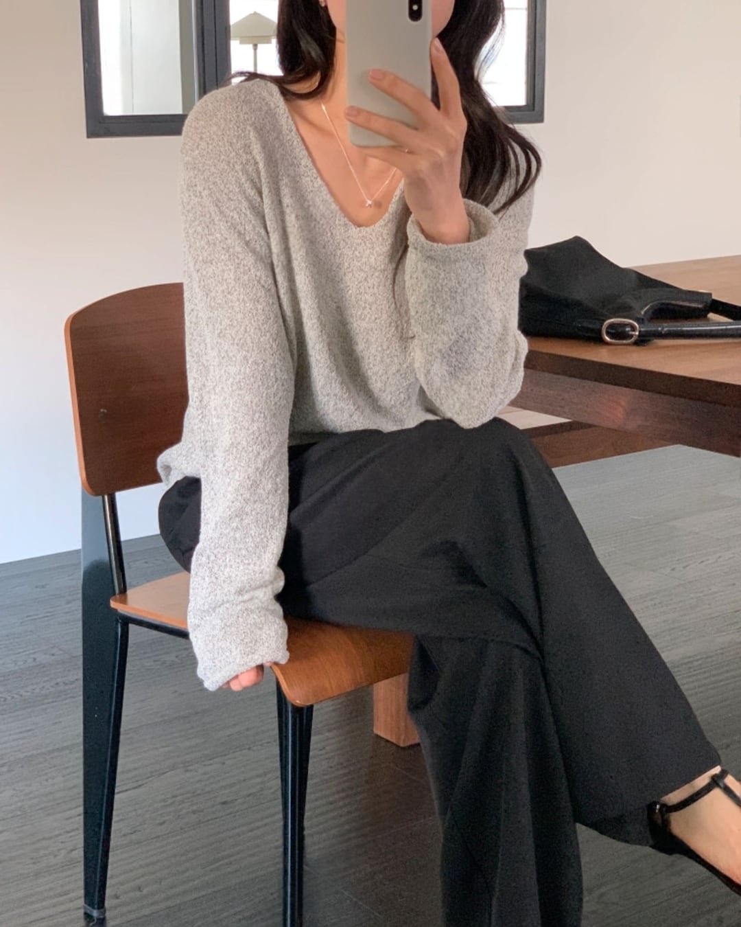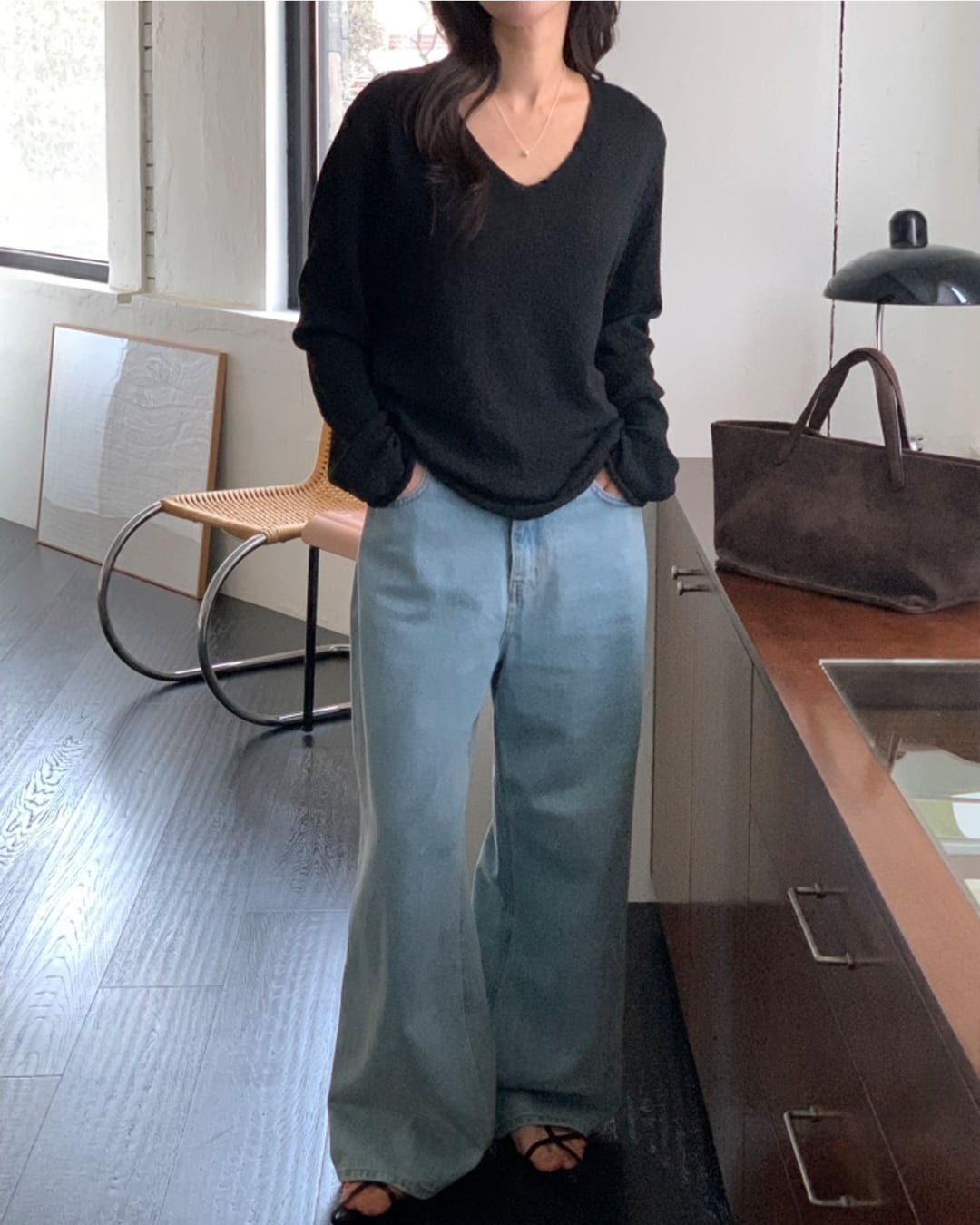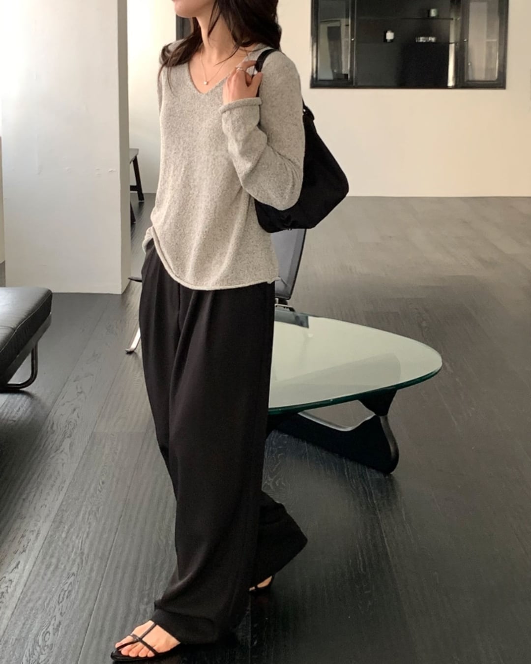 #Vネックニット #スラブニット #ボクシーシルエット #大人カジュアル #ベーシックコーデ