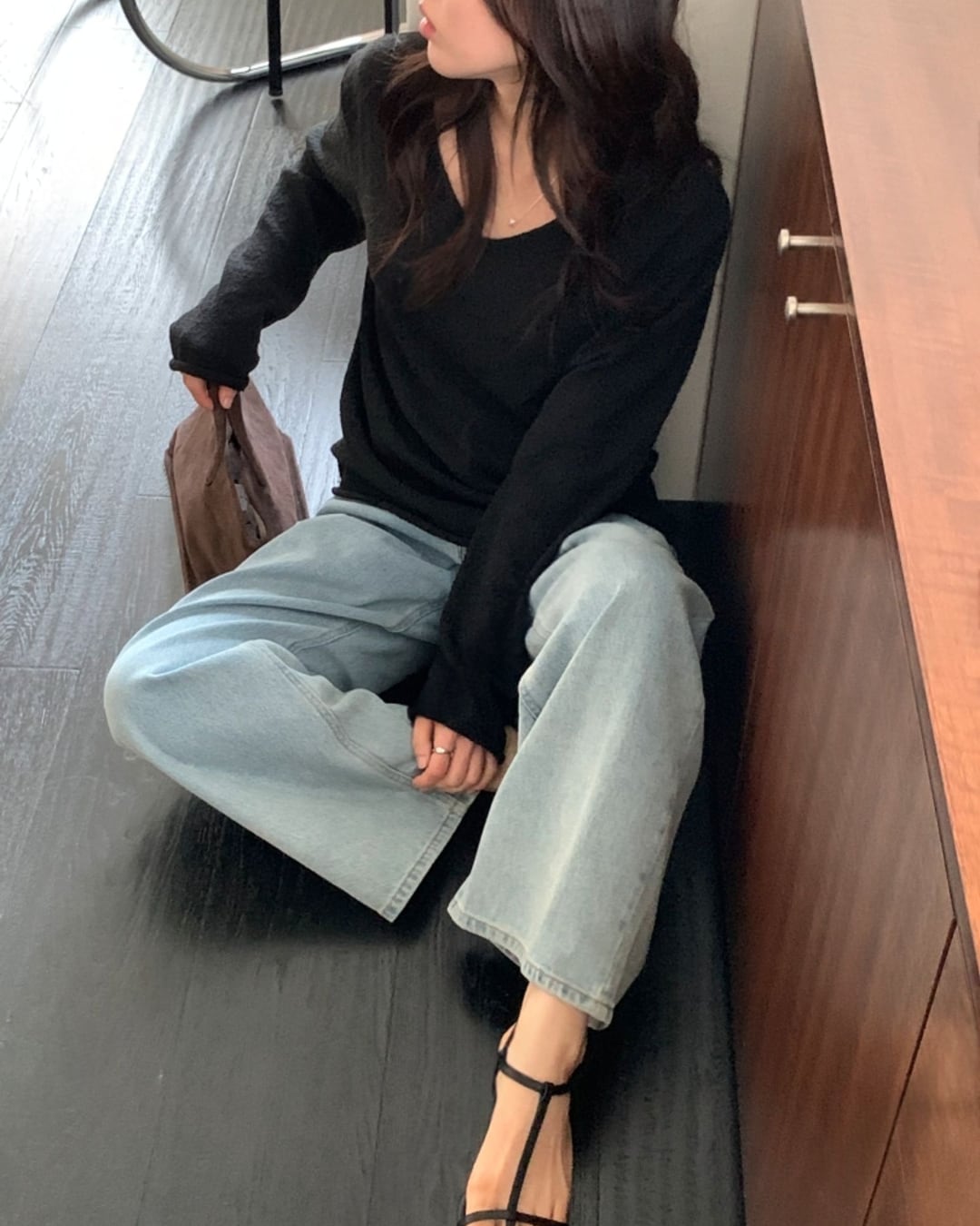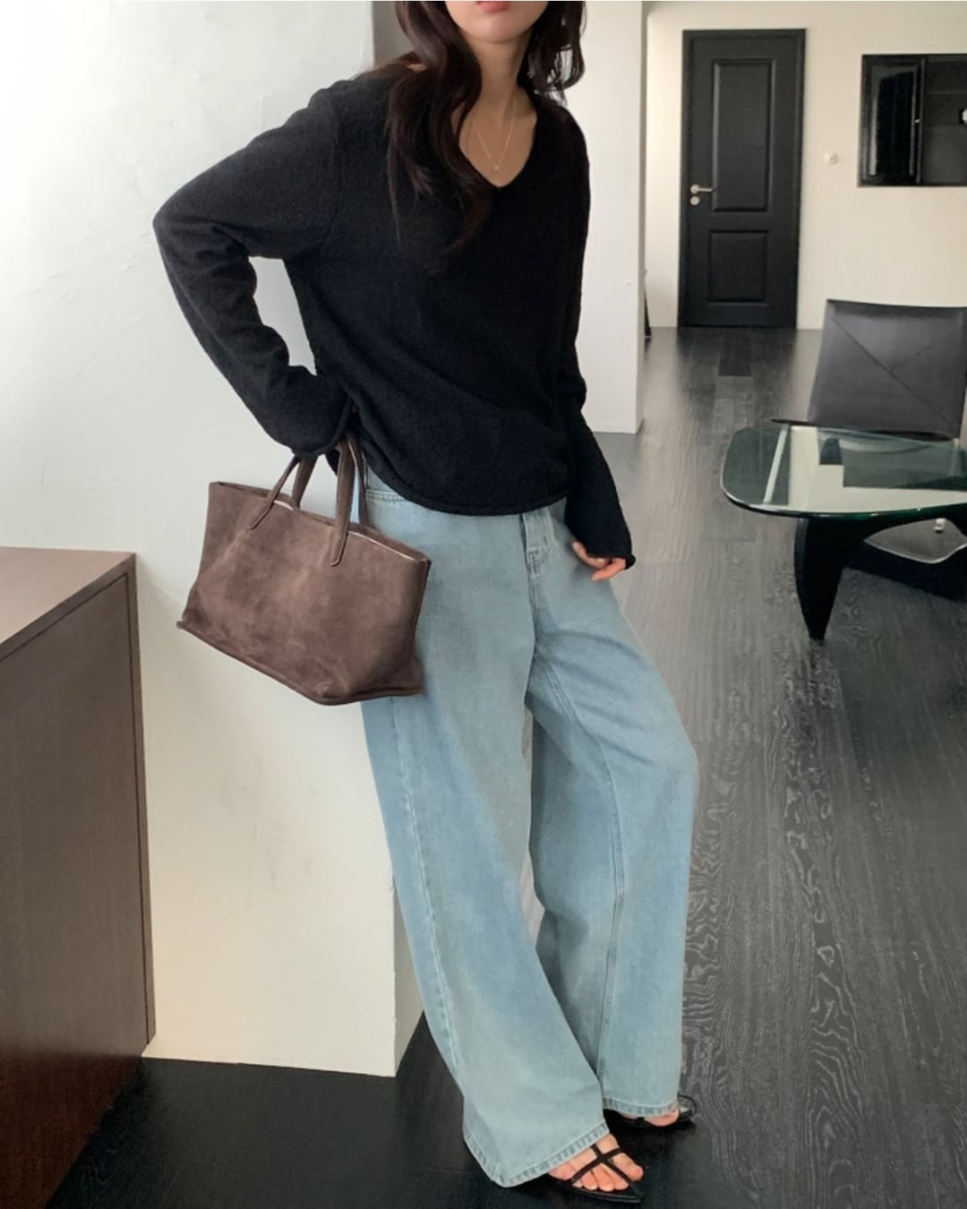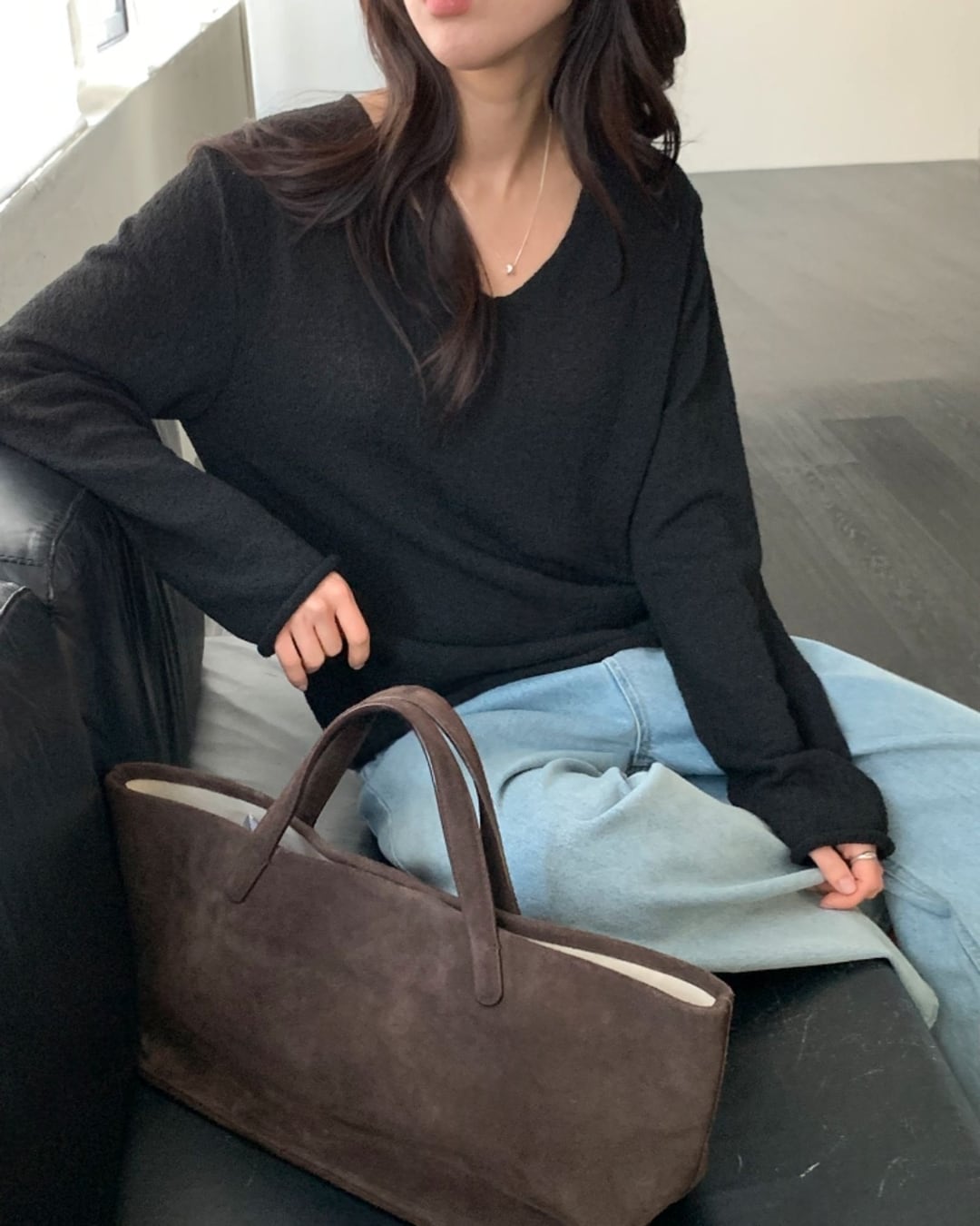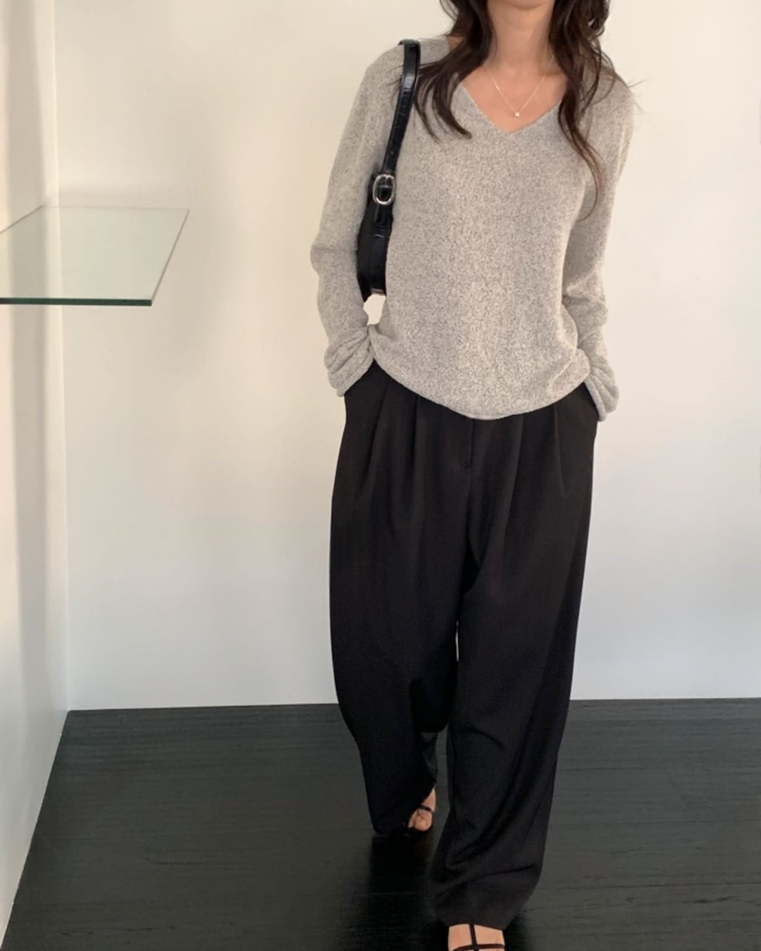 #Vネックニット #スラブニット #ボクシーシルエット #大人カジュアル #ベーシックコーデ