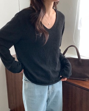 Vネックスラブニット