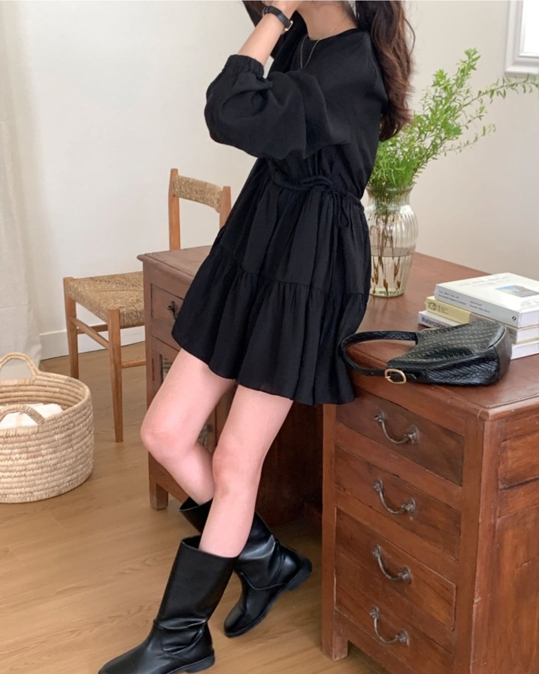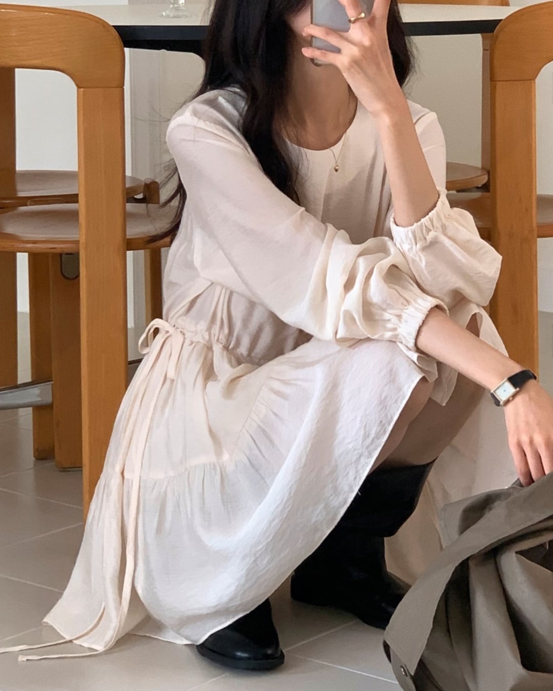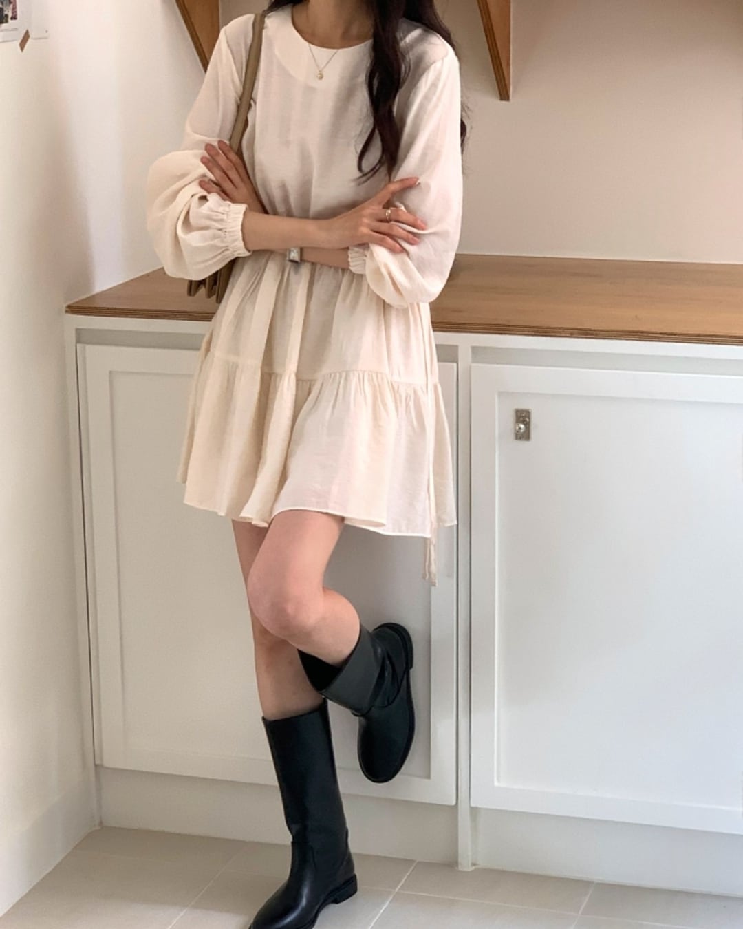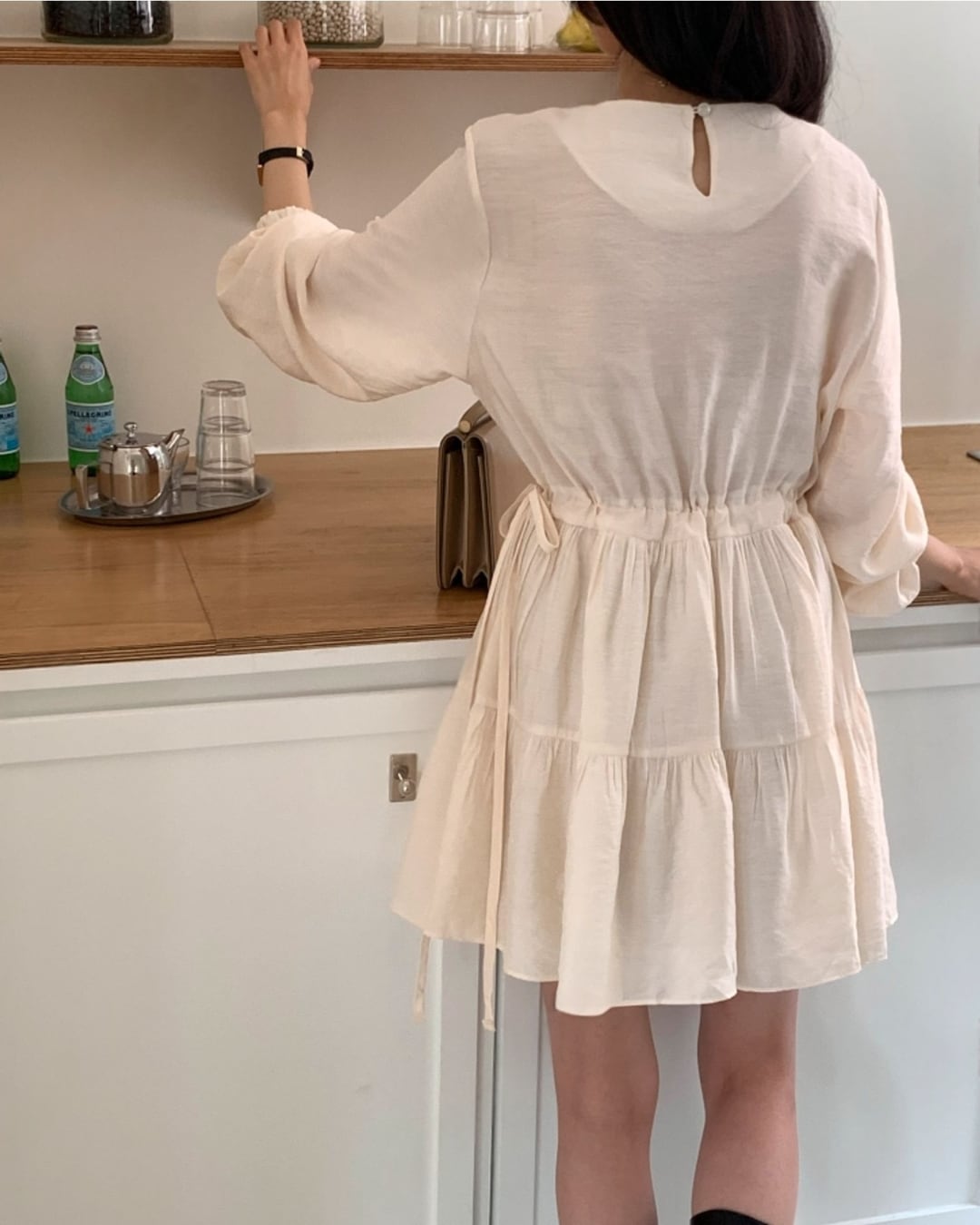 #ミディワンピース #シャーリング #ティアードワンピース #大人フェミニン #きれいめカジュアル