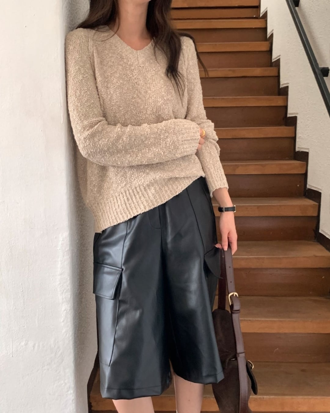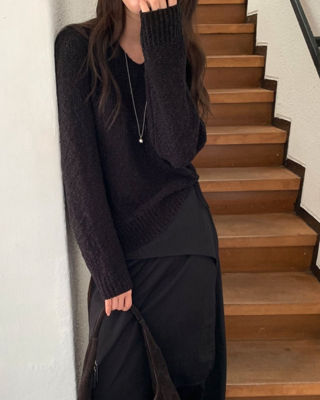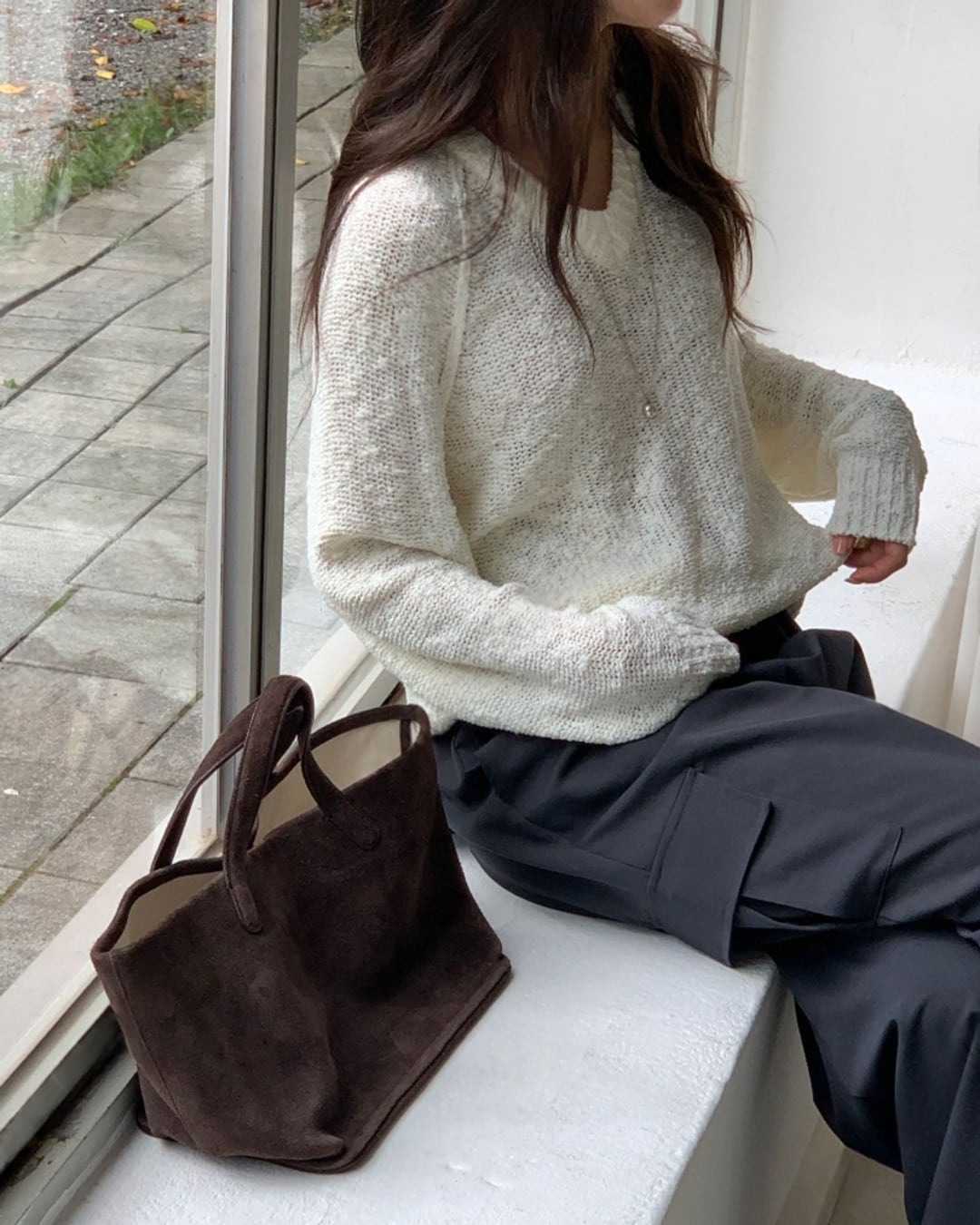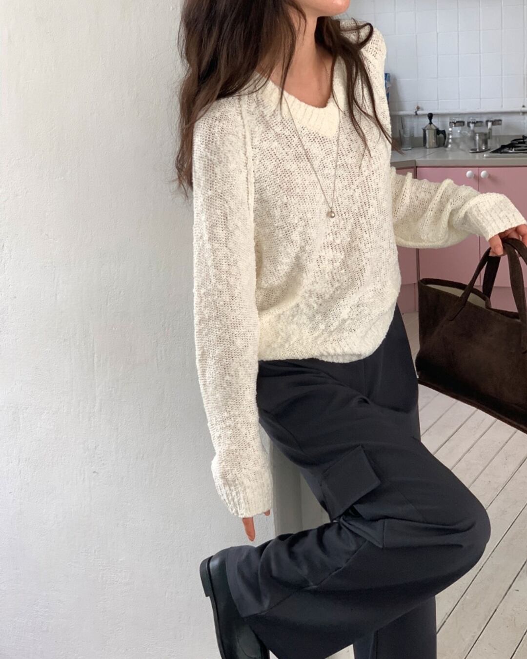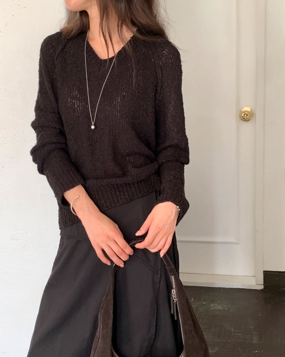 #Vネックニット #ポップコーン編み #ルーズフィット #大人カジュアル #秋冬コーデ