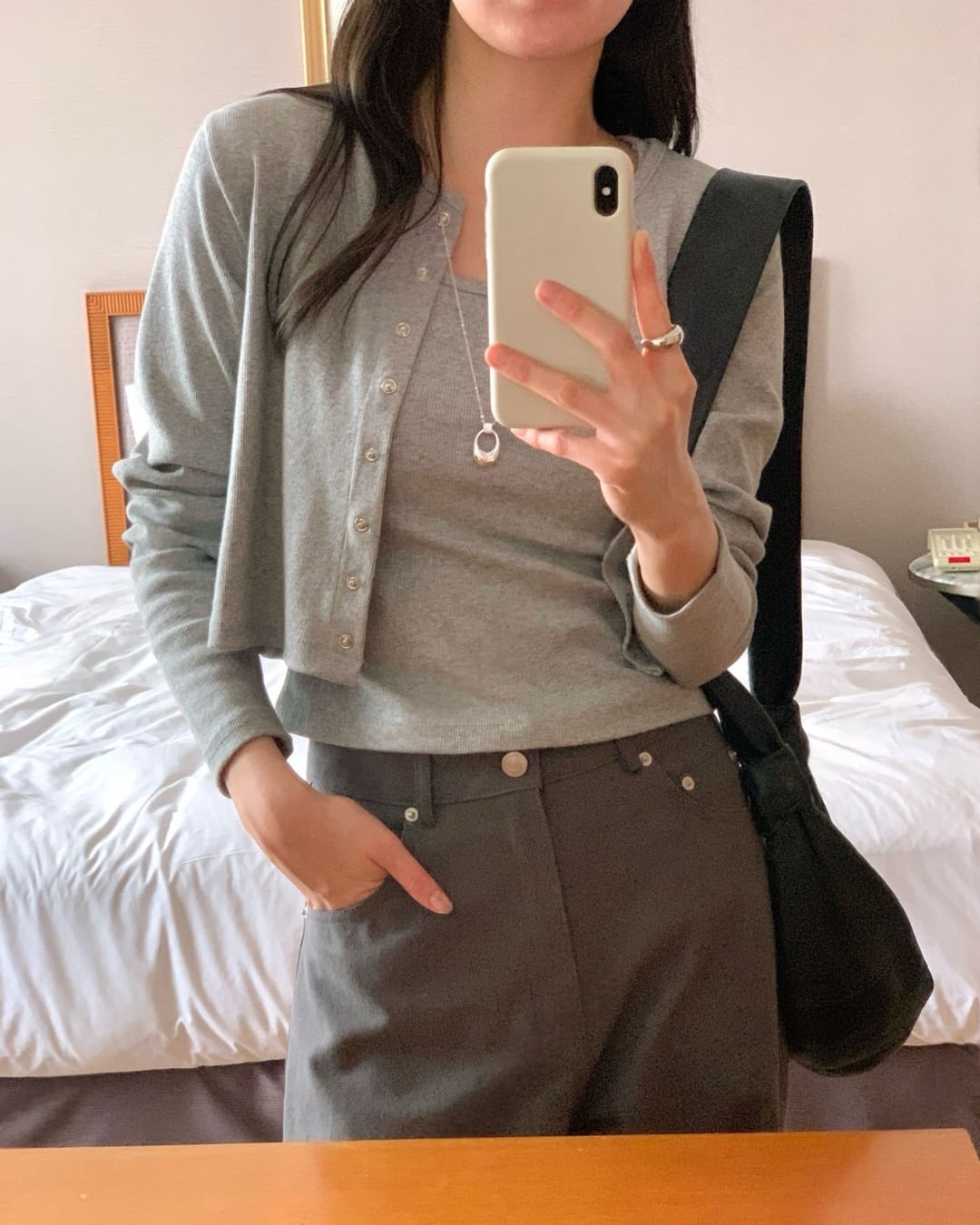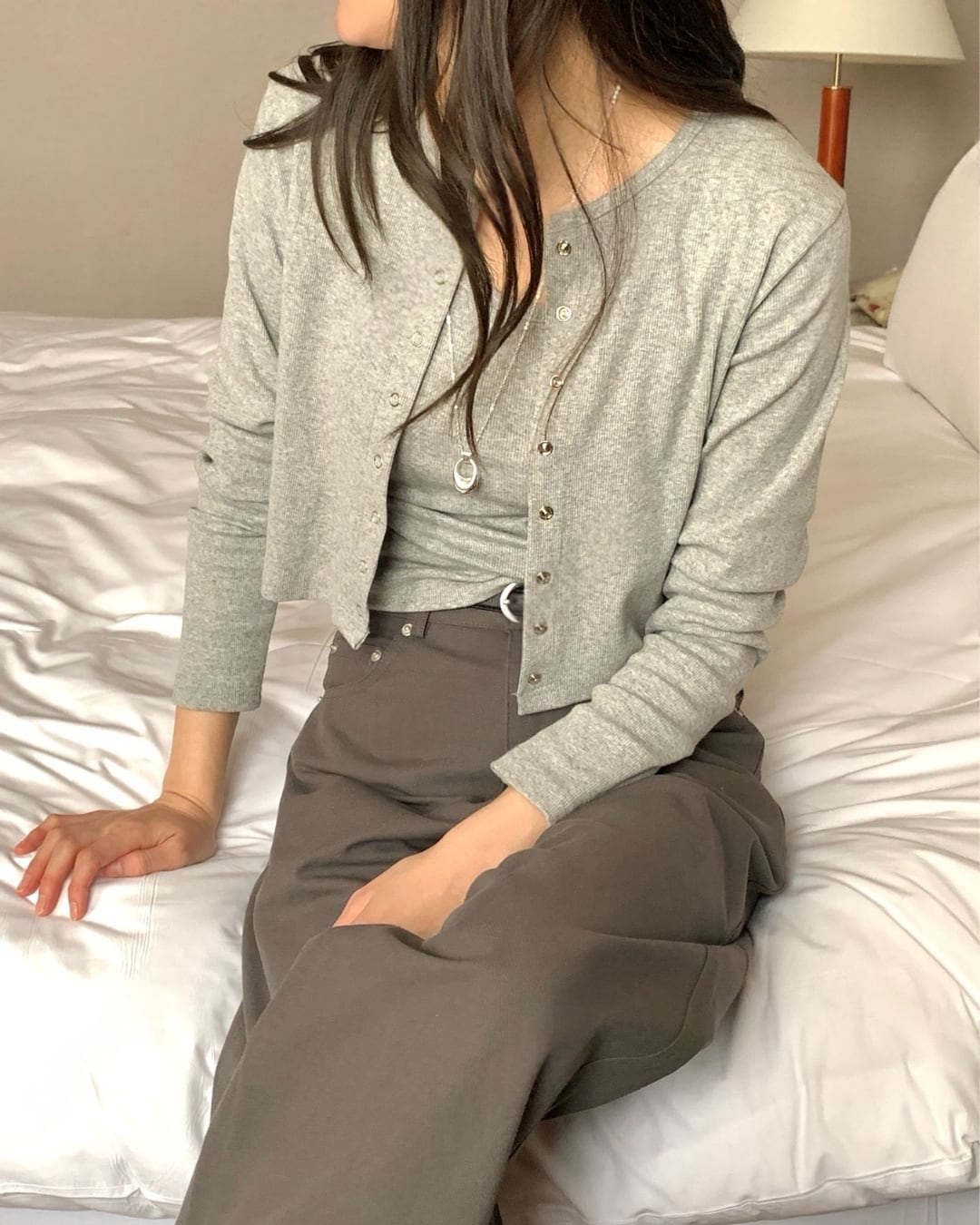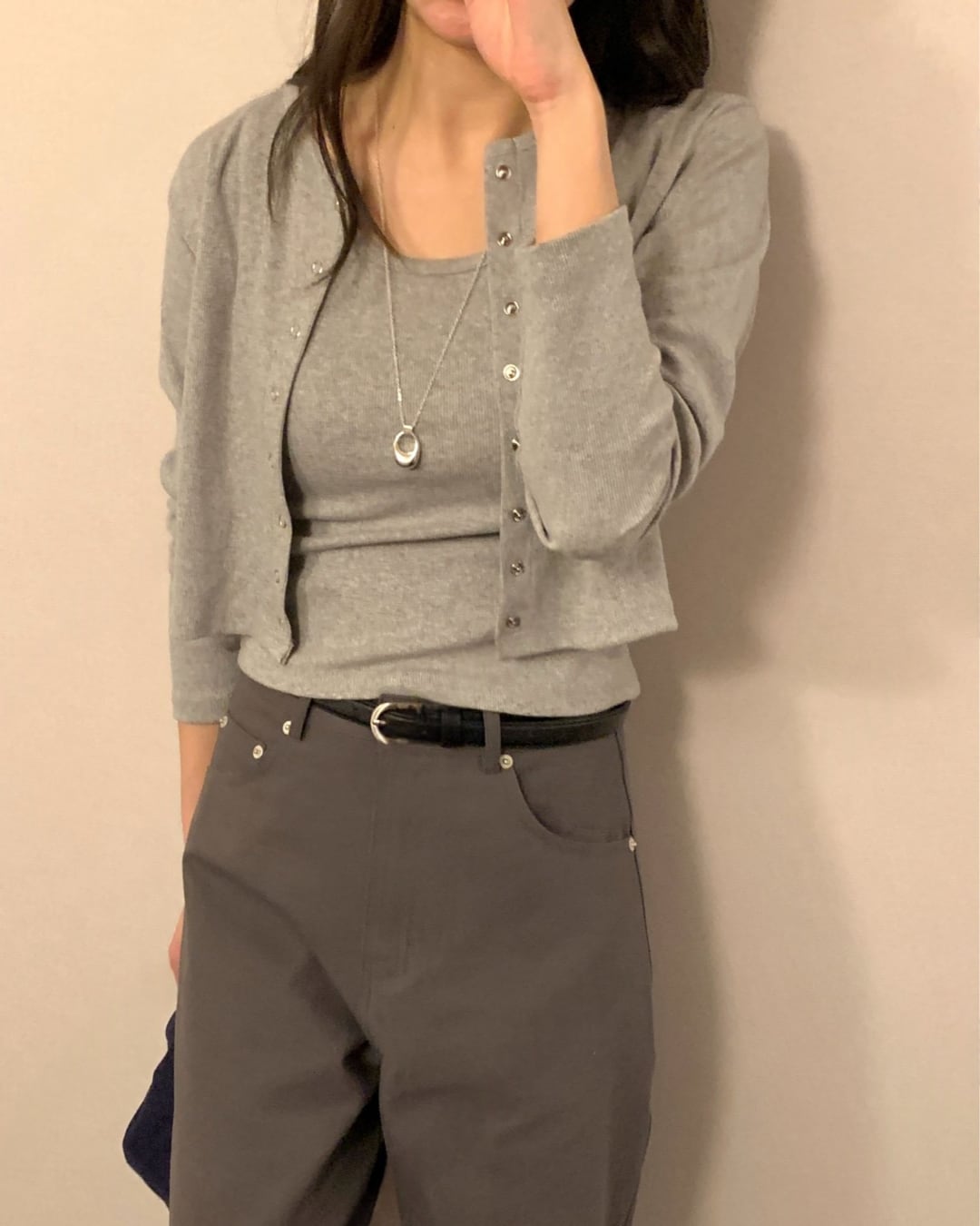#リブトップス #スナップカーディガン #セットアイテム #大人カジュアル #着回しコーデ
