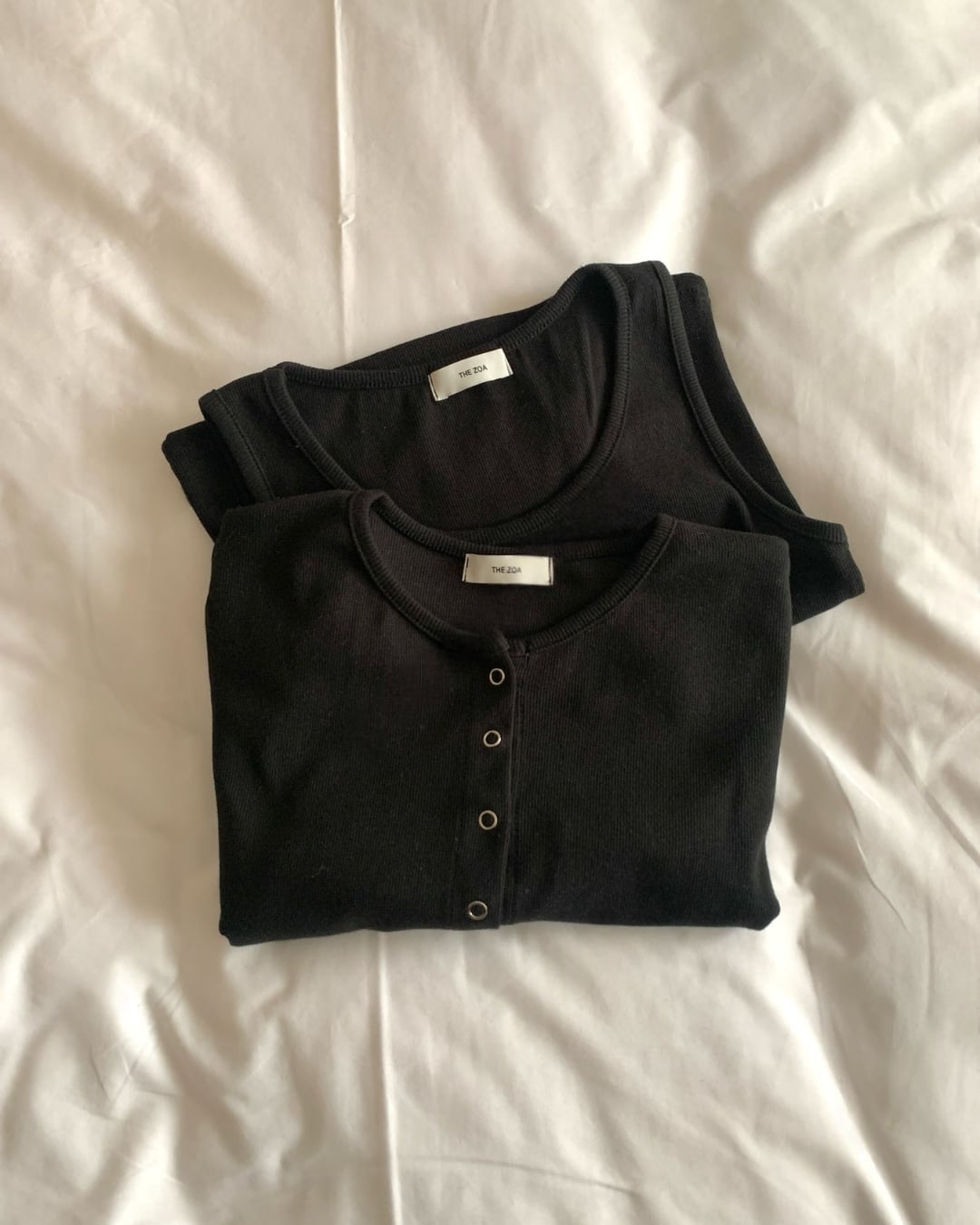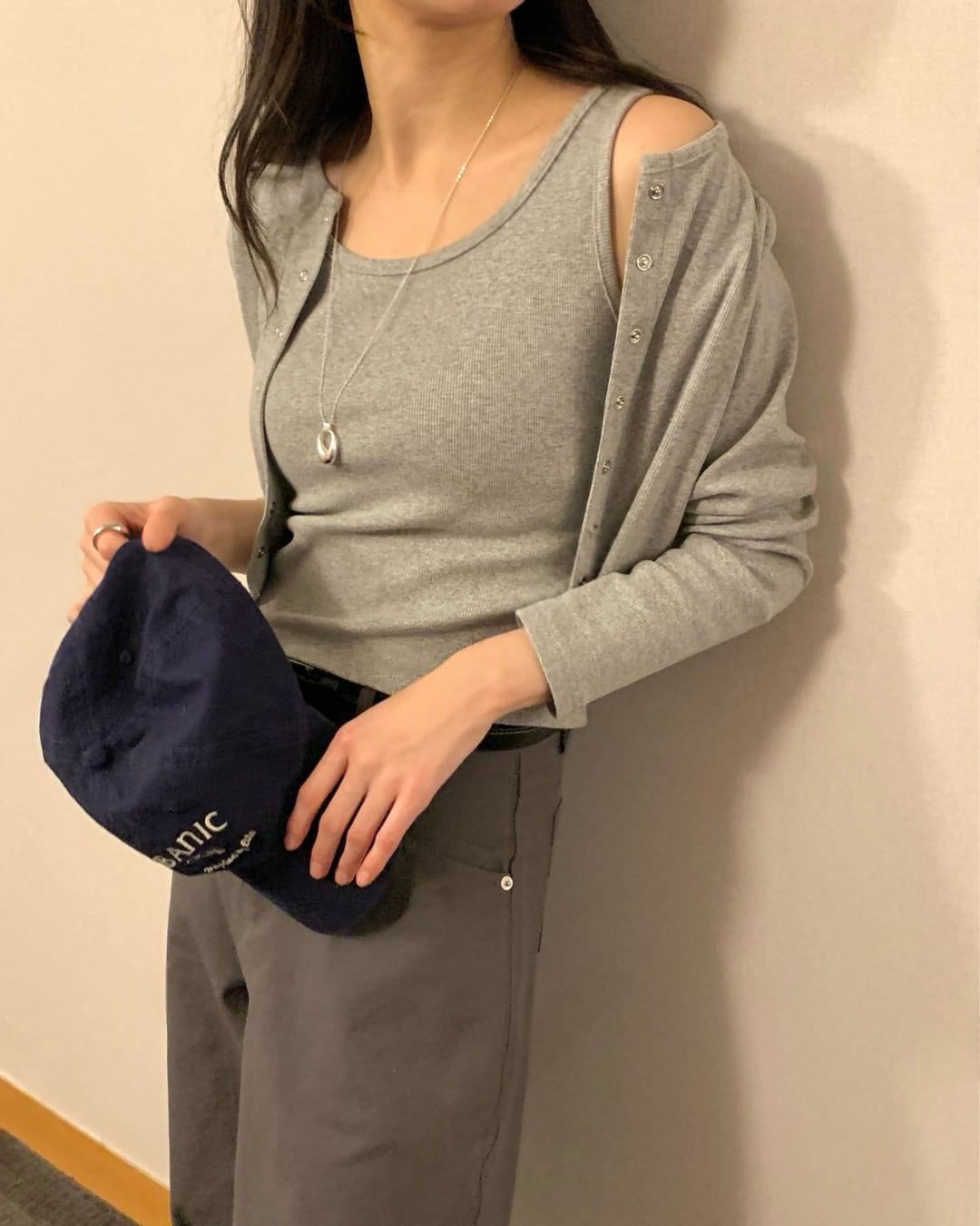 シンプルで着回し力抜群のリブセットアイテム。スナップボタン付きカーディガンとタンクトップがセットになった、コーデに悩まない万能アイテムです。程よく身体にフィットするリブ素材が女性らしいラインを演出。伸縮性があり着心地も快適で、単品使いもできるためロングシーズン活躍します。デニムやスラックスと合わせてカジュアルに、スカートと合わせてきれいめにも着こなせる大人のデイリーセットです。