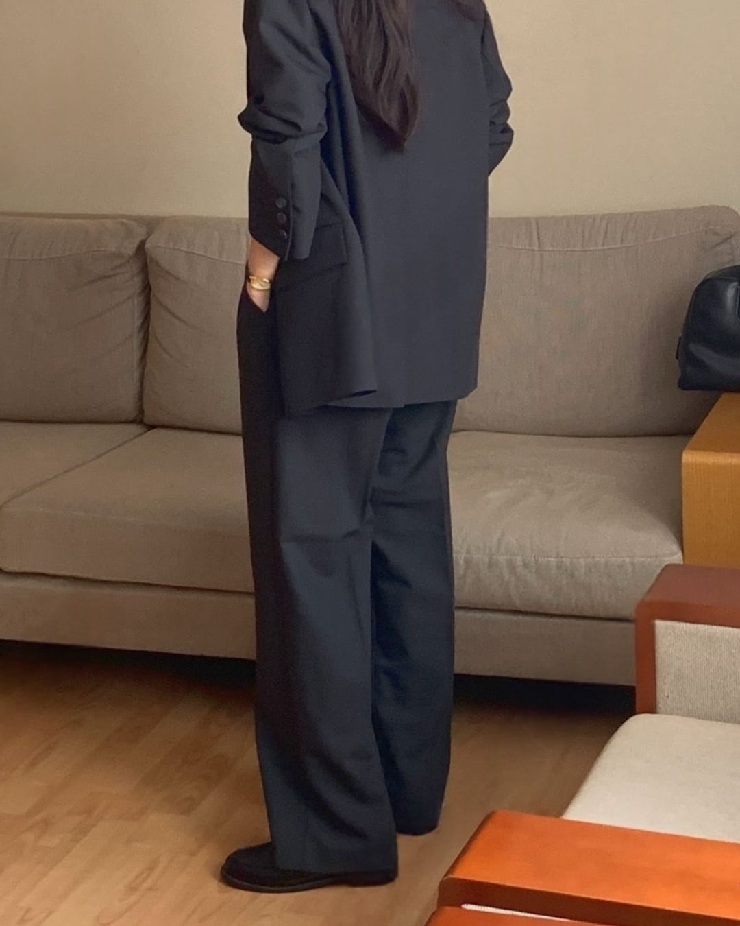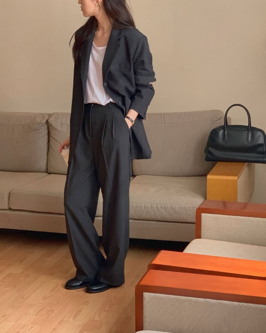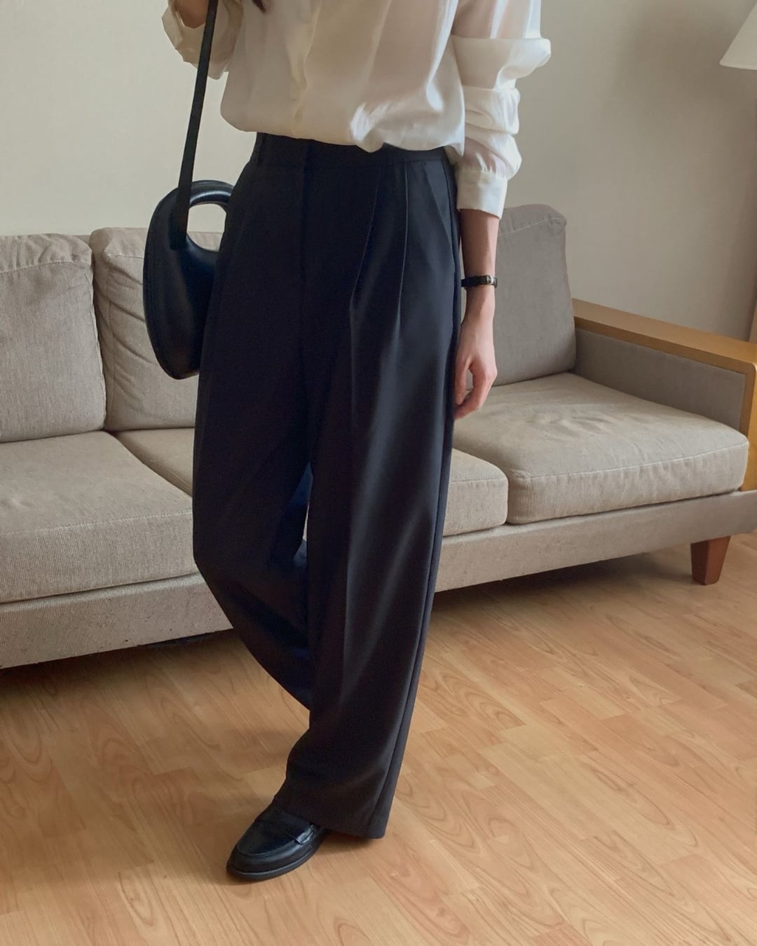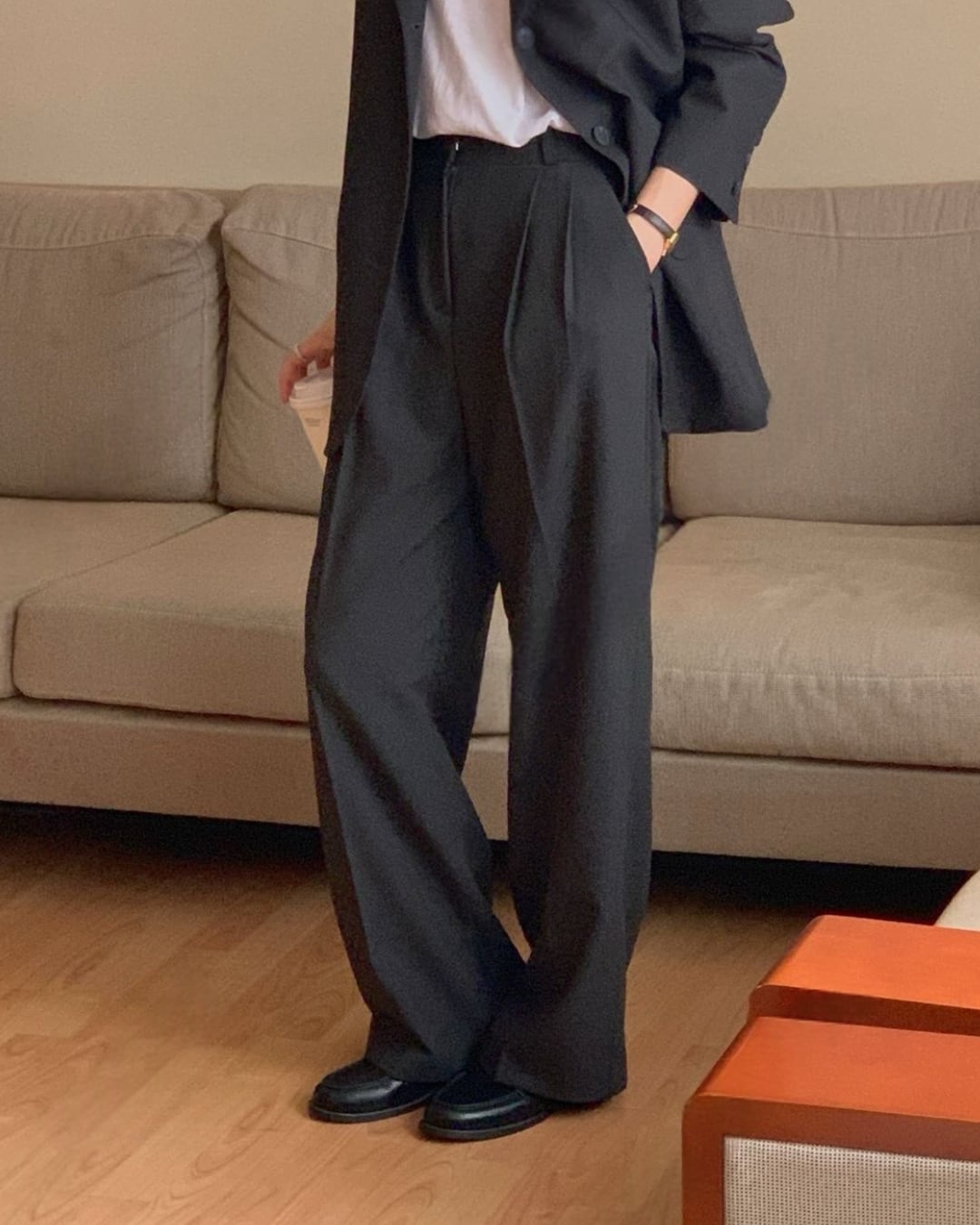 洗練された大人の雰囲気を演出するツータックスラックス。フロントのツータックデザインが立体感を生み、程よくゆとりのあるワイドシルエットでこなれた印象に仕上げてくれます。落ち感のある素材で美しいラインをキープしながら、動きやすさも兼ね備えた一着。ジャケットと合わせたセットアップ風スタイルはもちろん、Tシャツやニットと合わせた抜け感コーデもおすすめ。オンオフ問わず活躍する、都会的で上品なスラックスです。