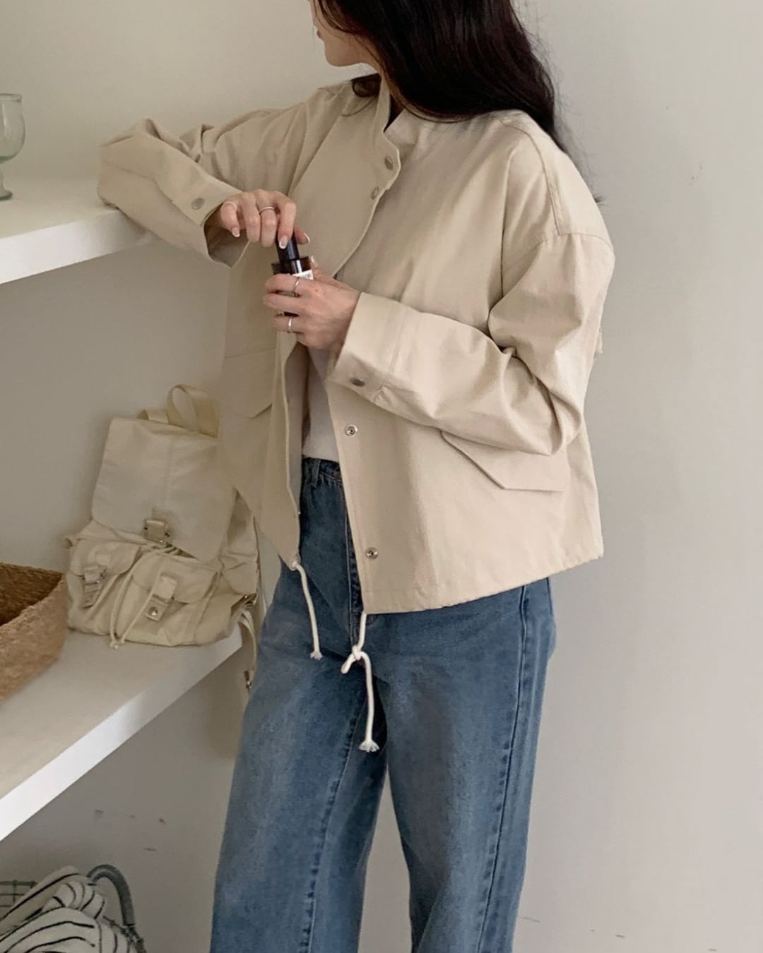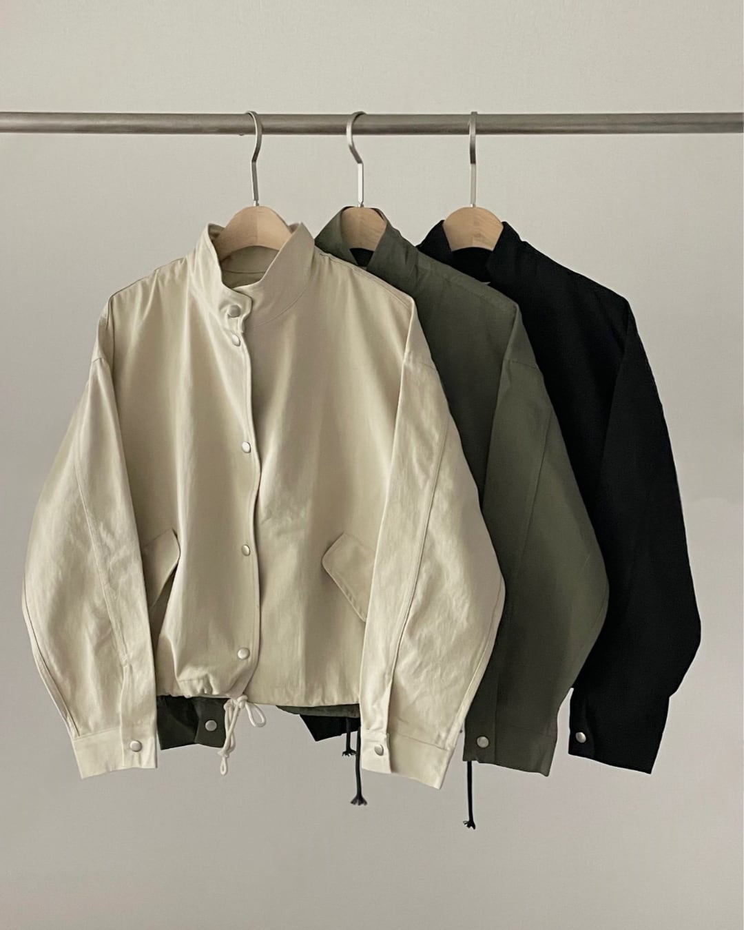 程よくラフなシルエットが魅力のミリタリージャケット。シンプルながらも存在感のあるデザインで、さっと羽織るだけでこなれた印象に仕上がります。裾のドローストリングでシルエット調整が可能。カジュアルコーデはもちろん、フェミニンなスカートと合わせたミックススタイルもおすすめです。季節の変わり目に活躍する万能ライトアウターとして、デイリーに着回せる一着です。