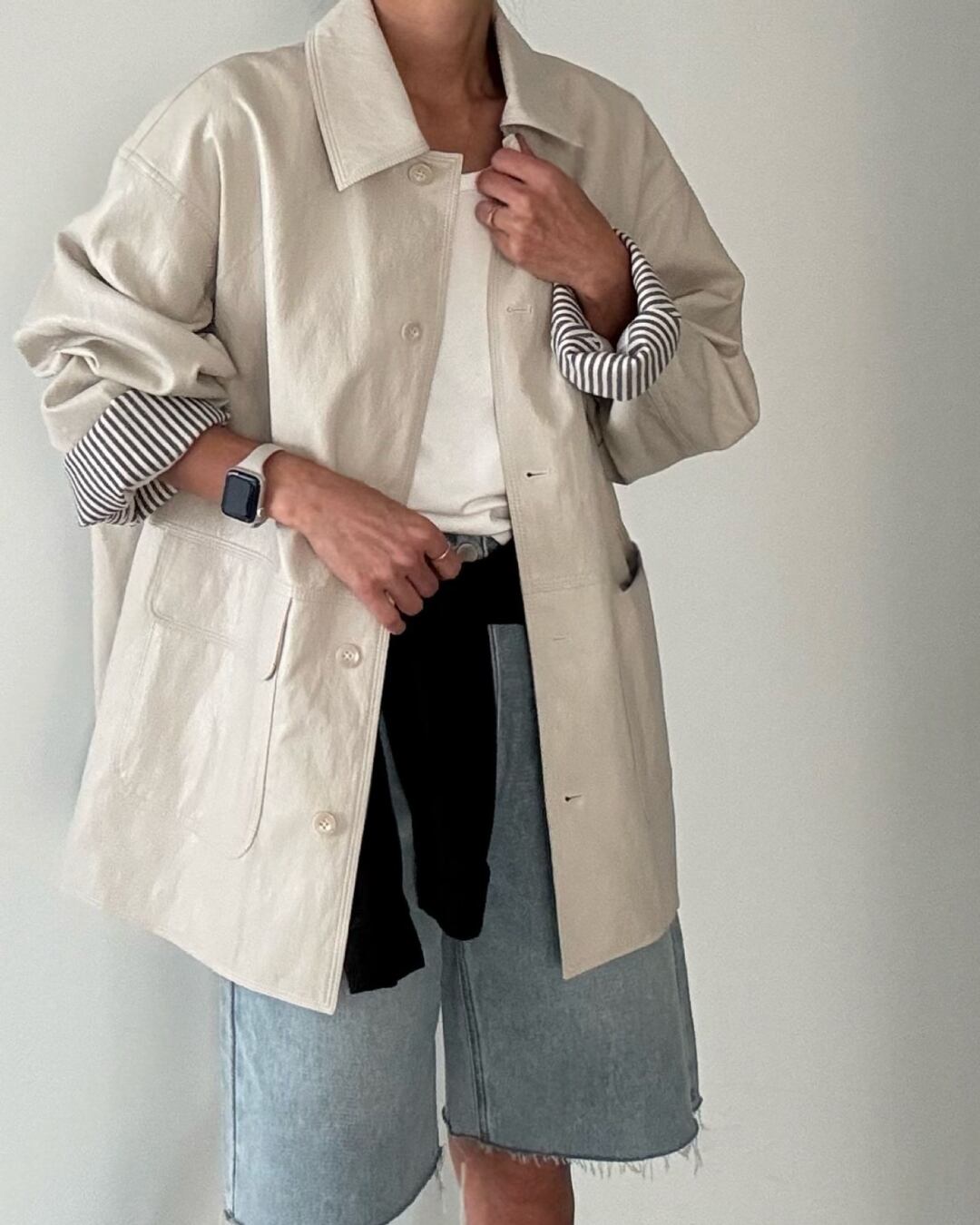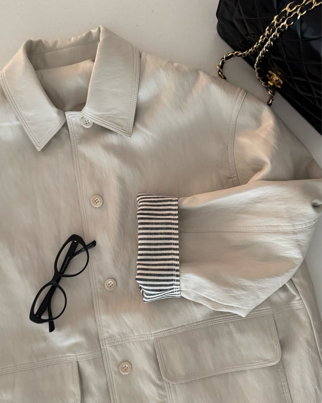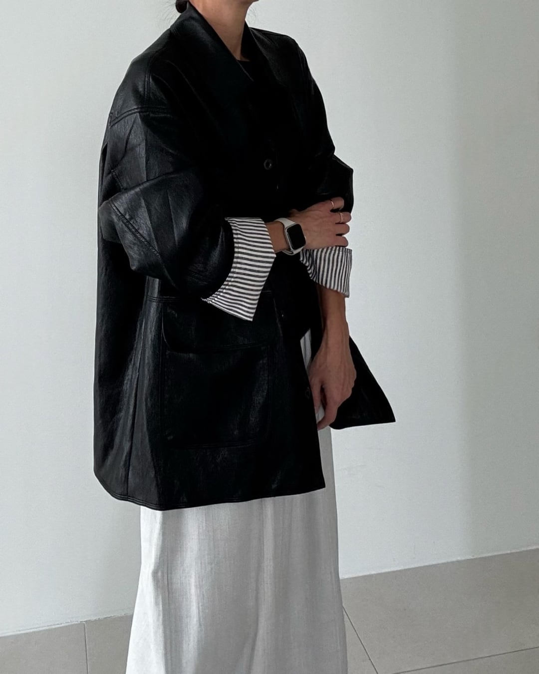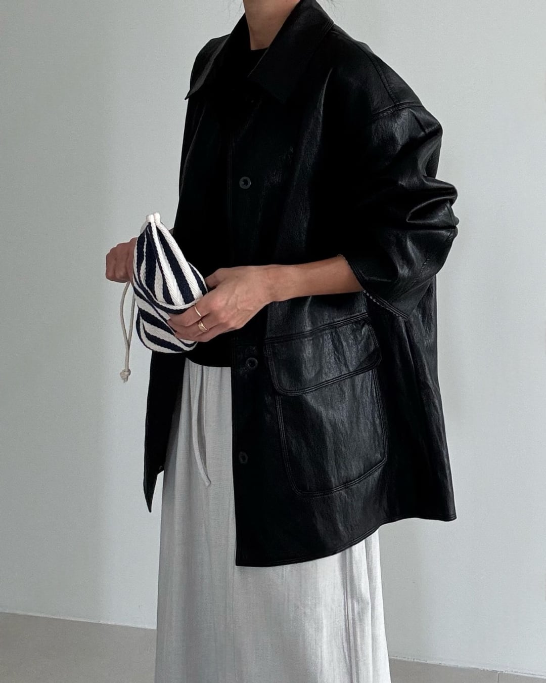 #フェイクレザー #シャツジャケット #オーバーサイズ #大人カジュアル #ライトアウター