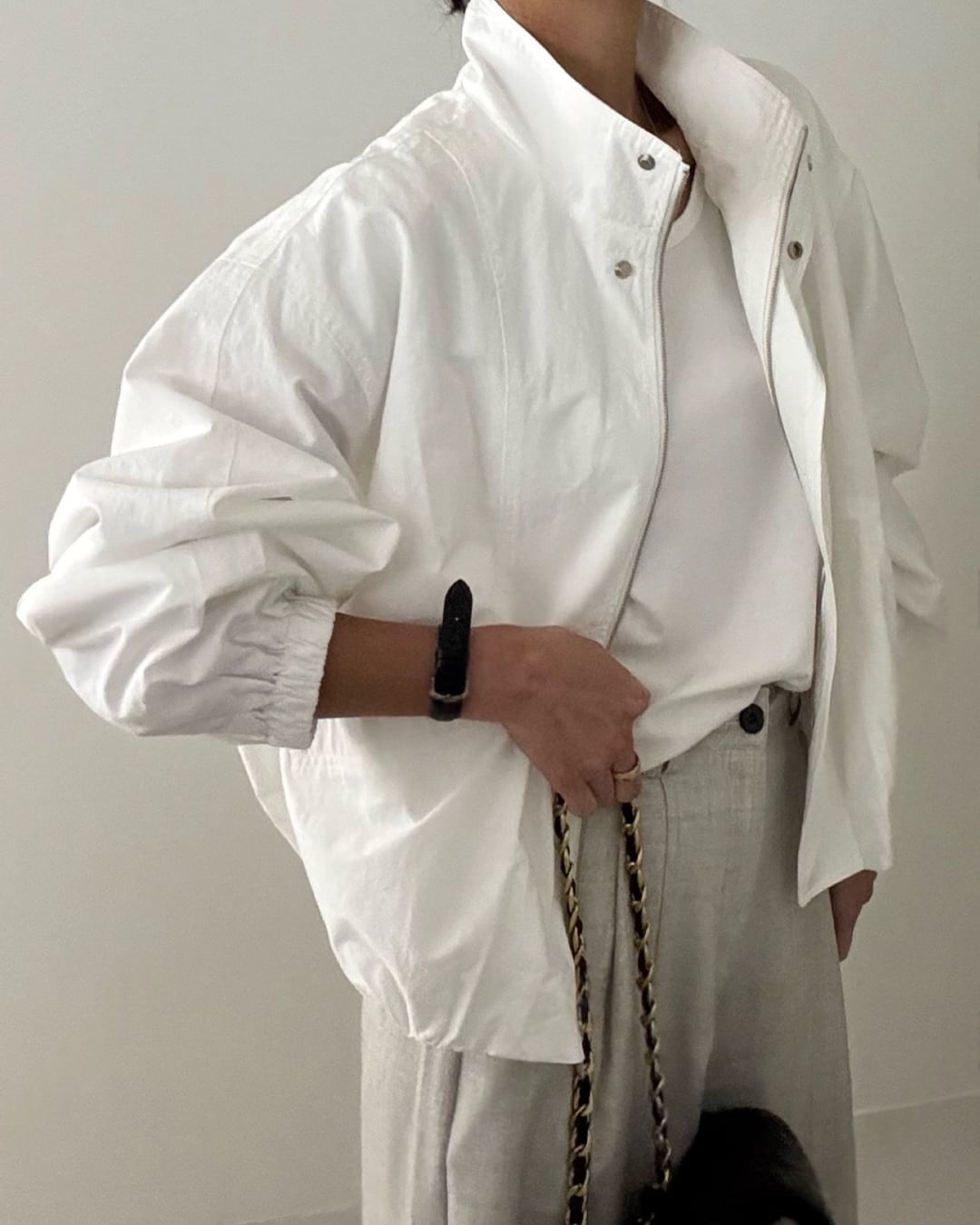 #ブルゾン #スタンドカラー #ライトアウター #大人カジュアル #羽織りアイテム