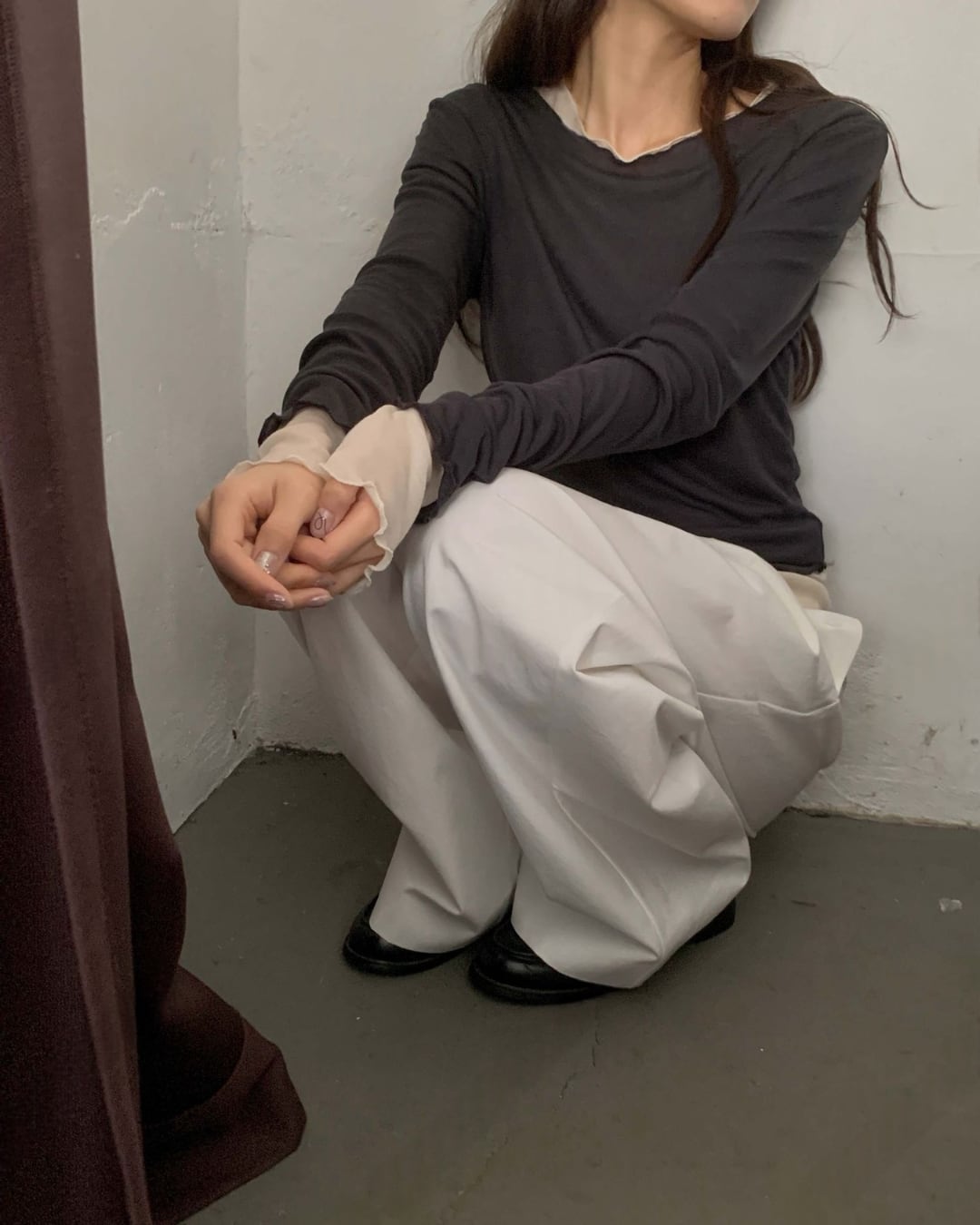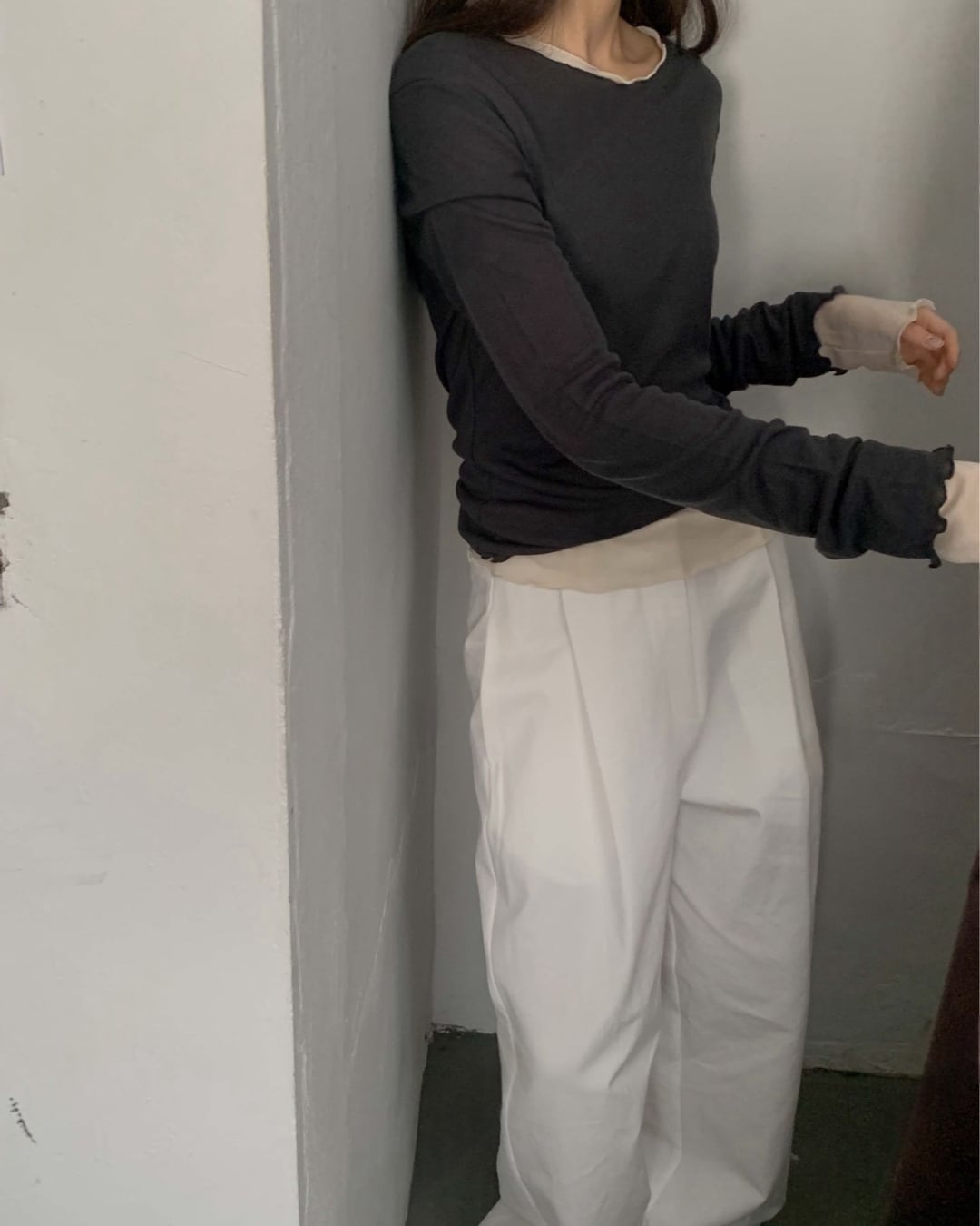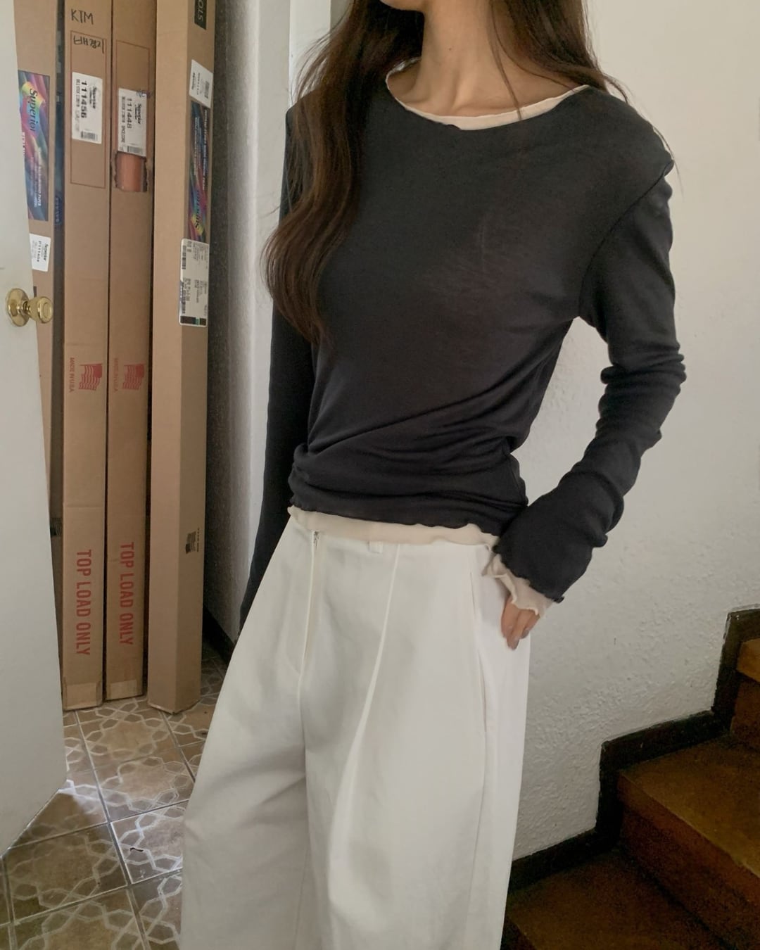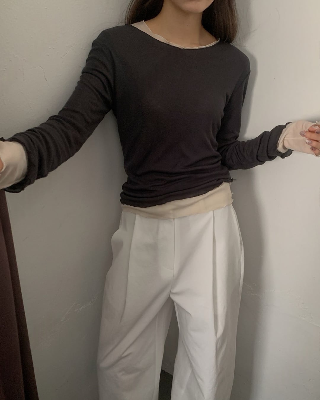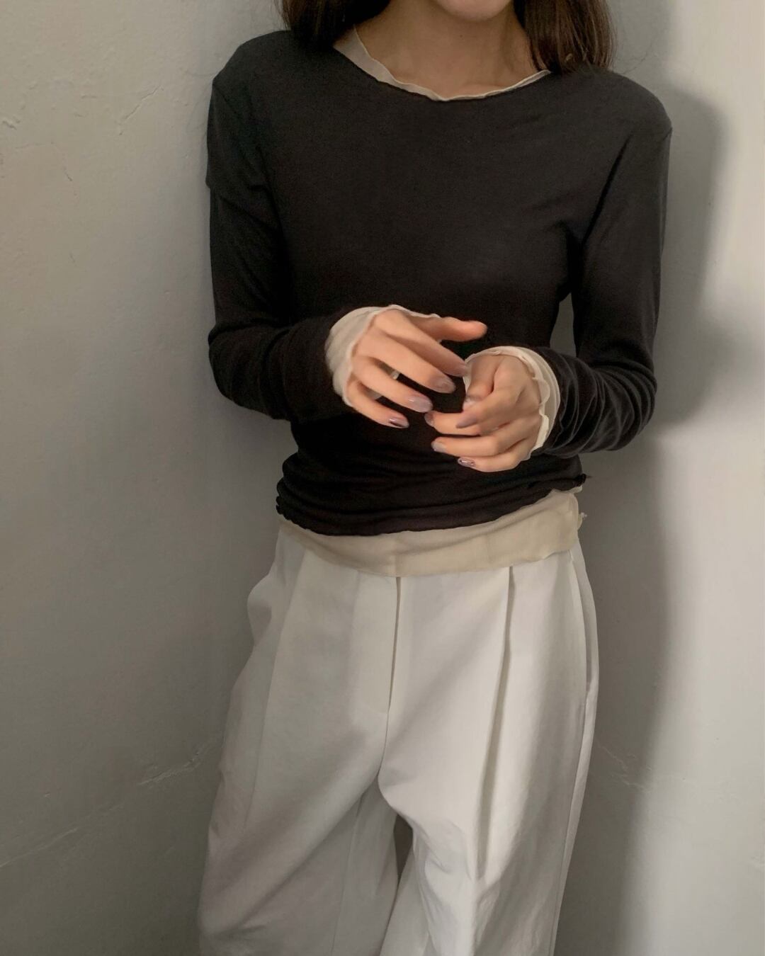 #メロウ #配色デザイン #ロングスリーブ #レイヤード風 #大人カジュアル