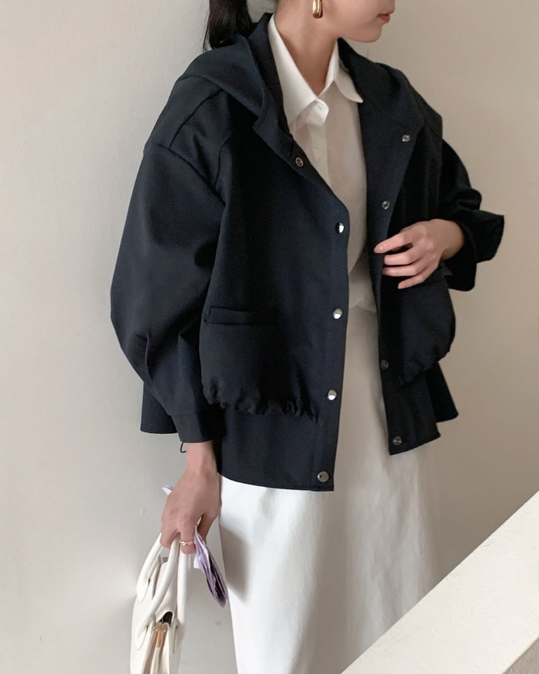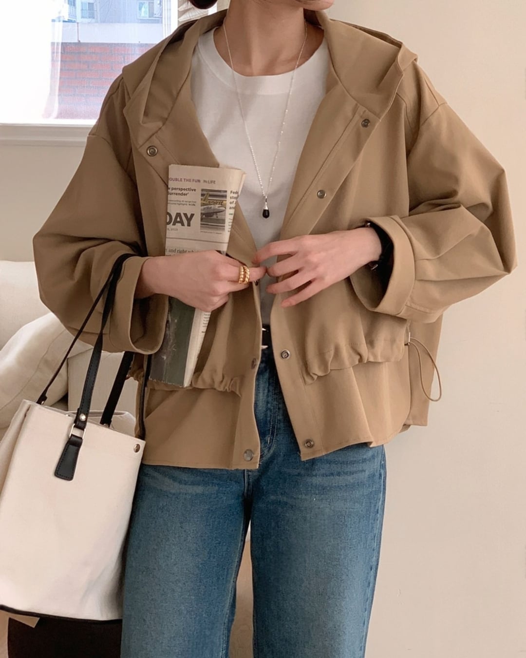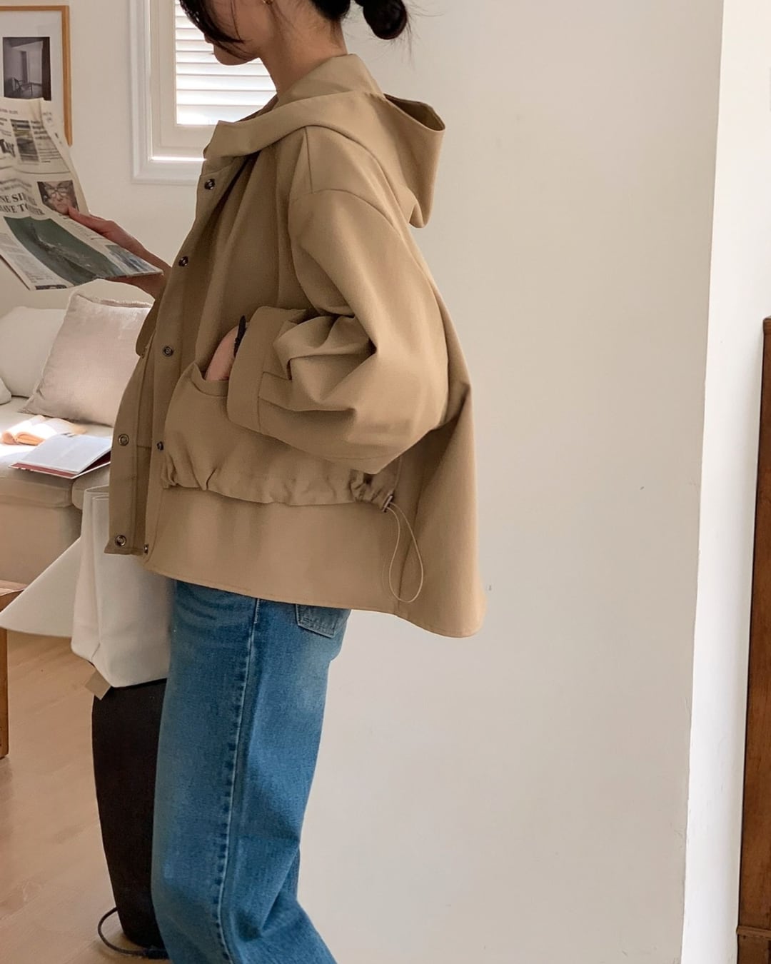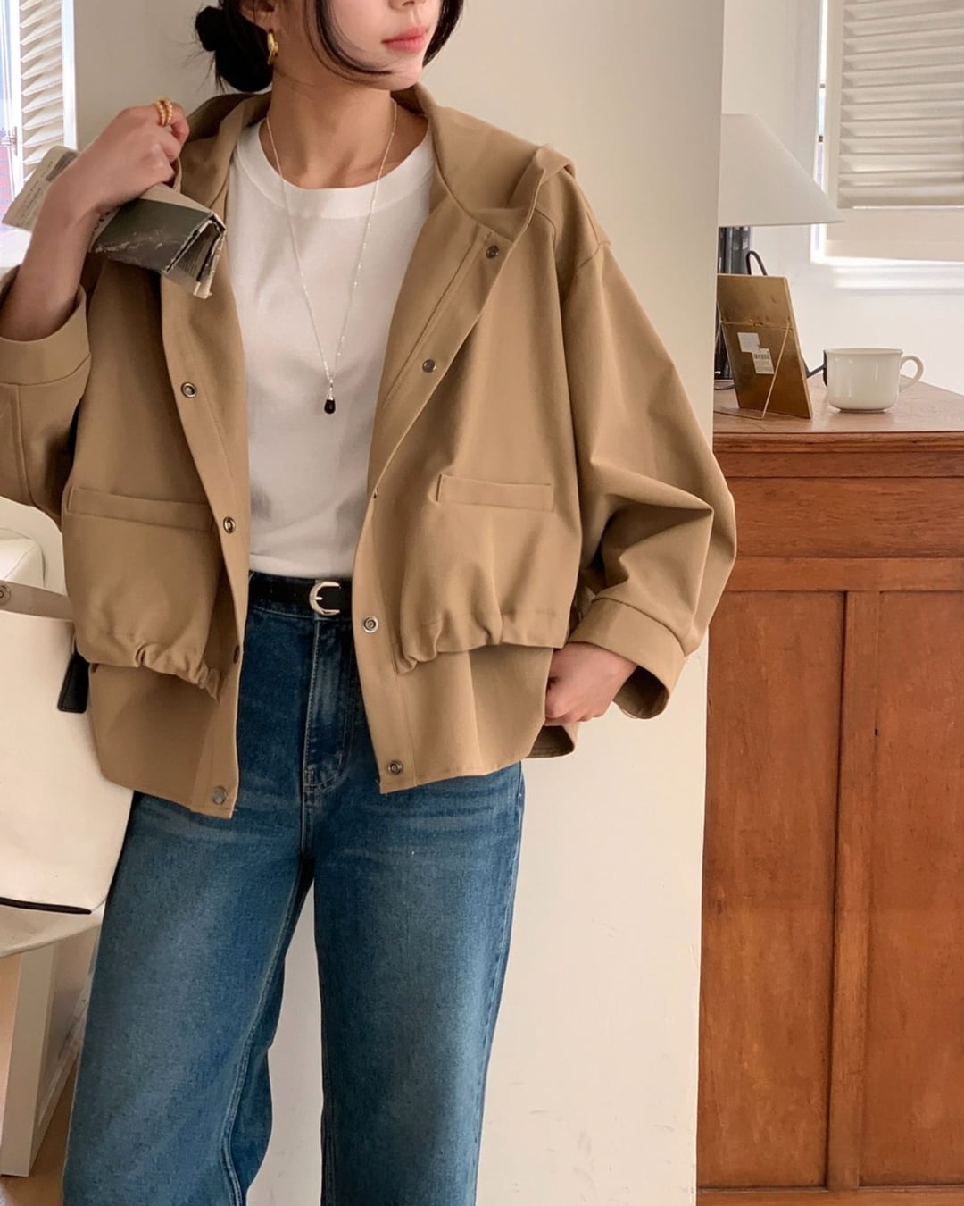 #フードジャケット #ショートジャケット #ライトアウター #大人カジュアル #シンプルアウター