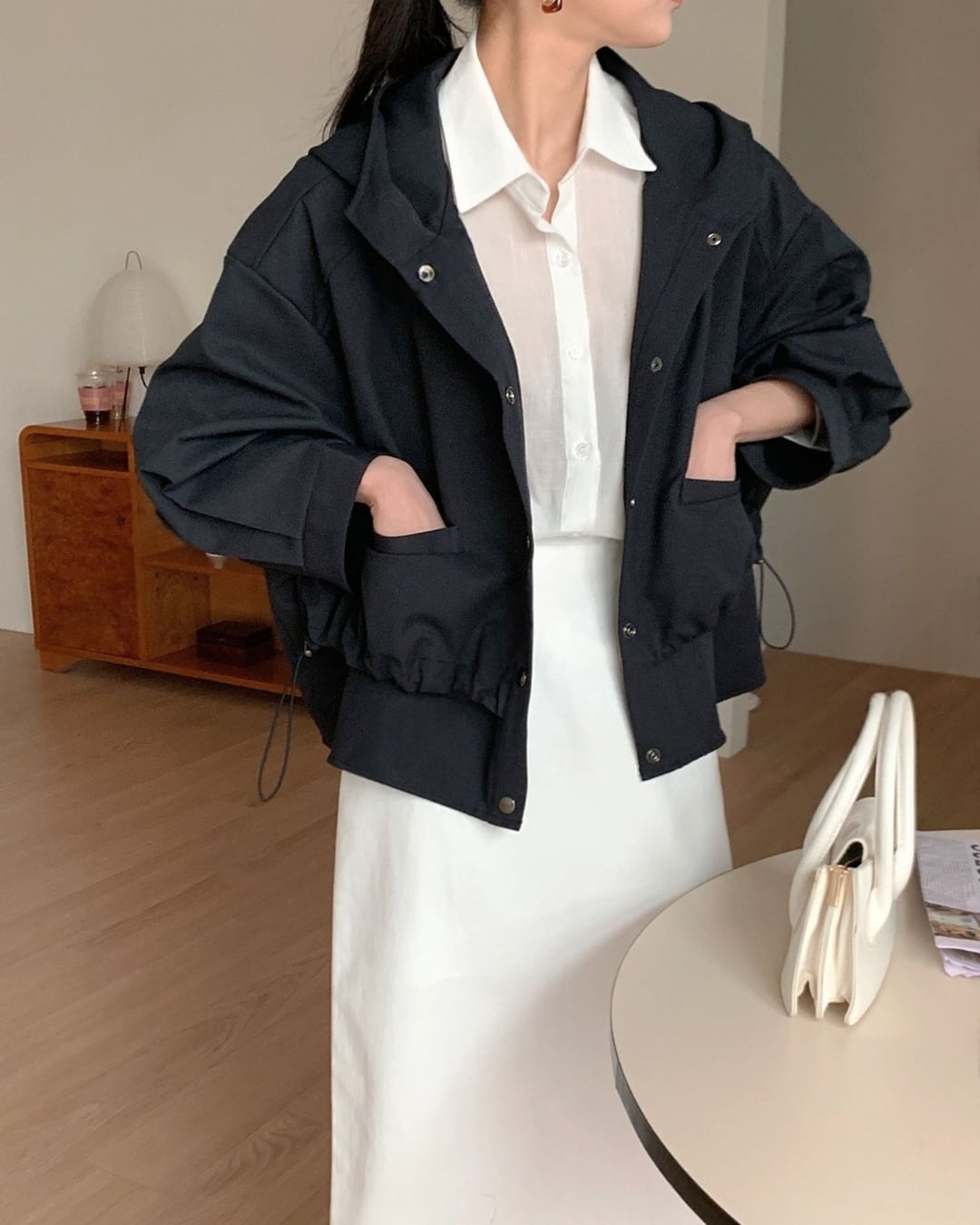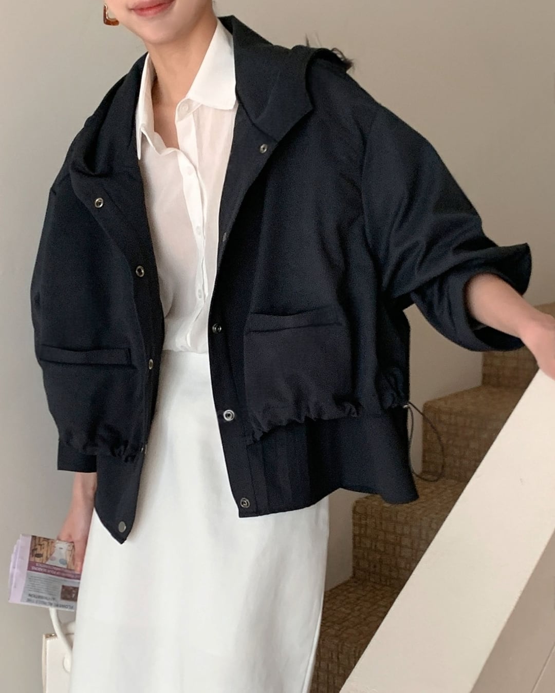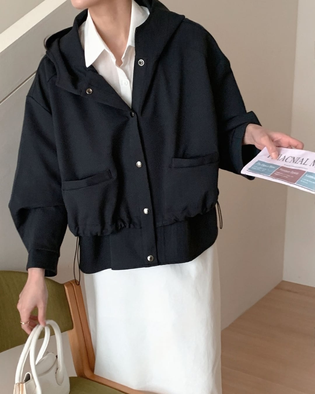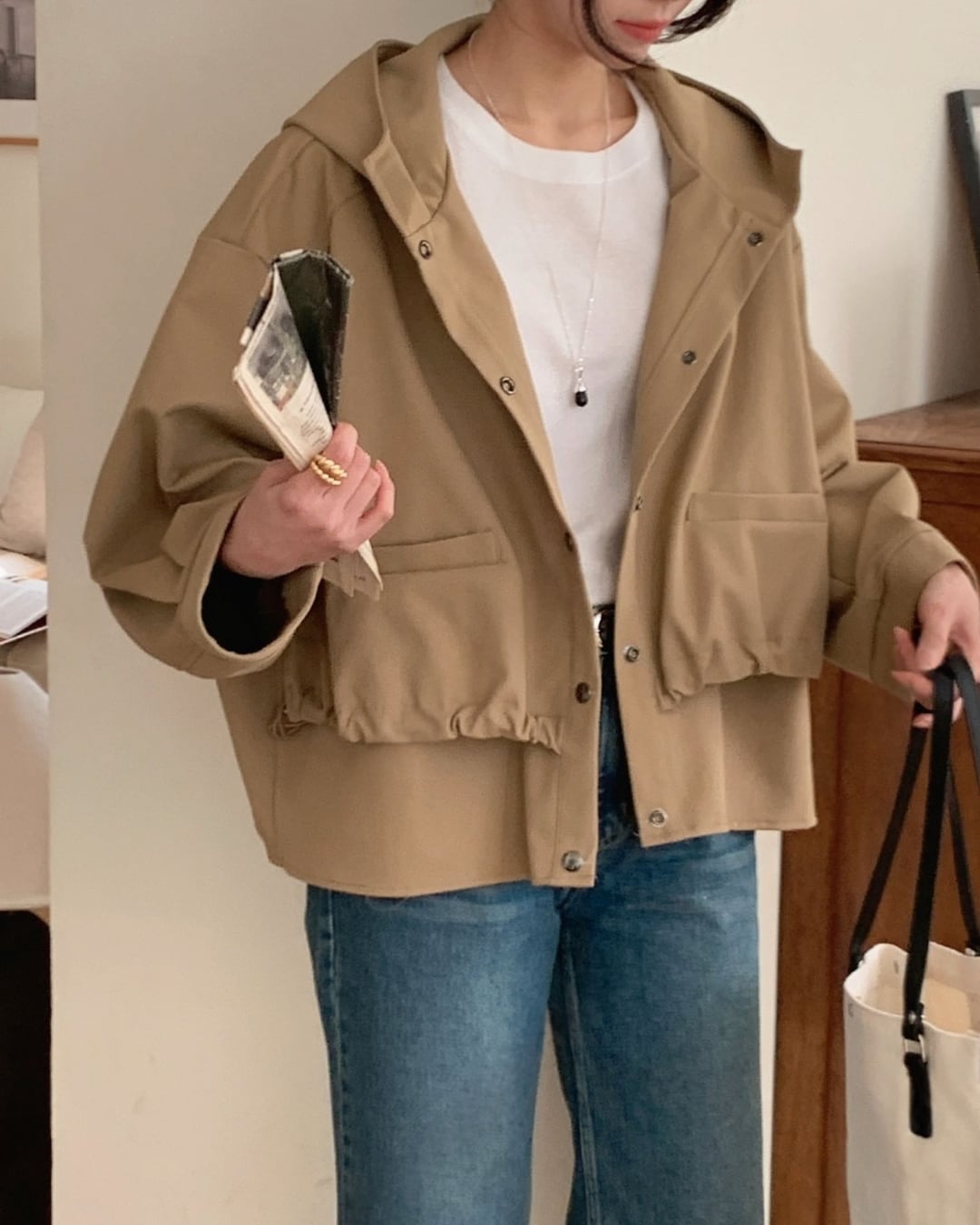 #フードジャケット #ショートジャケット #ライトアウター #大人カジュアル #シンプルアウター