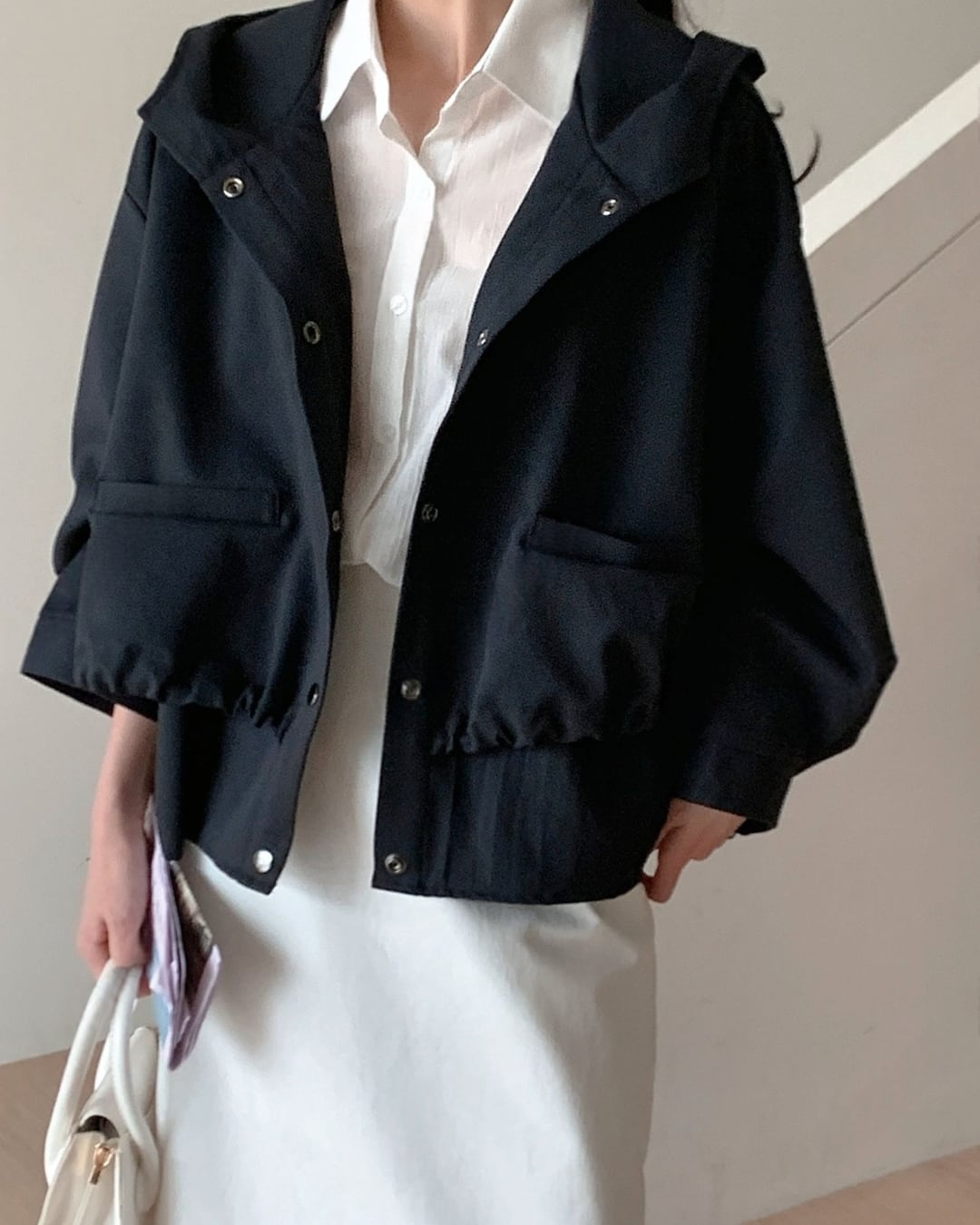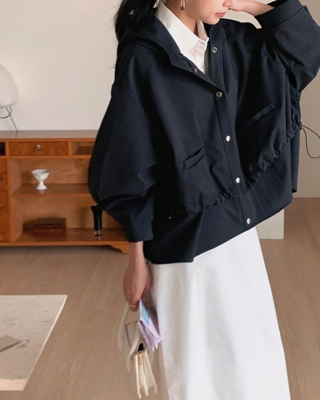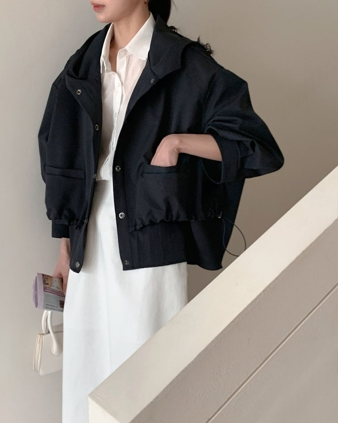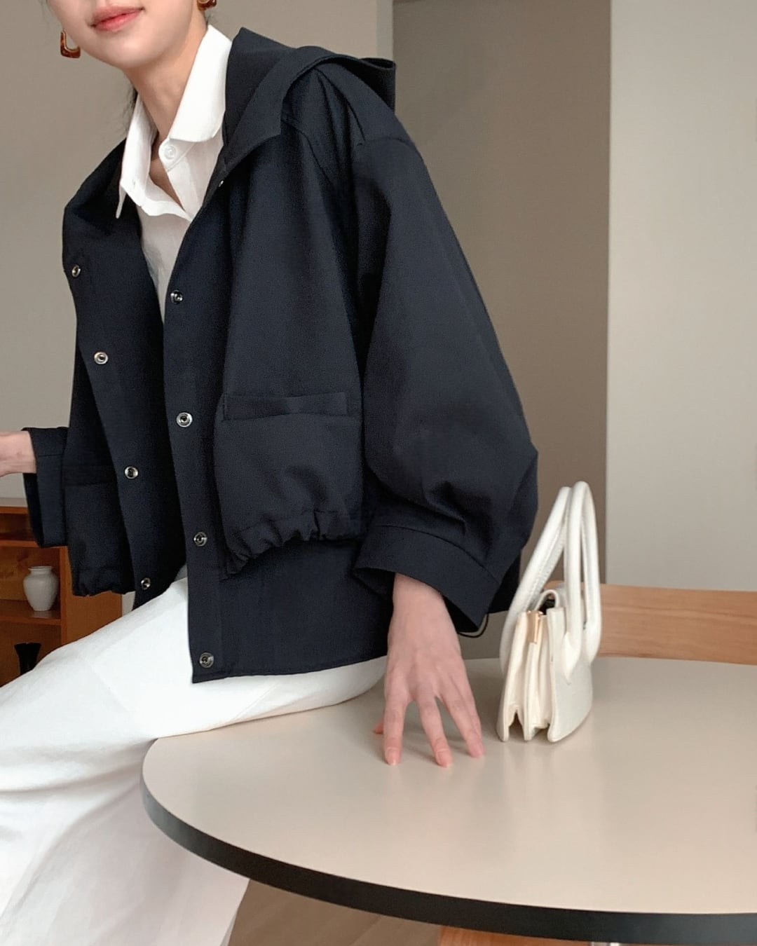 #フードジャケット #ショートジャケット #ライトアウター #大人カジュアル #シンプルアウター