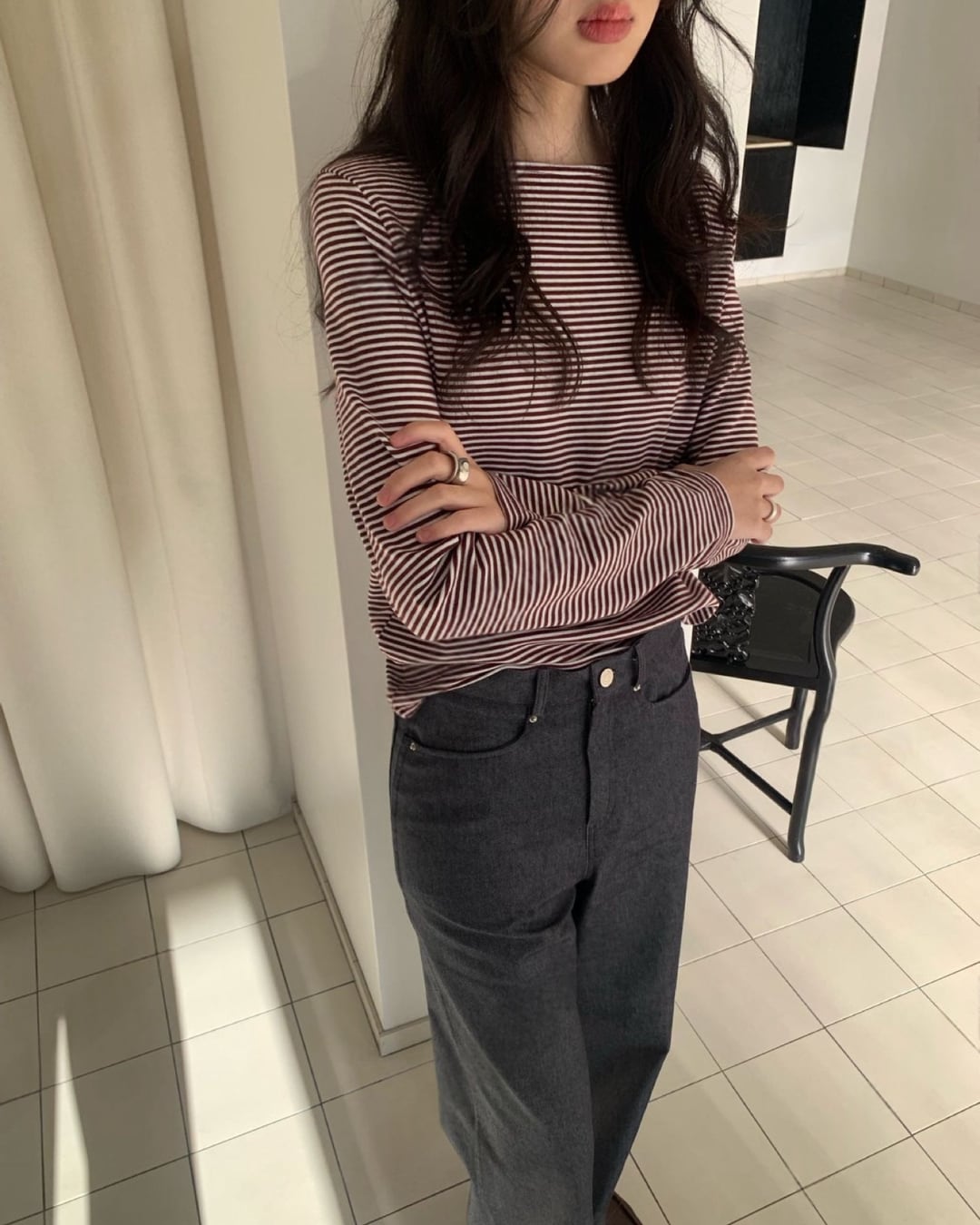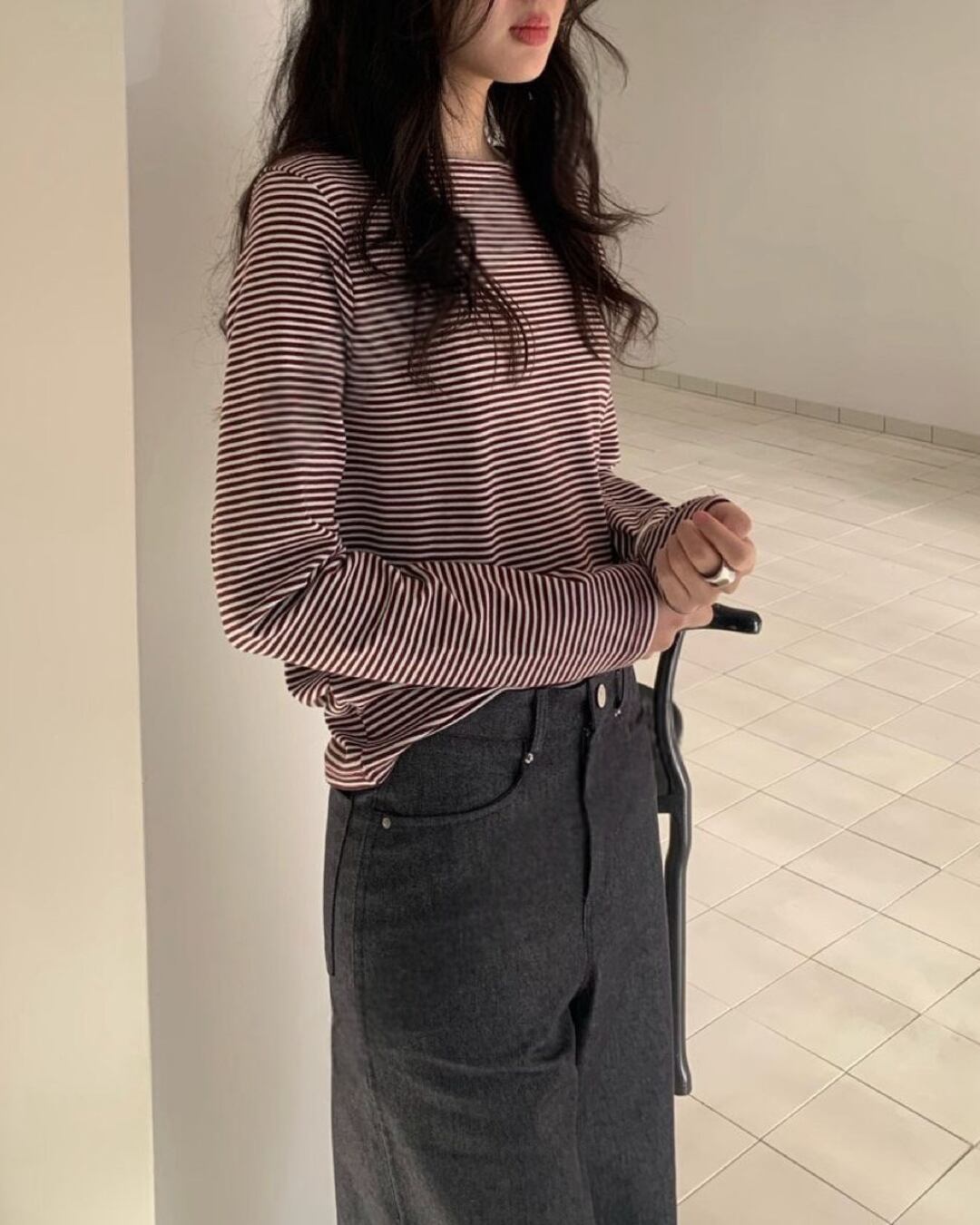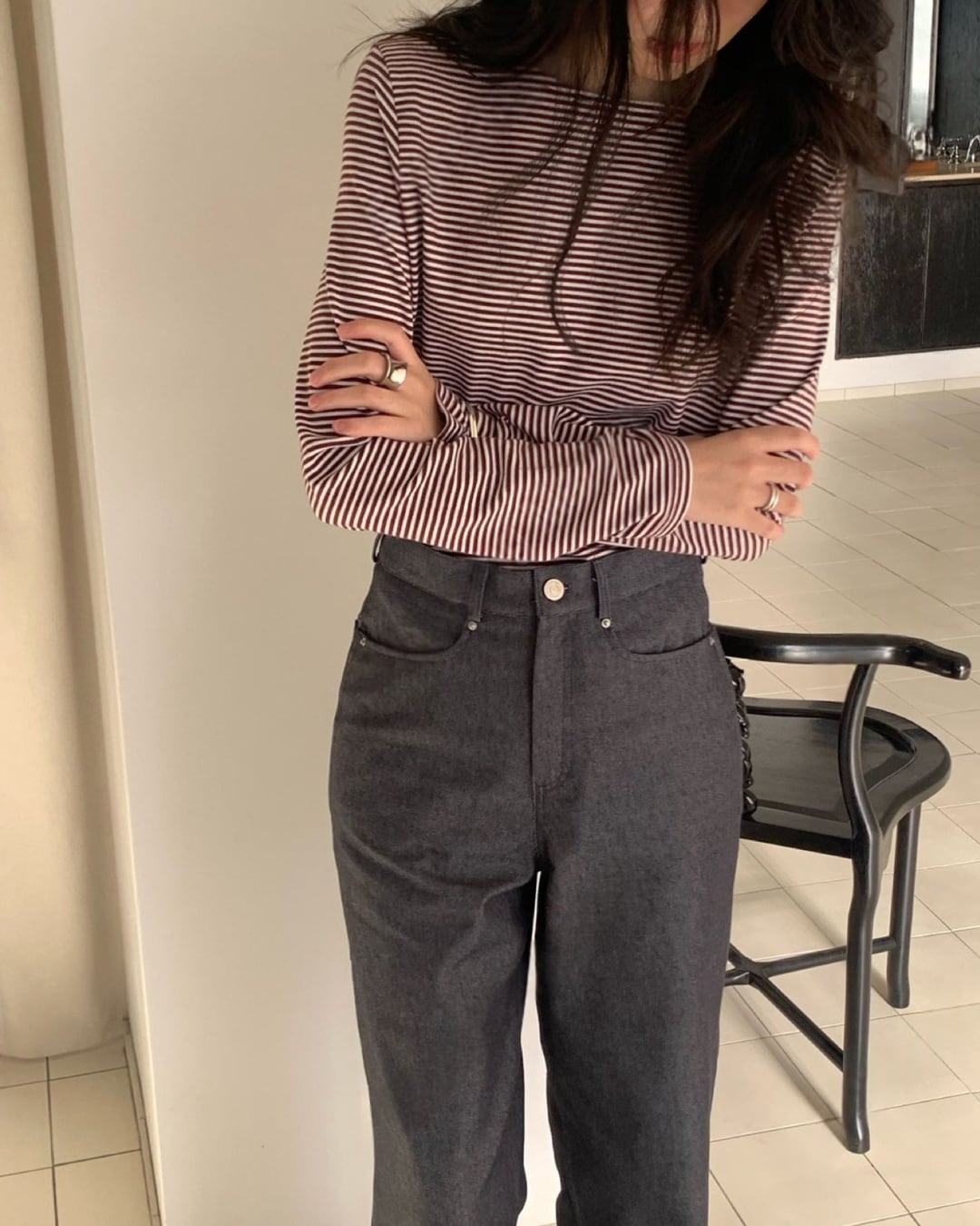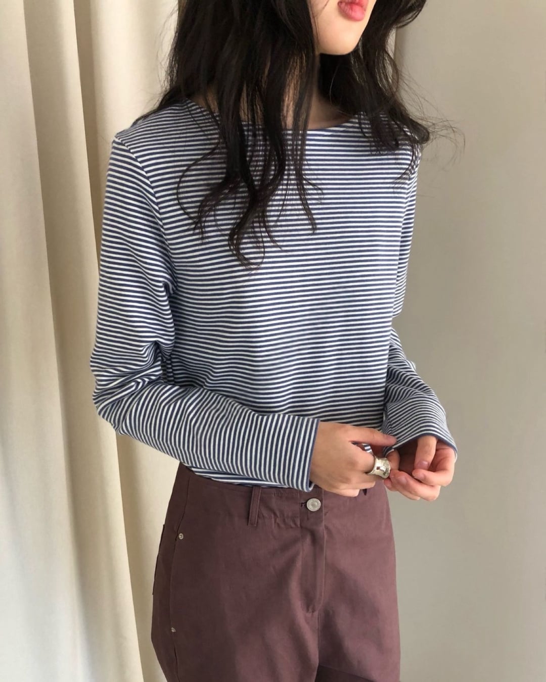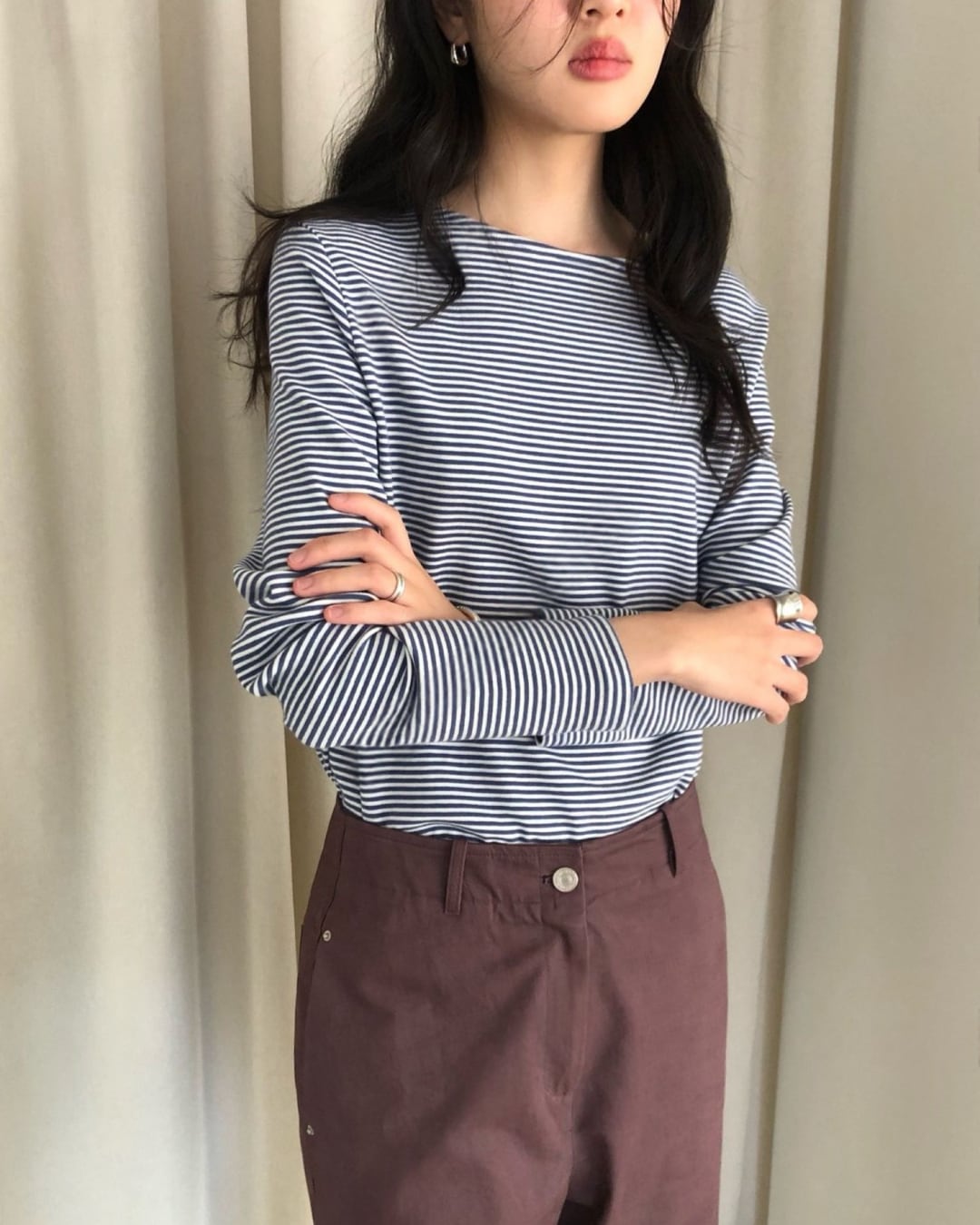 #ボーダートップス #ボーダーカットソー #長袖トップス #大人カジュアル #シンプルコーデ