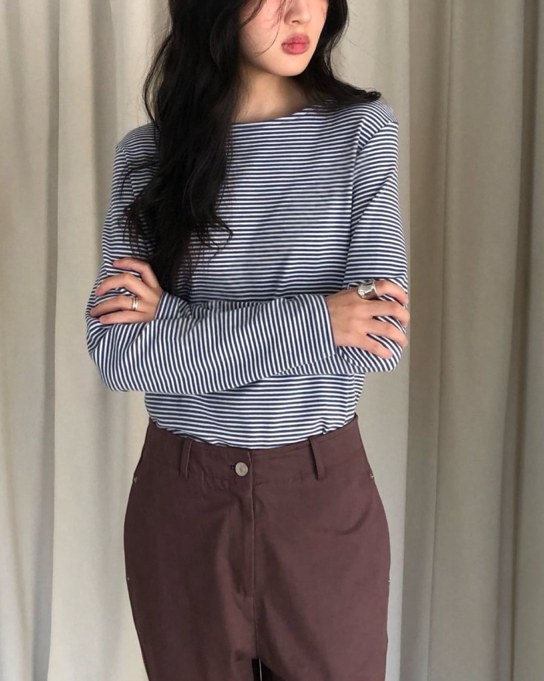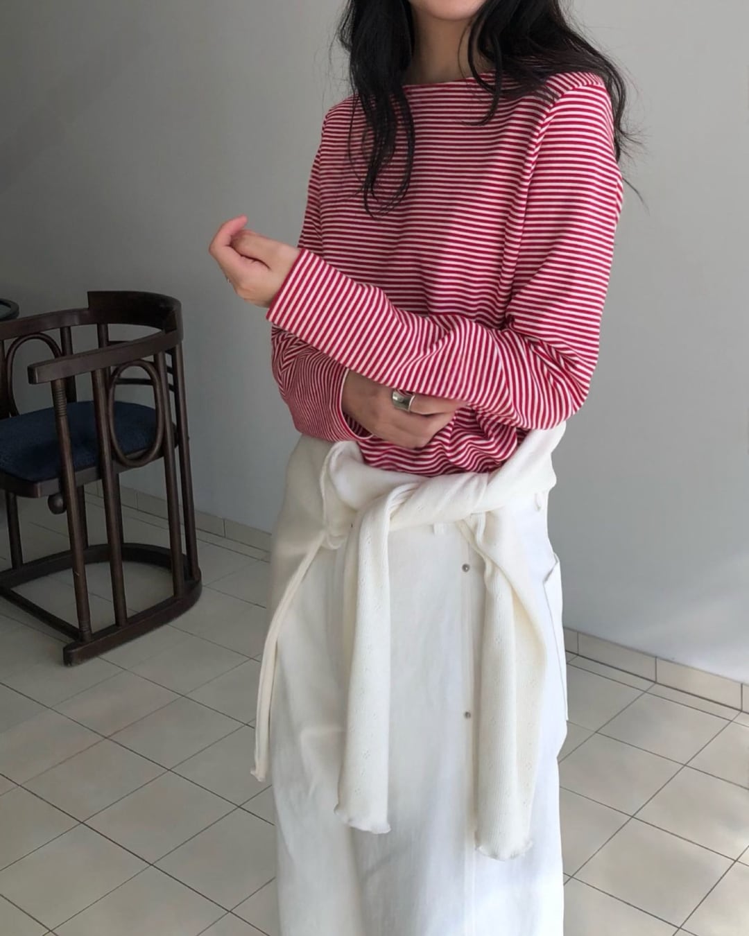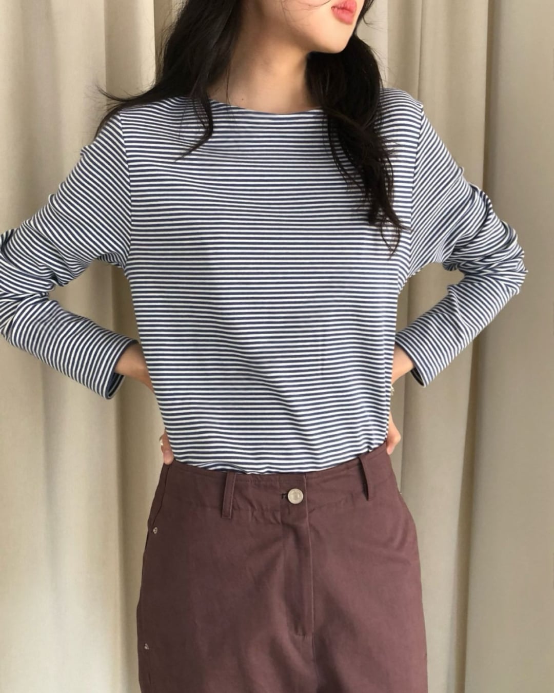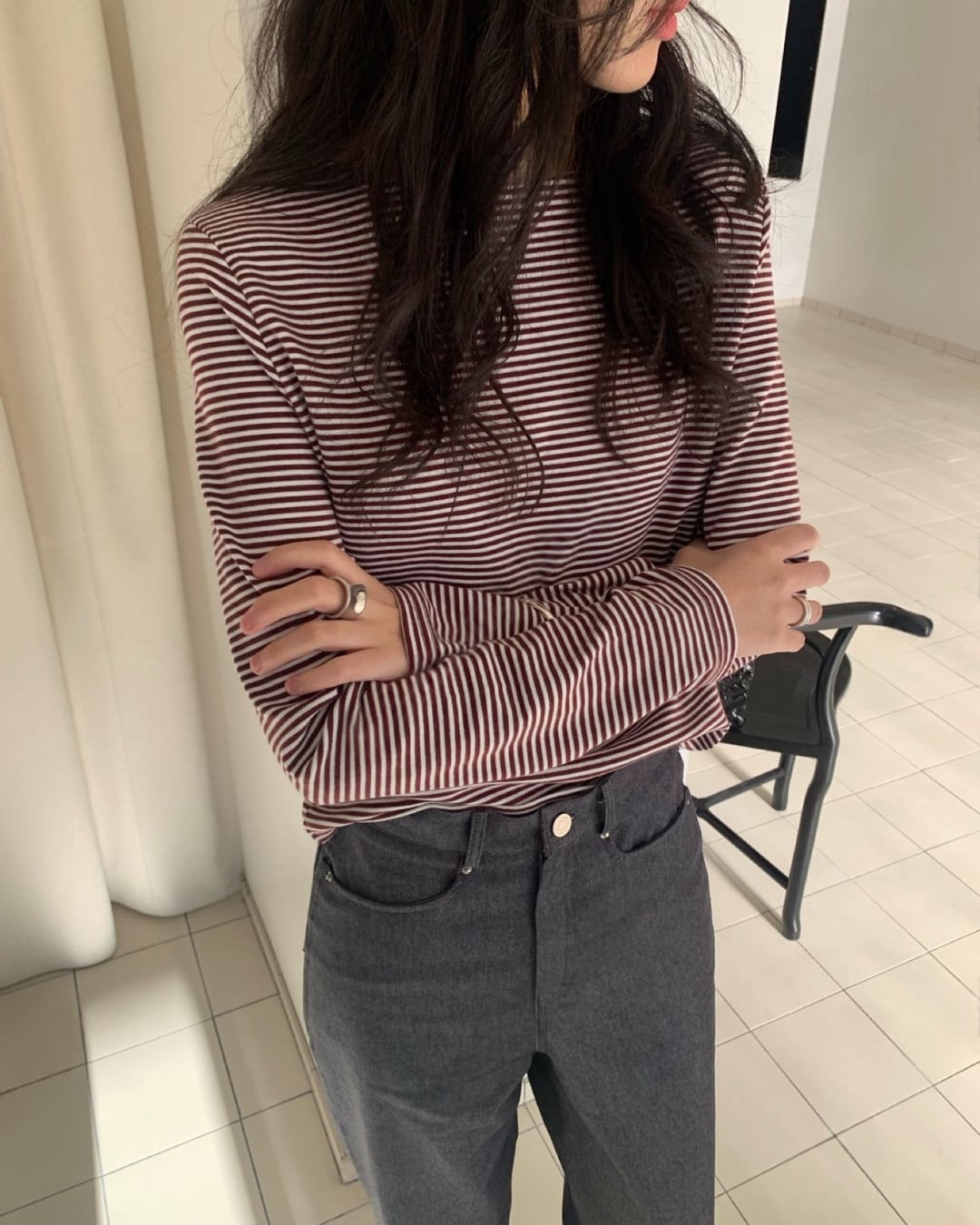 #ボーダートップス #ボーダーカットソー #長袖トップス #大人カジュアル #シンプルコーデ