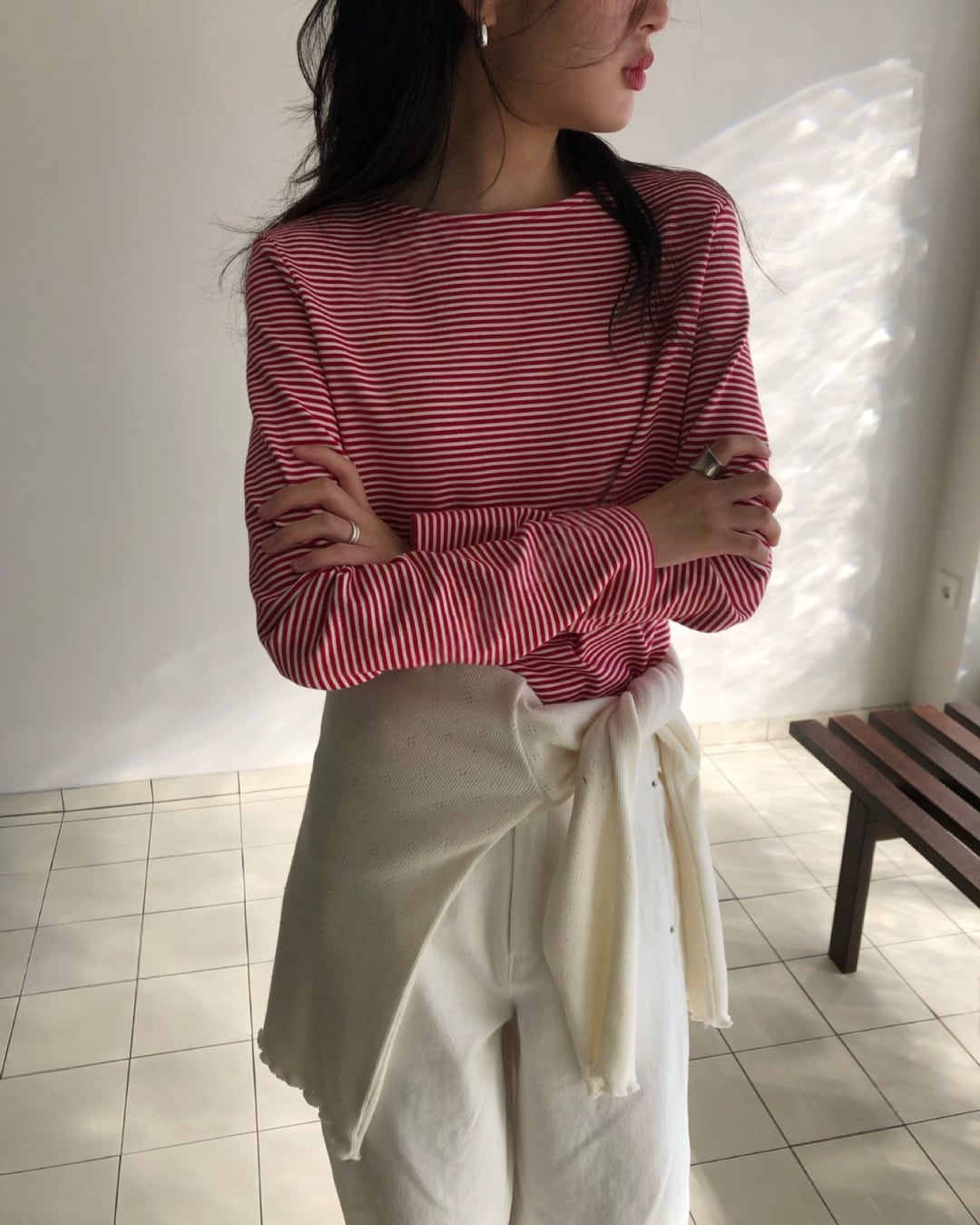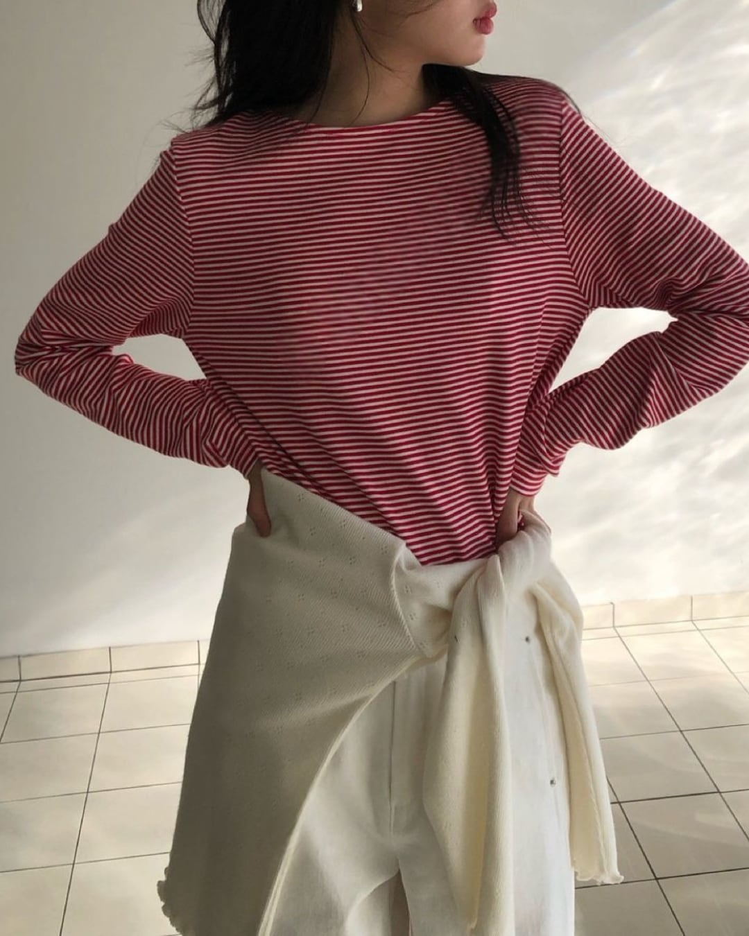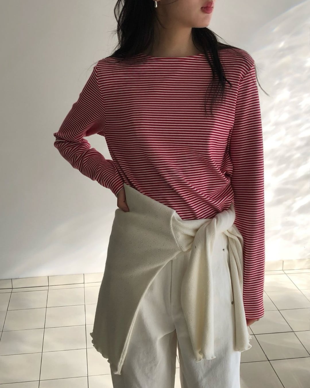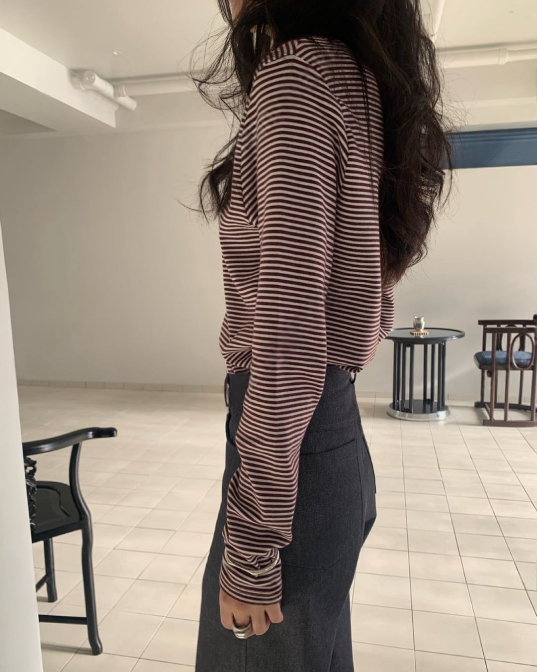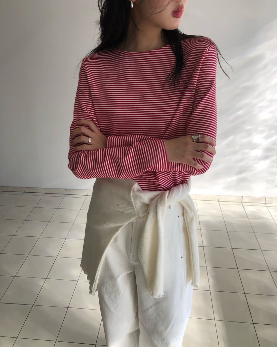 #ボーダートップス #ボーダーカットソー #長袖トップス #大人カジュアル #シンプルコーデ