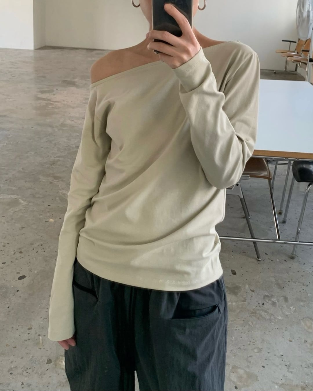 #ワンショルダー #アシンメトリー #長袖トップス #シンプルコーデ #大人カジュアル