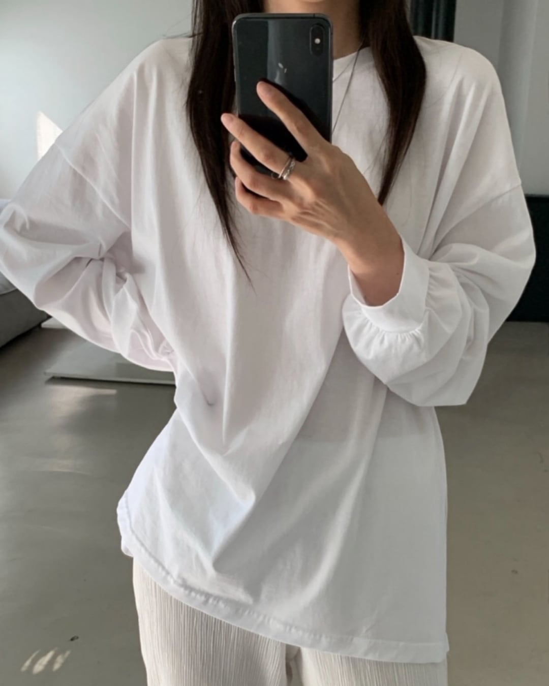ミニマルで洗練されたデザインのラウンドネックカットソー。無駄のないシルエットで、どんなボトムスとも相性抜群の万能アイテムです。柔らかなコットン素材で着心地も良く、デイリー使いにぴったり。1枚でさらっと着るのはもちろん、レイヤードスタイルにも活躍します。