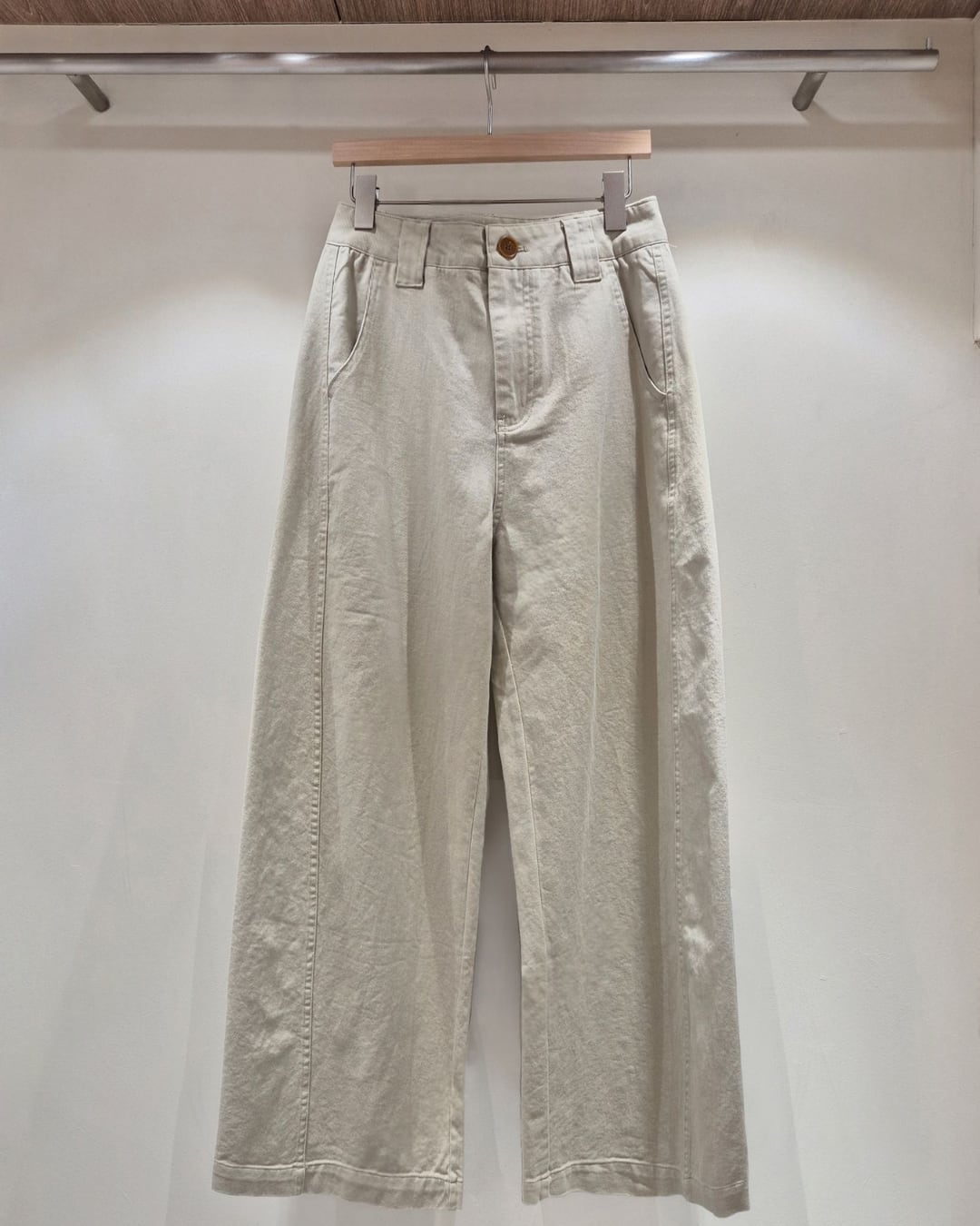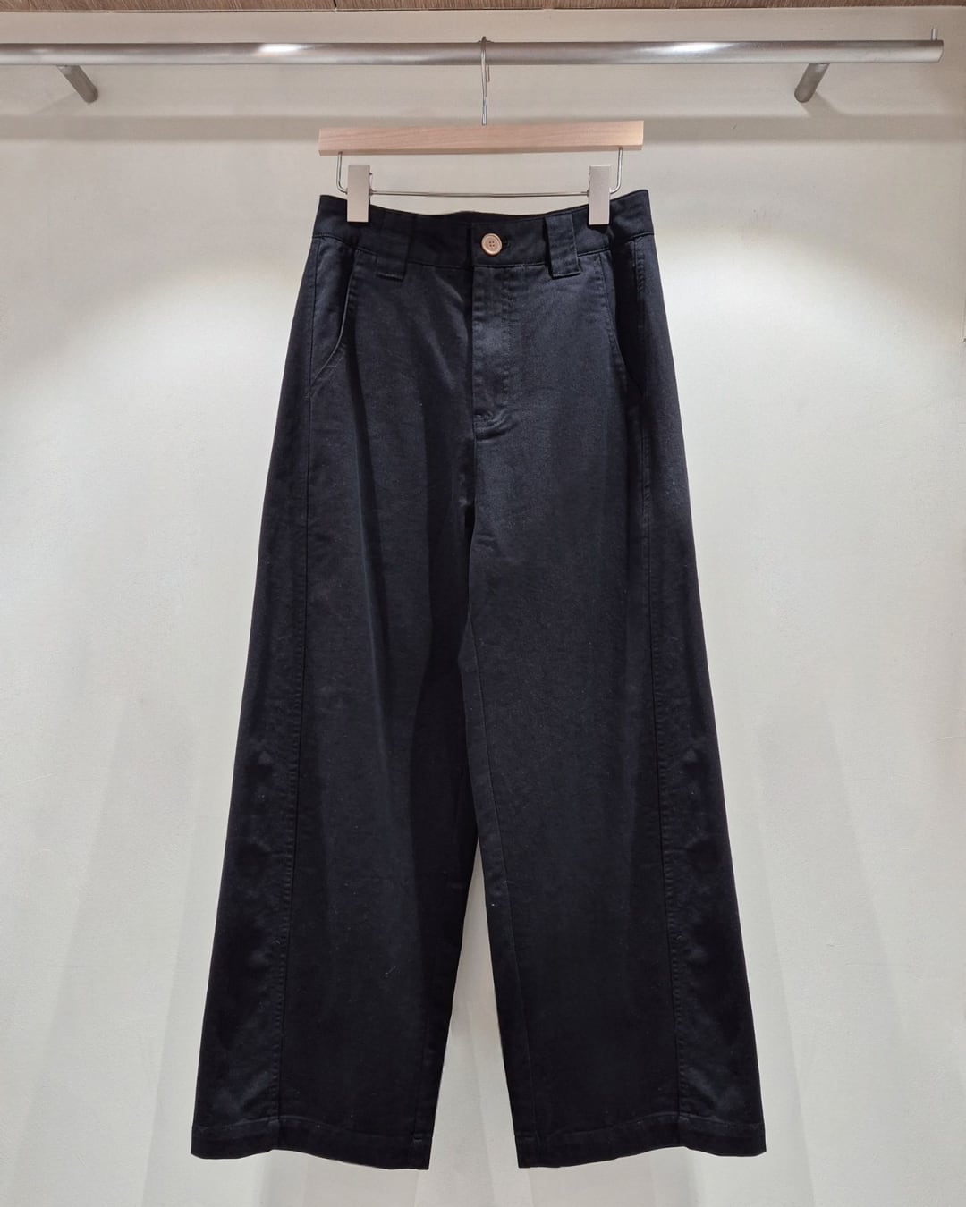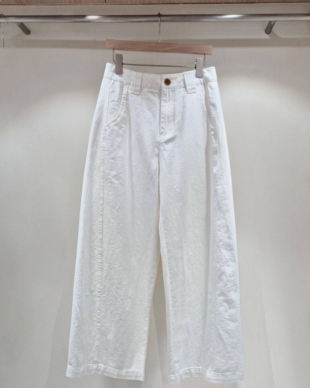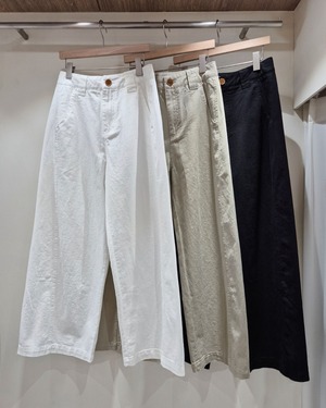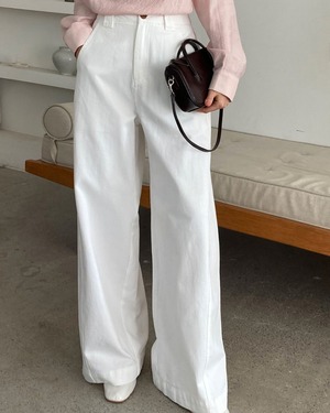 すっきりとしたハイウエストデザインで脚長効果を叶えるワイドパンツ。程よくゆとりのあるストレートシルエットが、リラックス感と上品さを両立します。コットン素材でさらっとした履き心地が魅力。シンプルなデザインで、カジュアルからきれいめまで幅広いスタイリングに活躍する万能アイテムです。