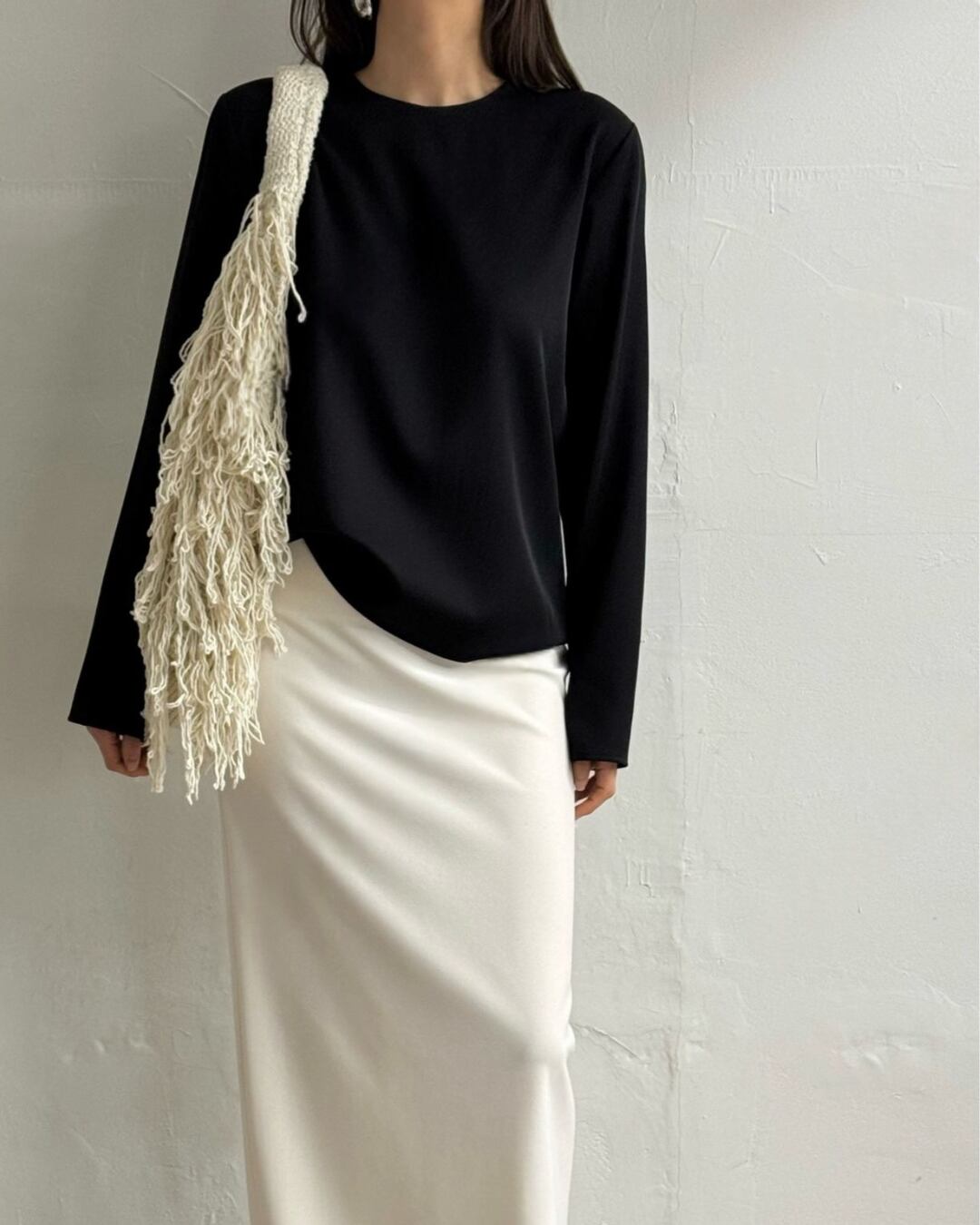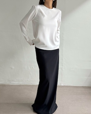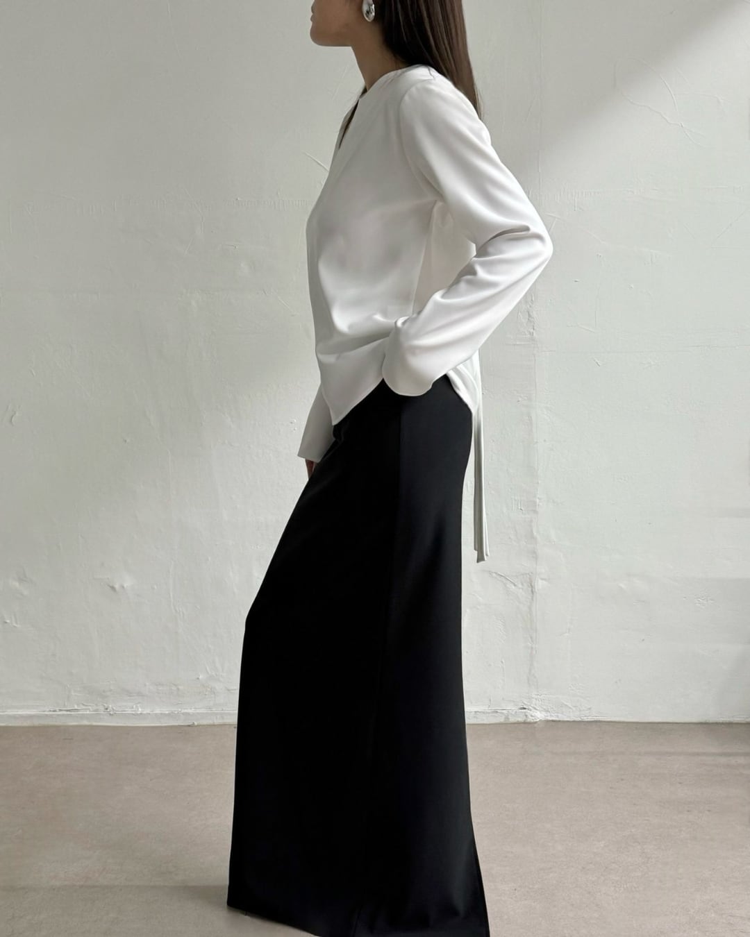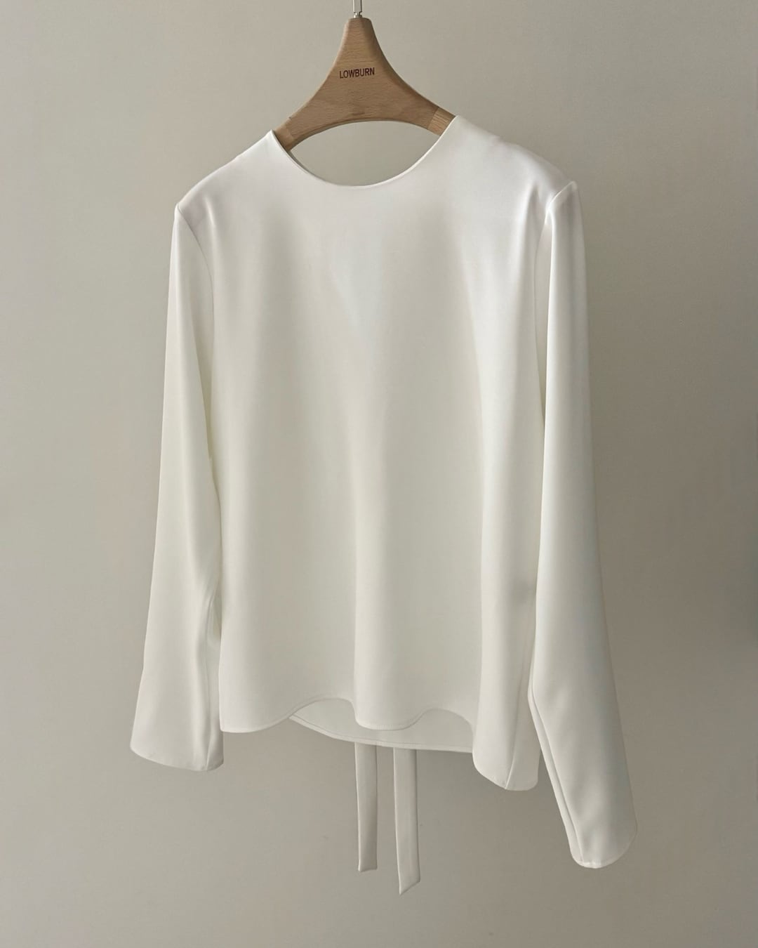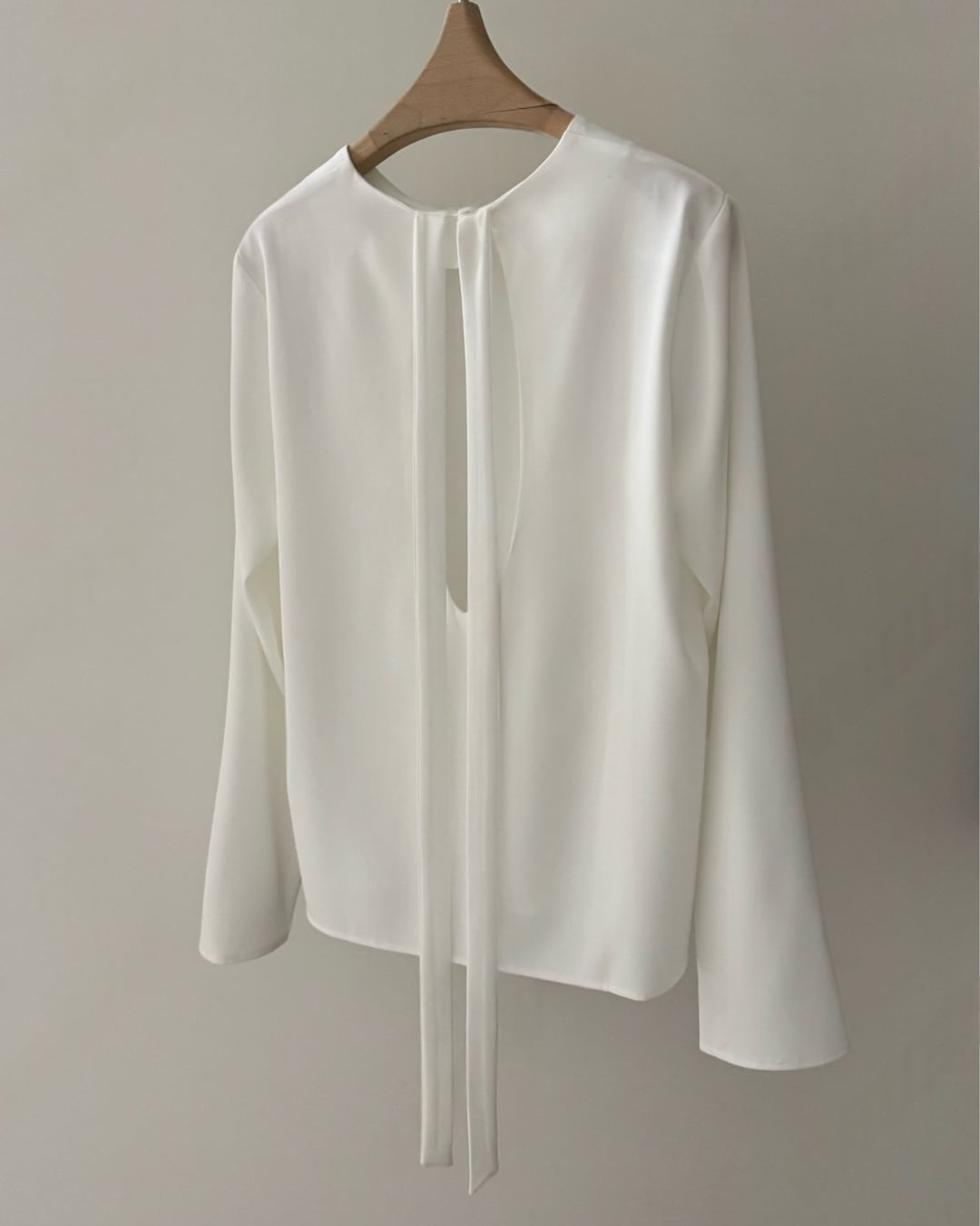 大胆なバックオープンデザインとロングリボンが印象的なブラウス。後ろ姿まで美しく演出し、シンプルながらも洗練された大人の雰囲気を引き立てます。さらりとした素材感で着心地も良く、スカートやパンツと合わせるだけで上品なスタイリングが完成。特別な日からデイリーまで幅広く活躍する一枚です。
