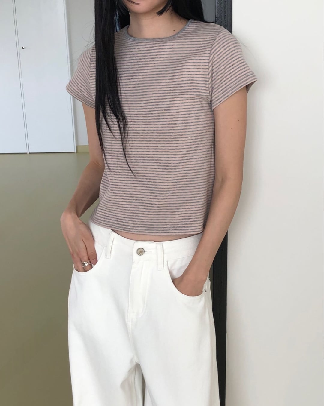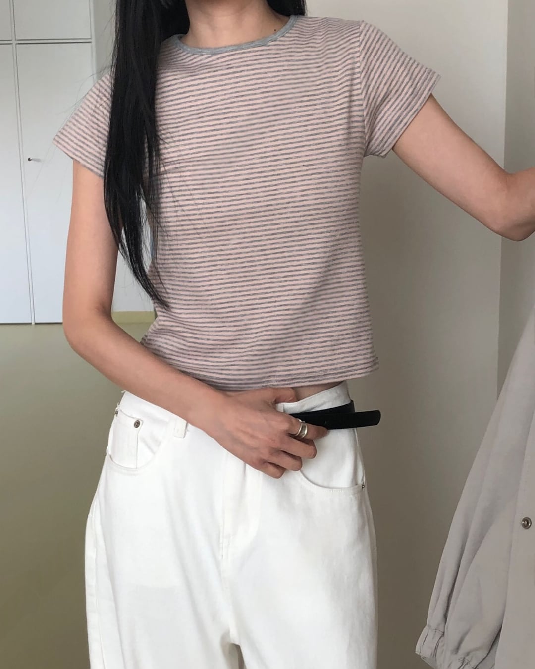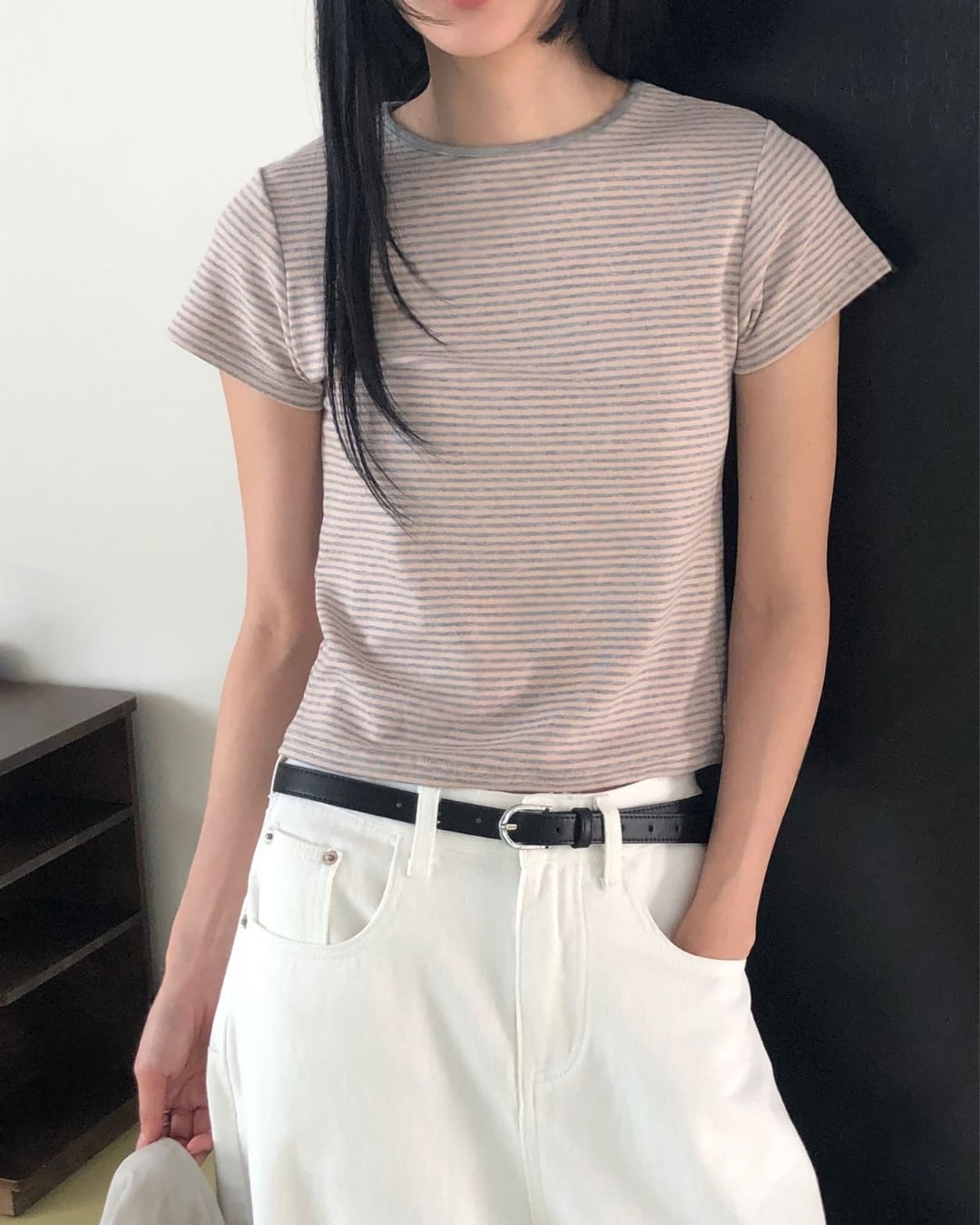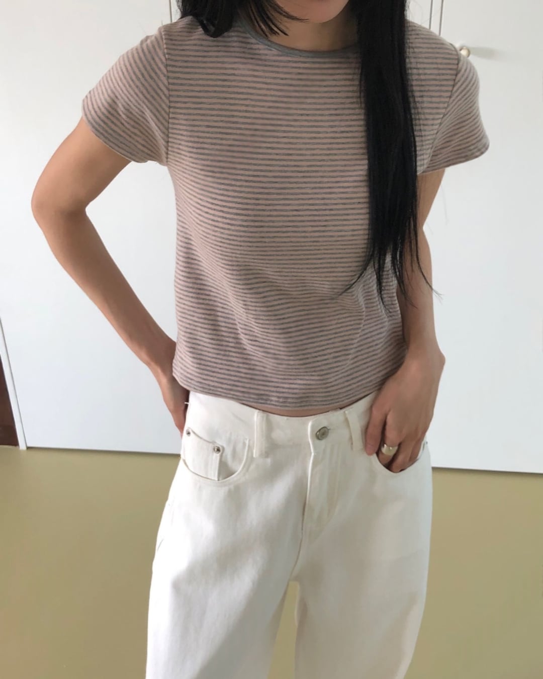 #ボーダーTシャツ #コンパクトトップス #半袖トップス #大人カジュアル #着回しコーデ