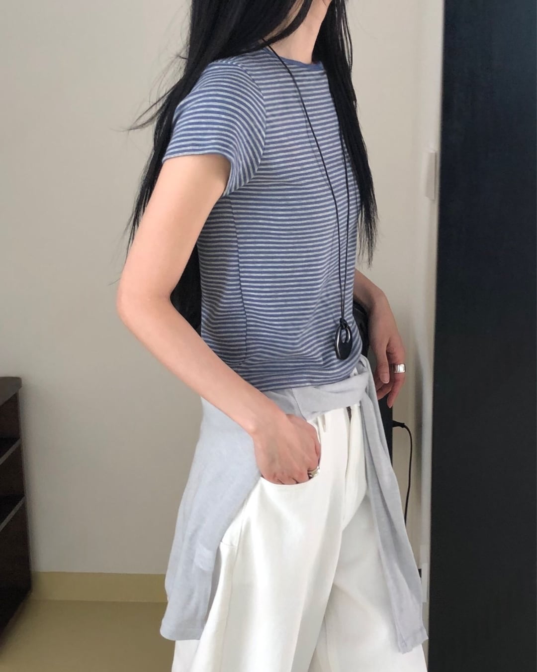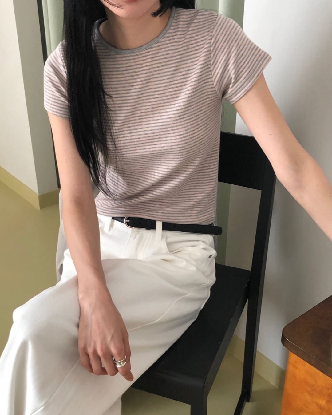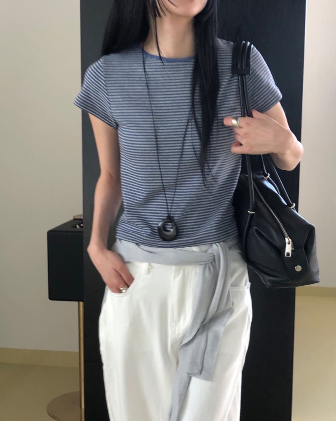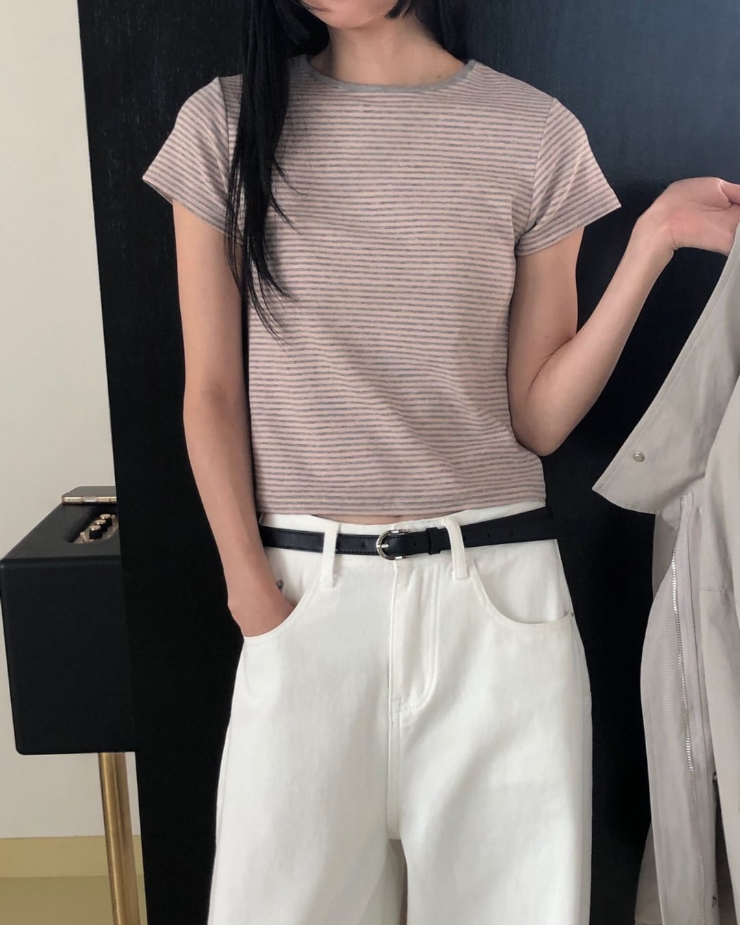 #ボーダーTシャツ #コンパクトトップス #半袖トップス #大人カジュアル #着回しコーデ