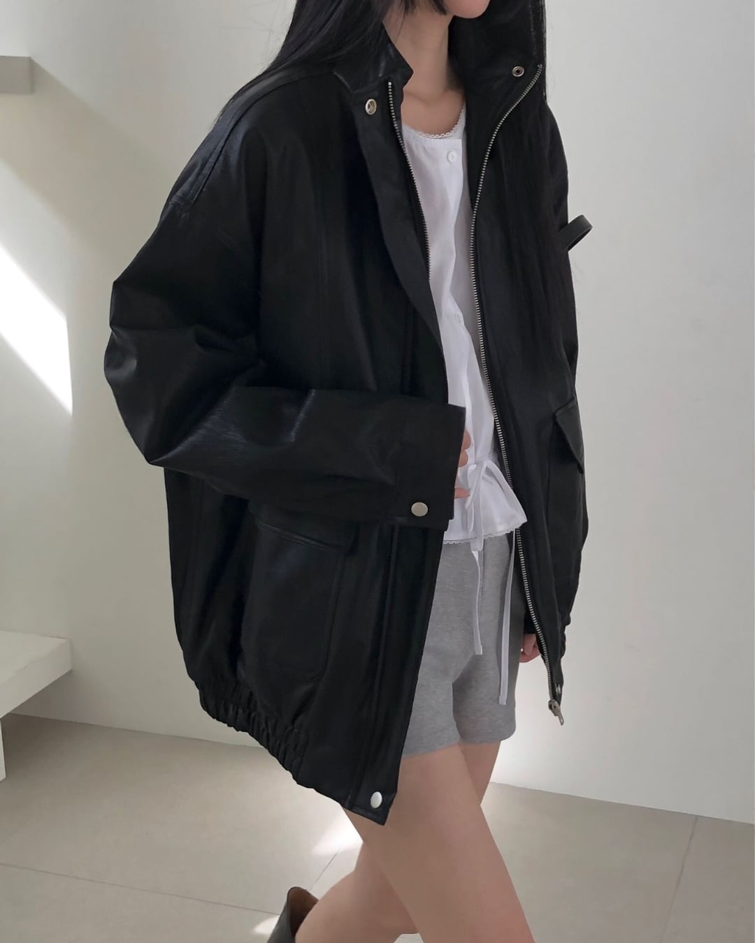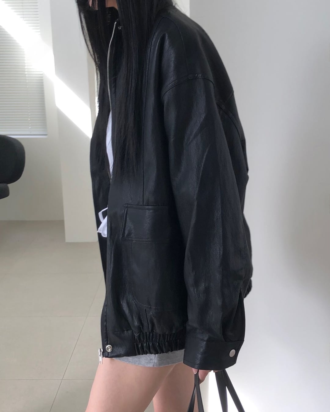 オーバーサイズフェイクレザージャケット