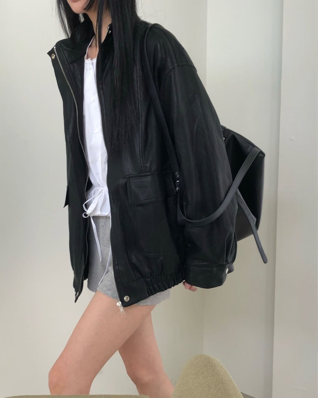 #レザージャケット #フェイクレザー #オーバーサイズ #大人カジュアル #モードコーデ