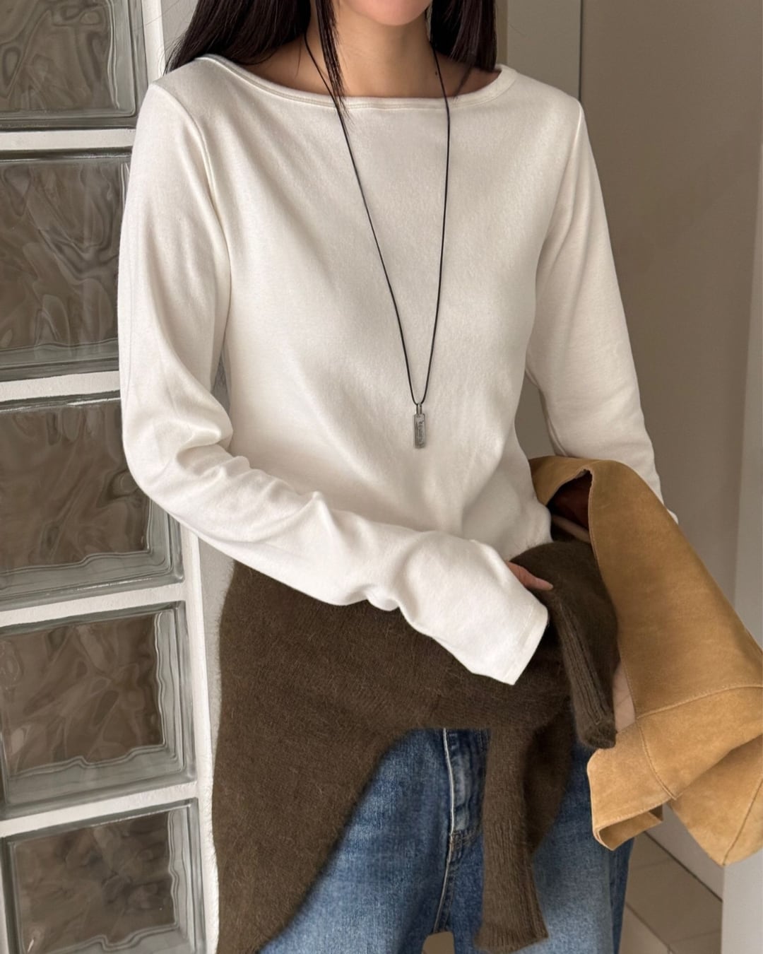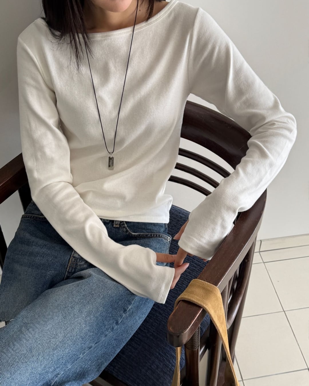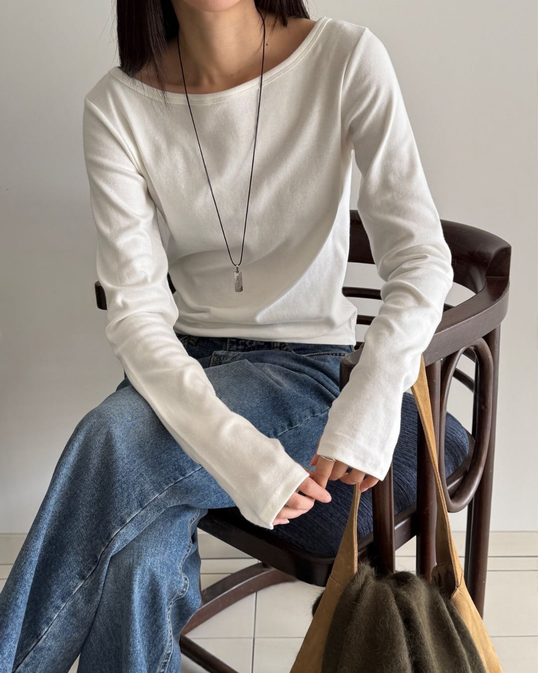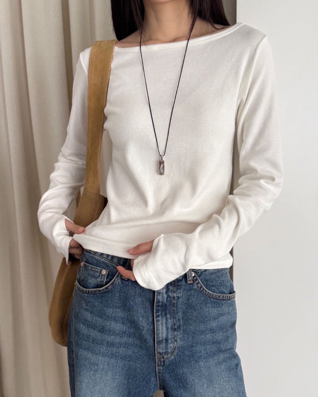 #ロングスリーブ #ボートネック #シンプルトップス #大人カジュアル #着回しアイテム