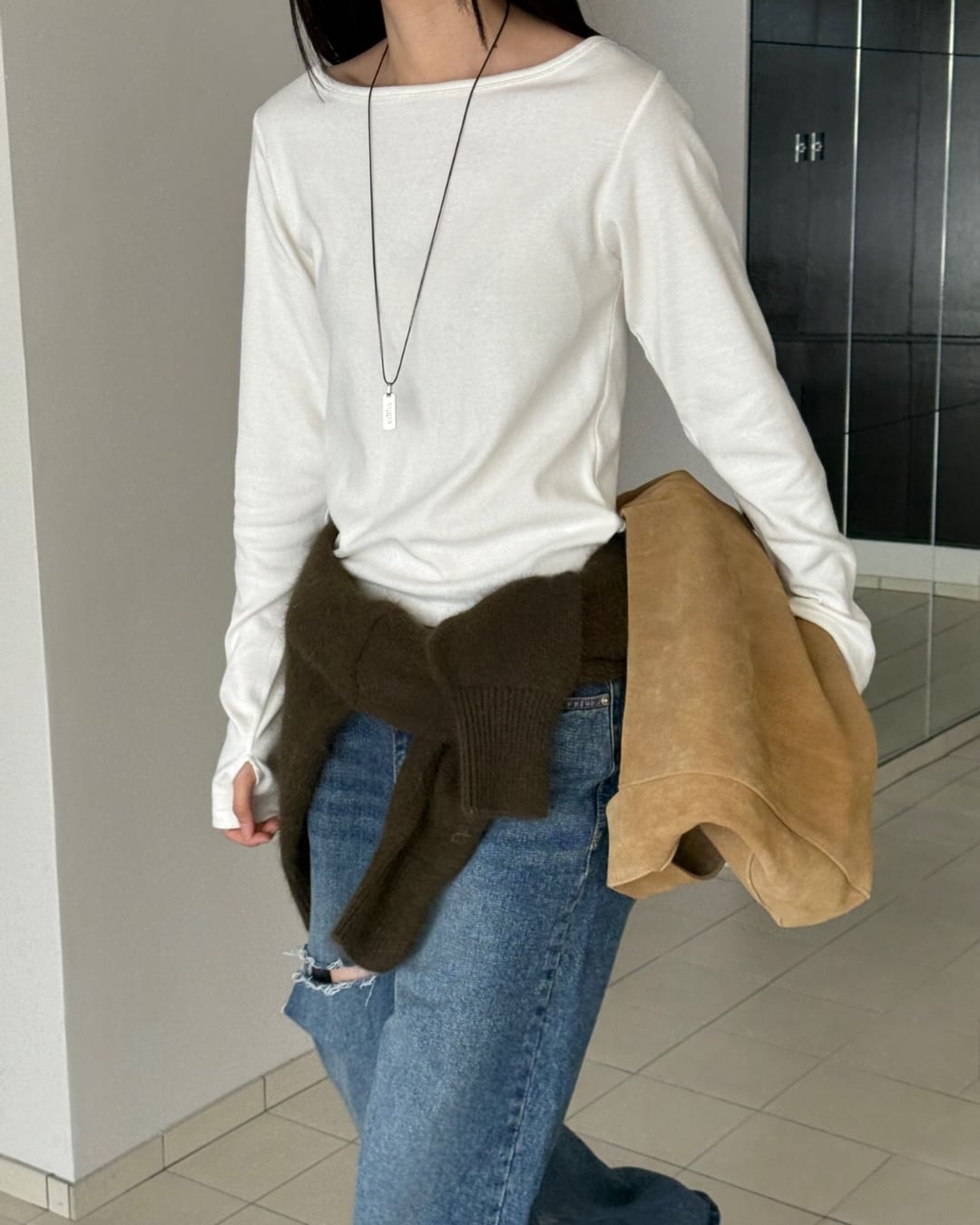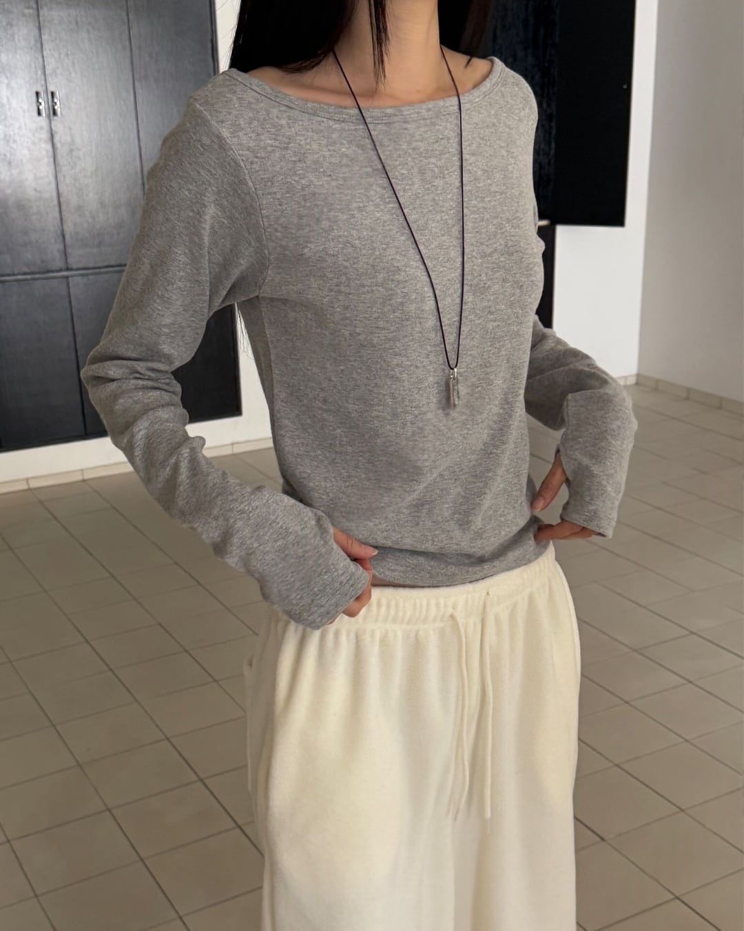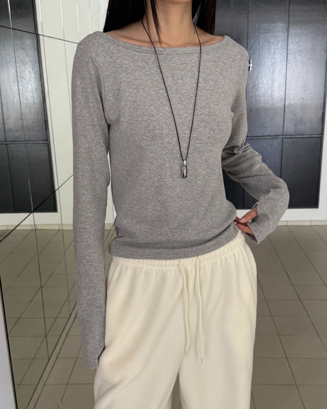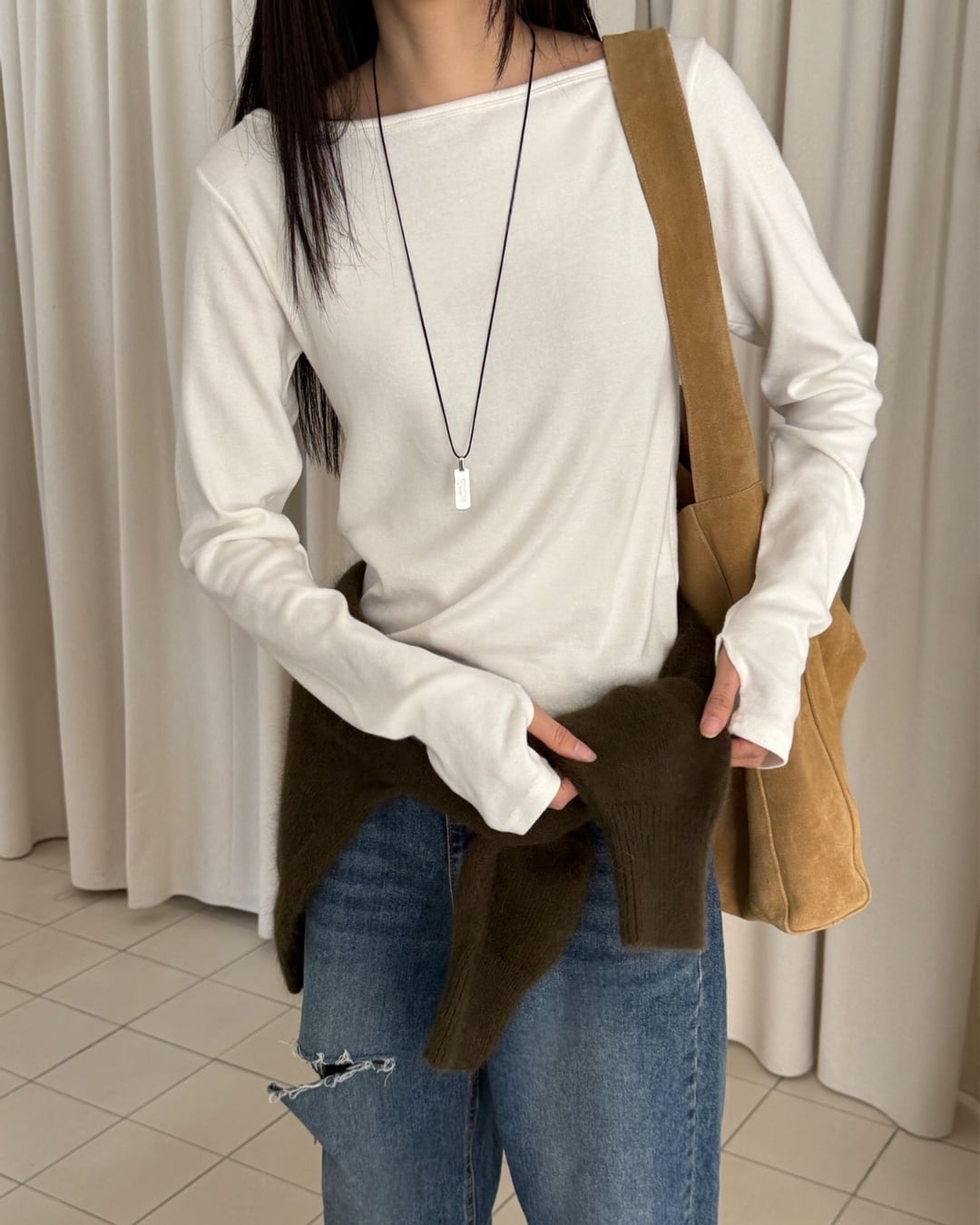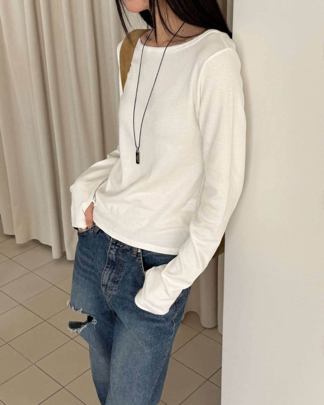 #ロングスリーブ #ボートネック #シンプルトップス #大人カジュアル #着回しアイテム