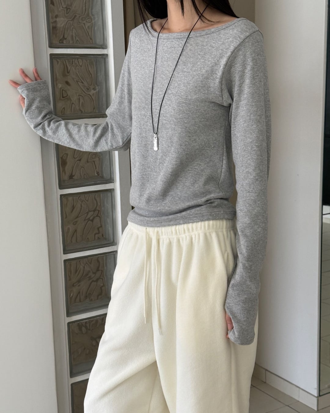 ボートネックシンプルロングスリーブトップス