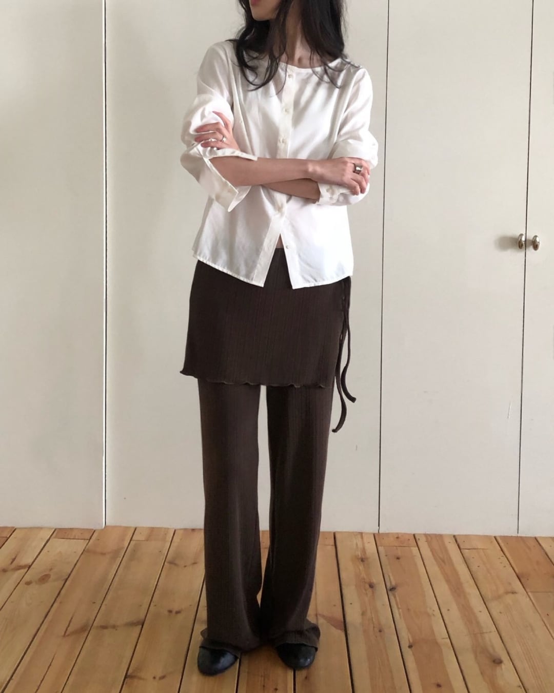 #ワイドパンツ #レイヤードコーデ #リブパンツ #大人カジュアル #リラックススタイル