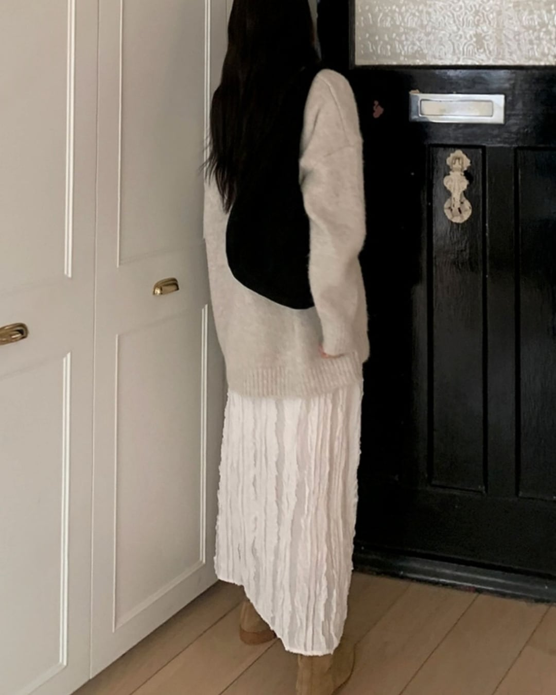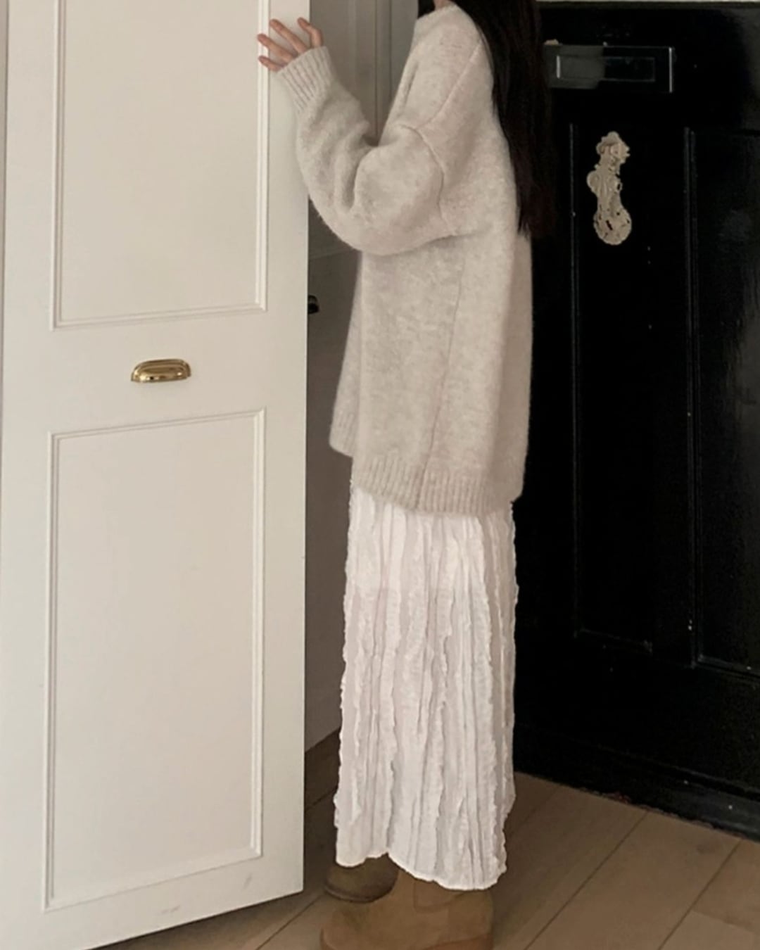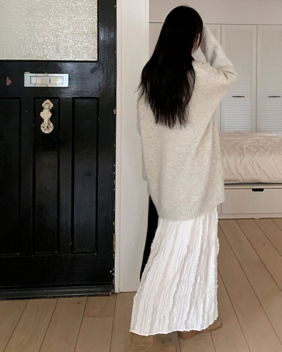 #プリーツスカート #ロングスカート #アイボリーコーデ #大人カジュアル #ナチュラルスタイル
