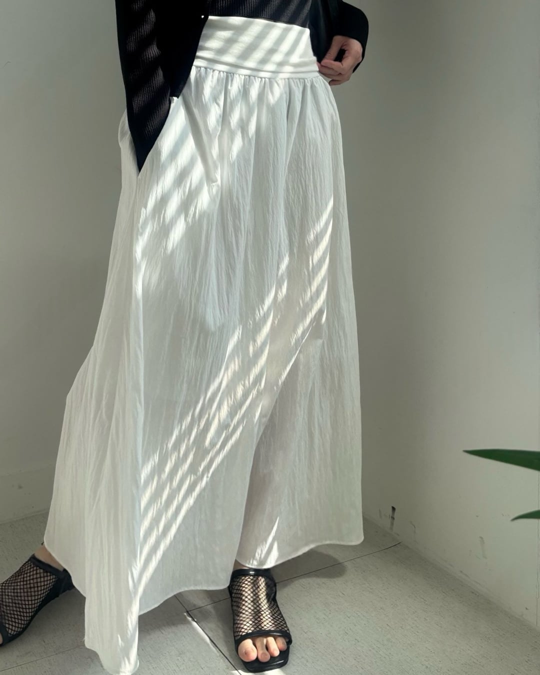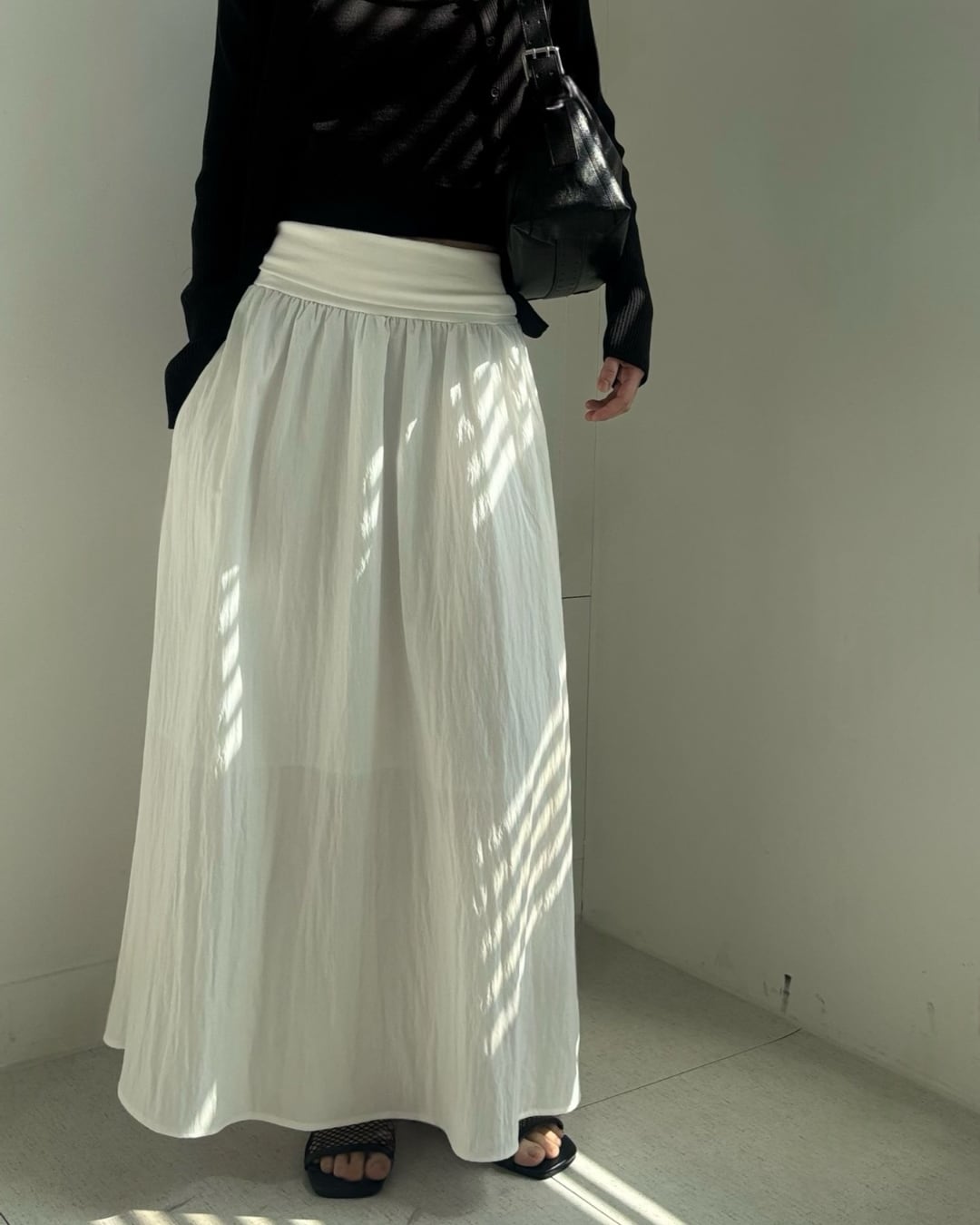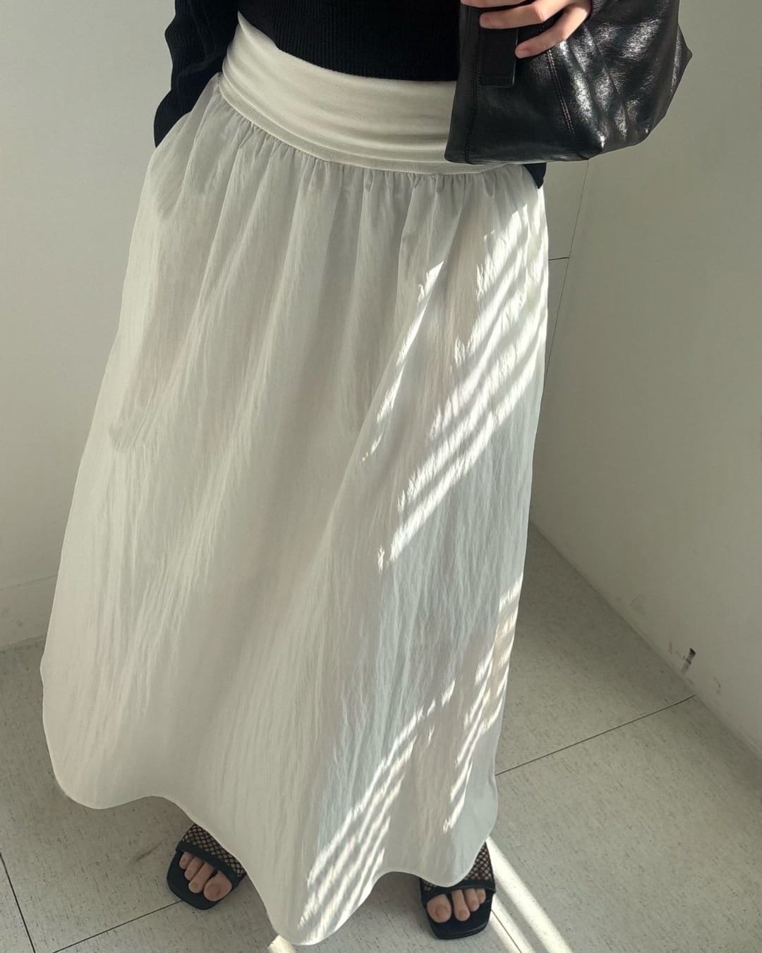 #ロングスカート #ギャザースカート #モノトーンコーデ #大人カジュアル #シンプルコーデ