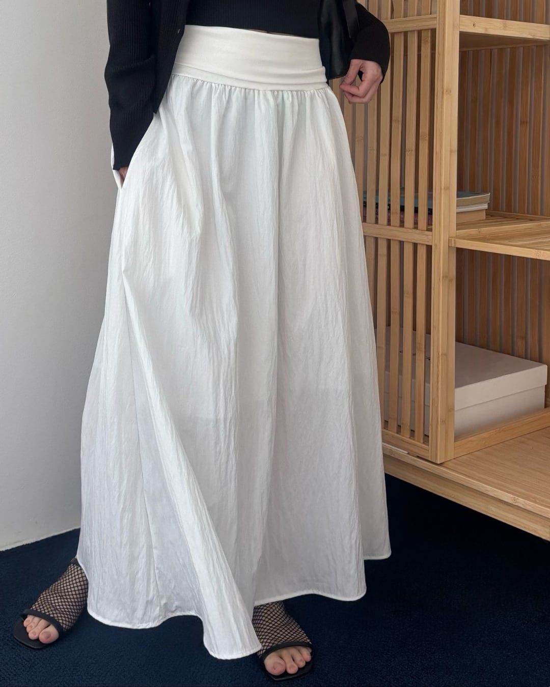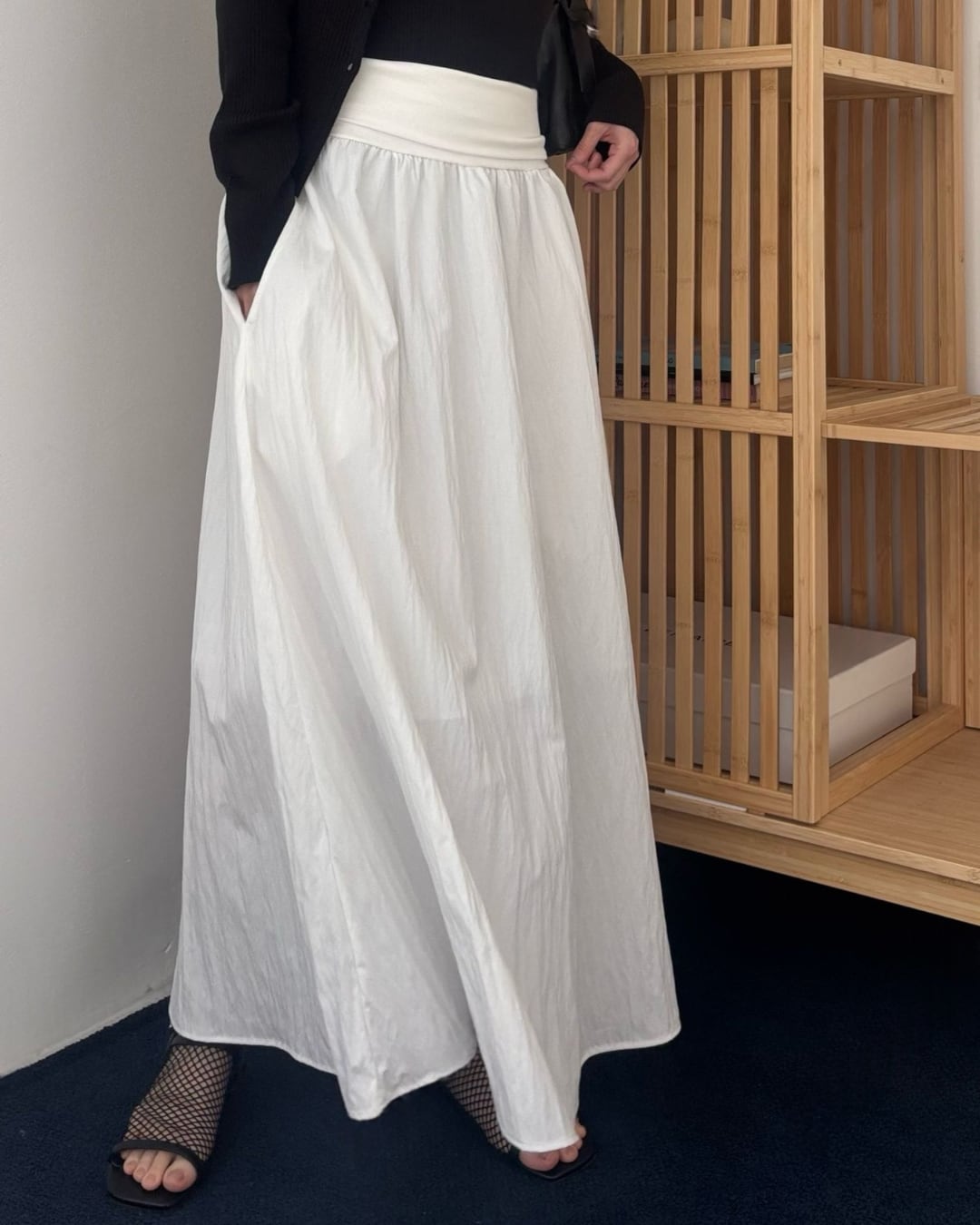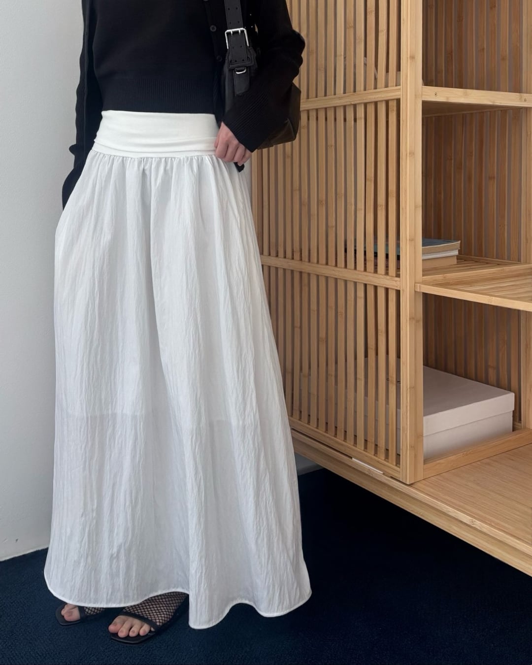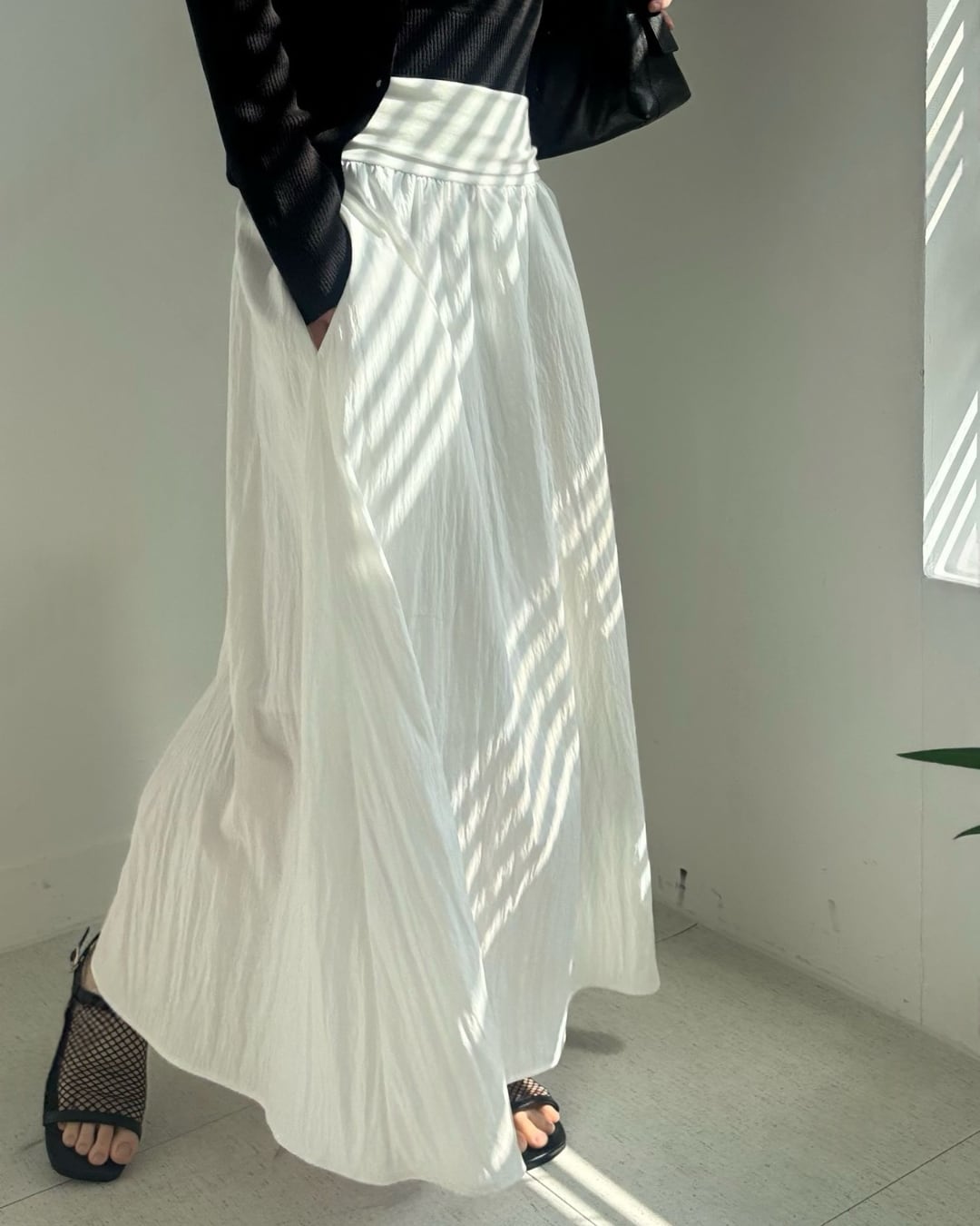 #ロングスカート #ギャザースカート #モノトーンコーデ #大人カジュアル #シンプルコーデ