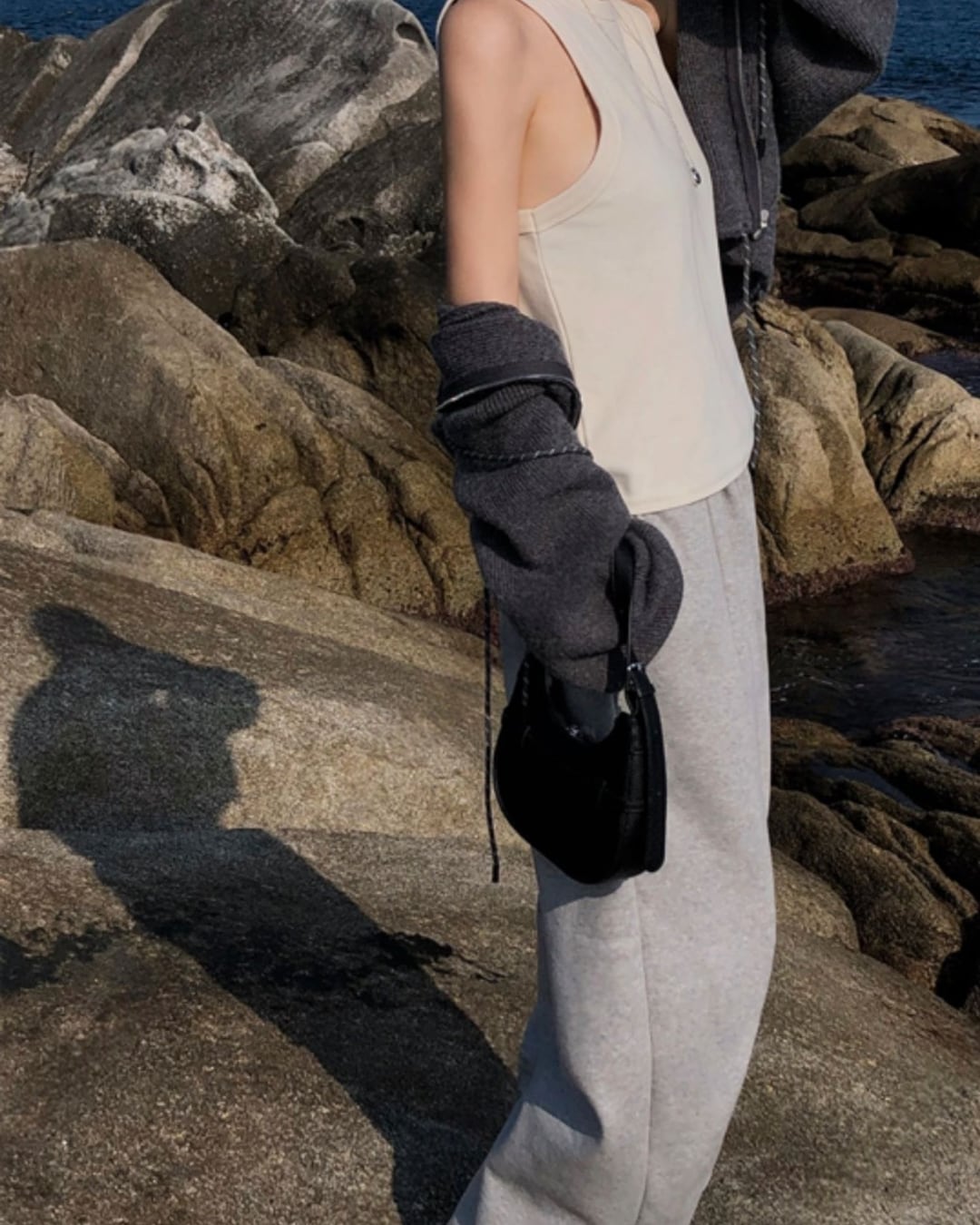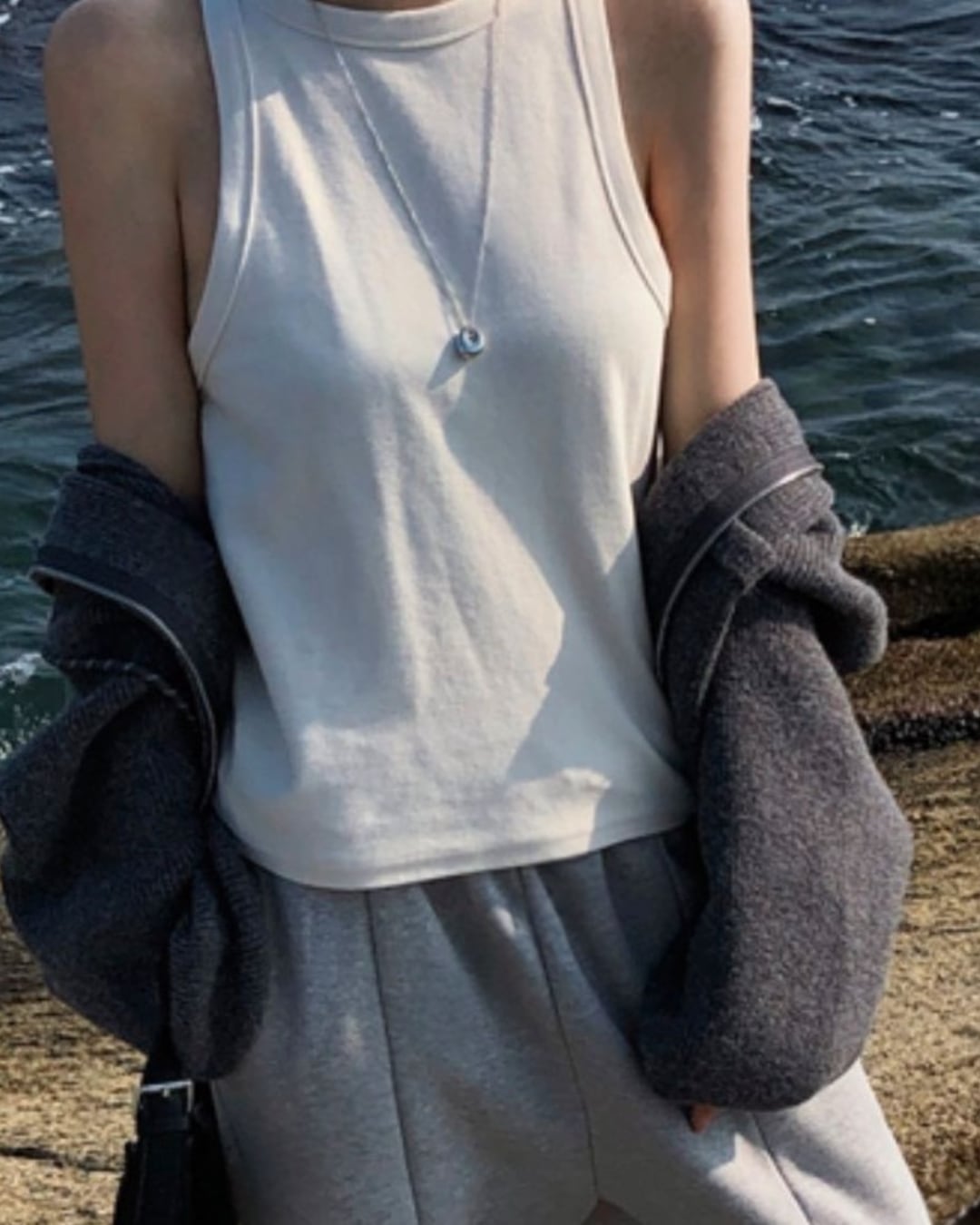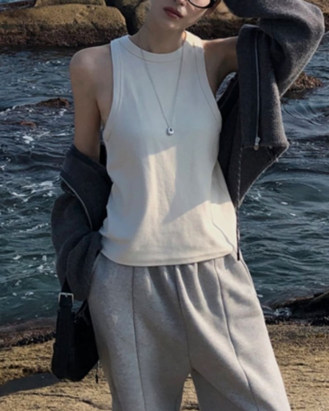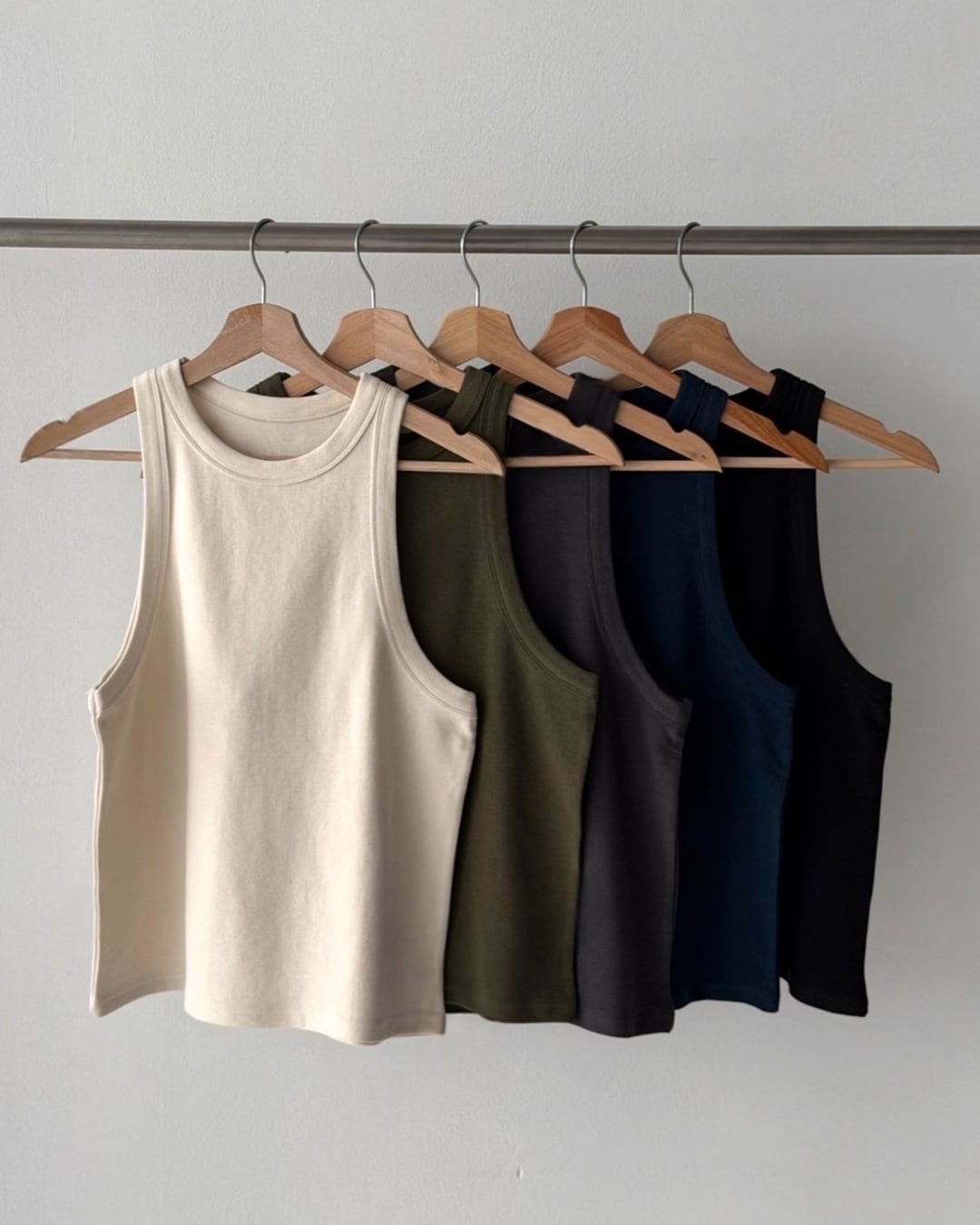 #タンクトップ #クロップド丈 #ミニマルコーデ #レイヤードスタイル #デイリートップス